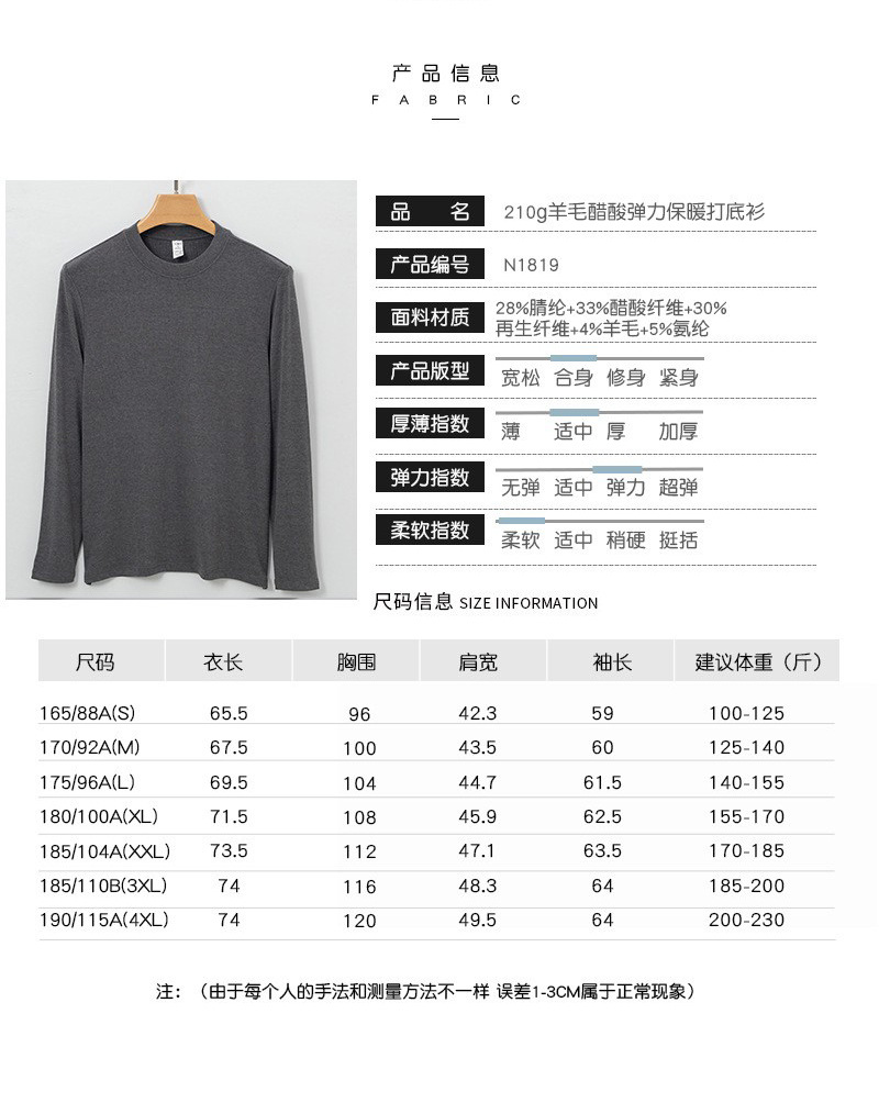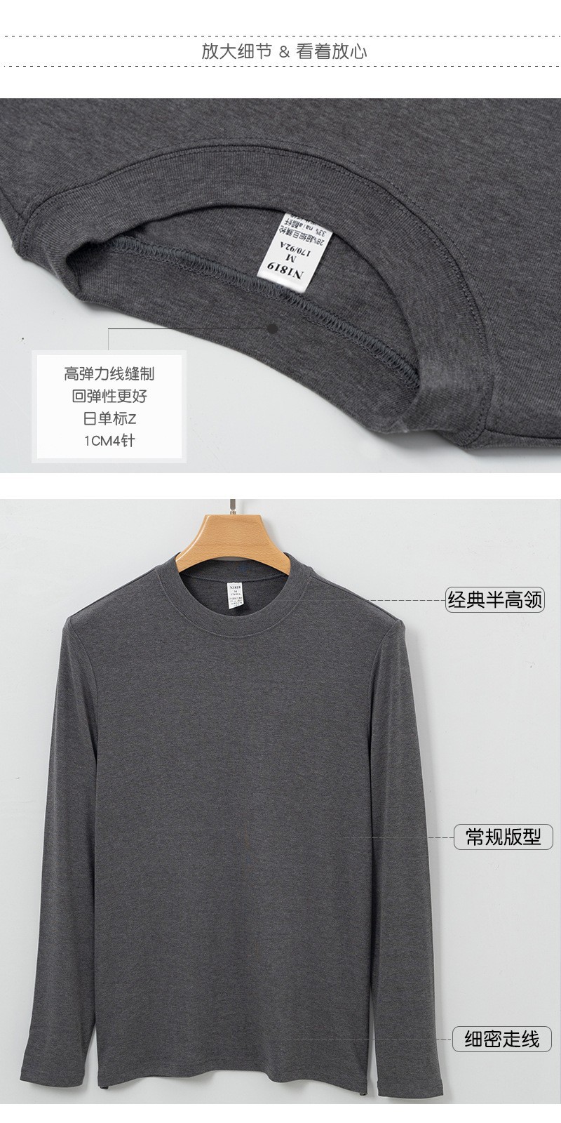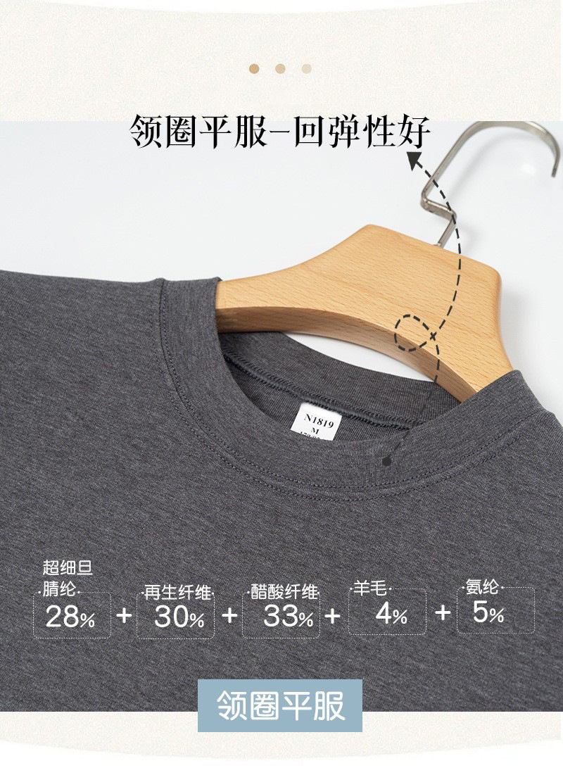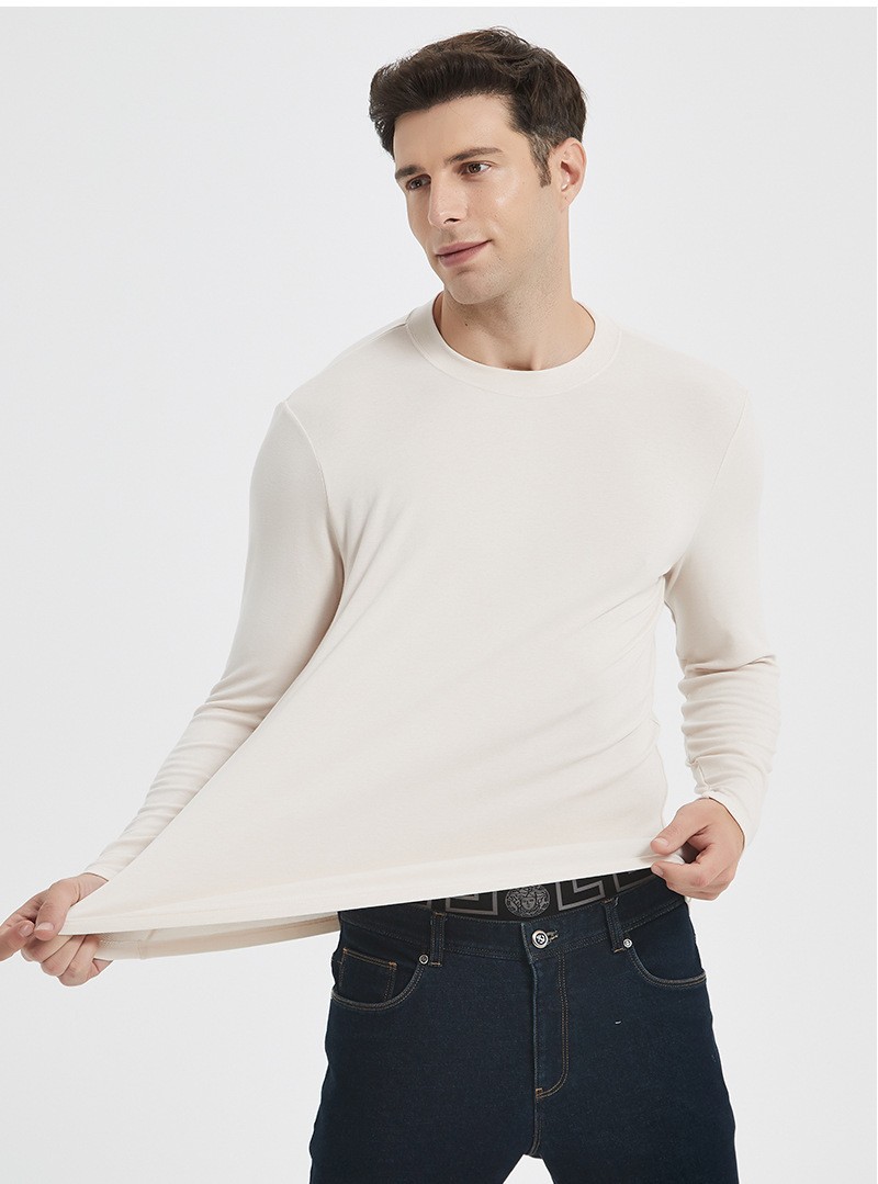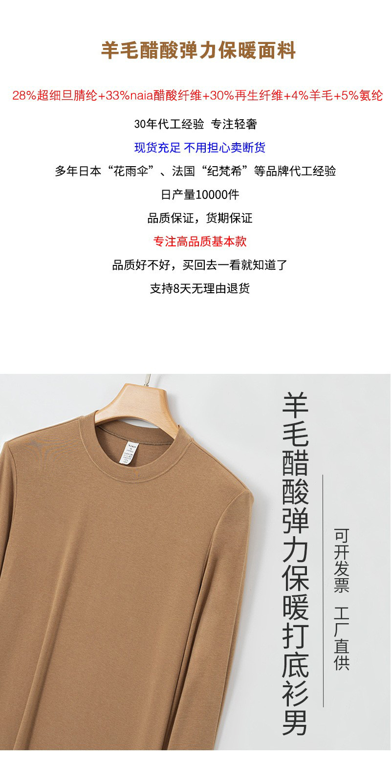 高端依翡丝打底衫男秋冬新款半高领圆领保暖抗菌腈纶德绒t恤长袖