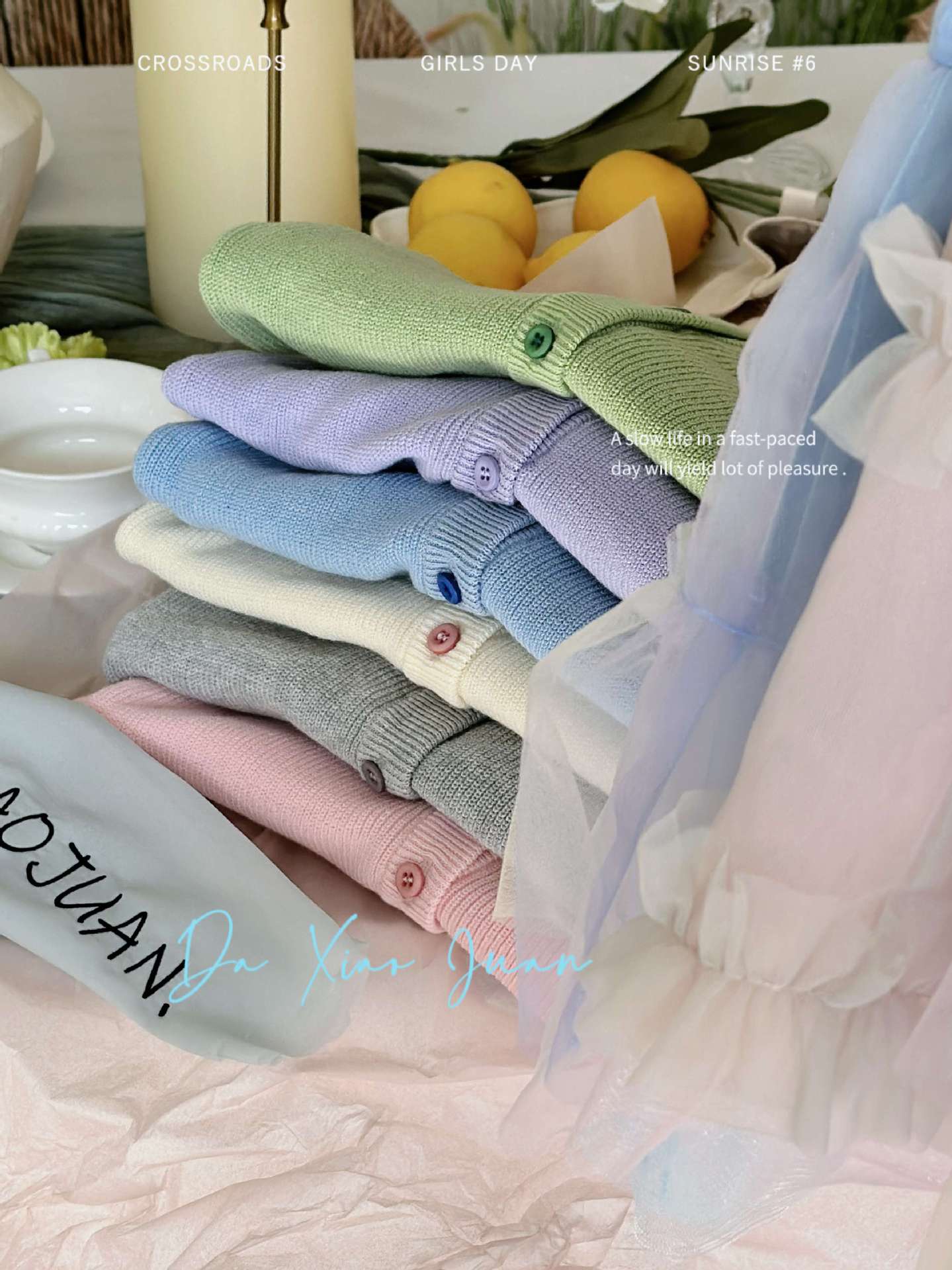 사이즈 롤 24 소년 소녀 한국 니트 카디건 봄과 가을 새로운 캔디 컬러 서양식 코트 아기 올매치