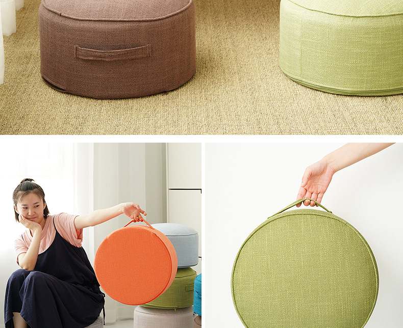 P66D 이동식 및 세척 가능한 리넨 이불 쿠션 두꺼운 직물 바닥 부두 앉아 부두 바닥 라운드 매트 다다미 앉아 바닥