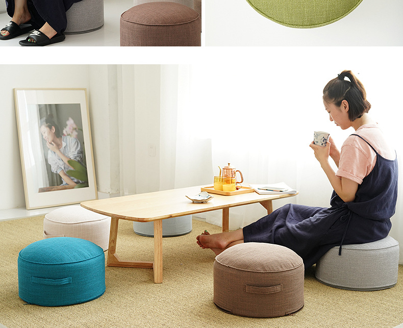 P66D 이동식 및 세척 가능한 리넨 이불 쿠션 두꺼운 직물 바닥 부두 앉아 부두 바닥 라운드 매트 다다미 앉아 바닥스토어 가기