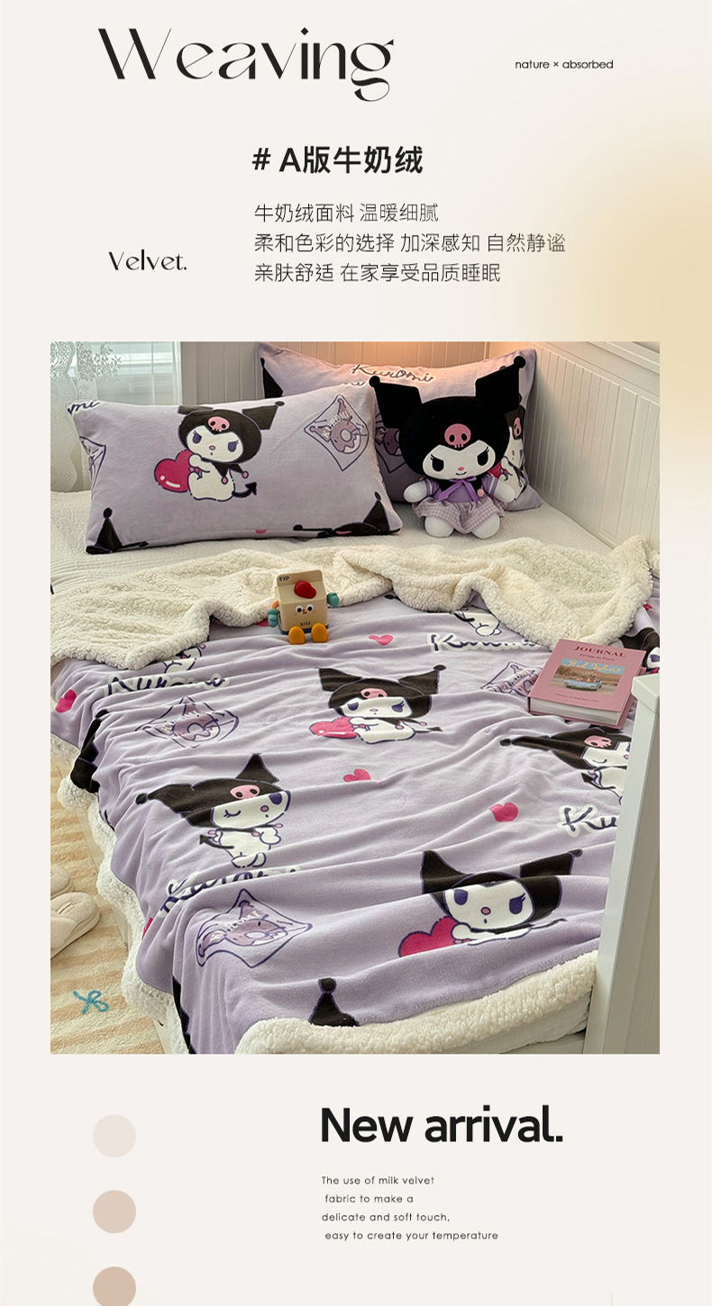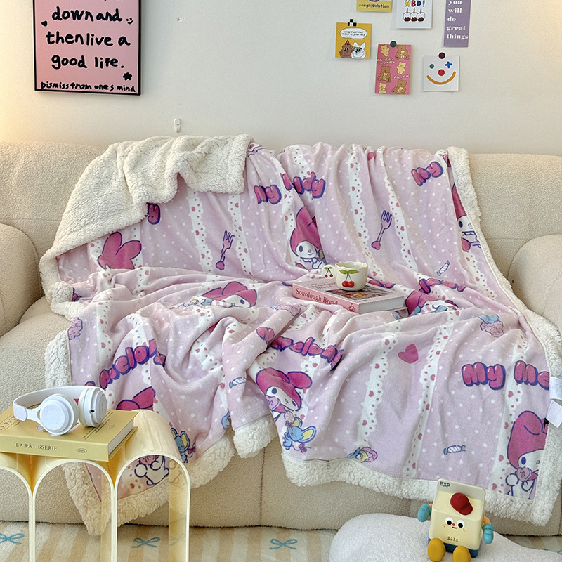정품 산리오 밀크 벨벳 더블 담요 두꺼운 양고기 벨벳 어린이 만화 낮잠 소파 담요 대외 무역 담요