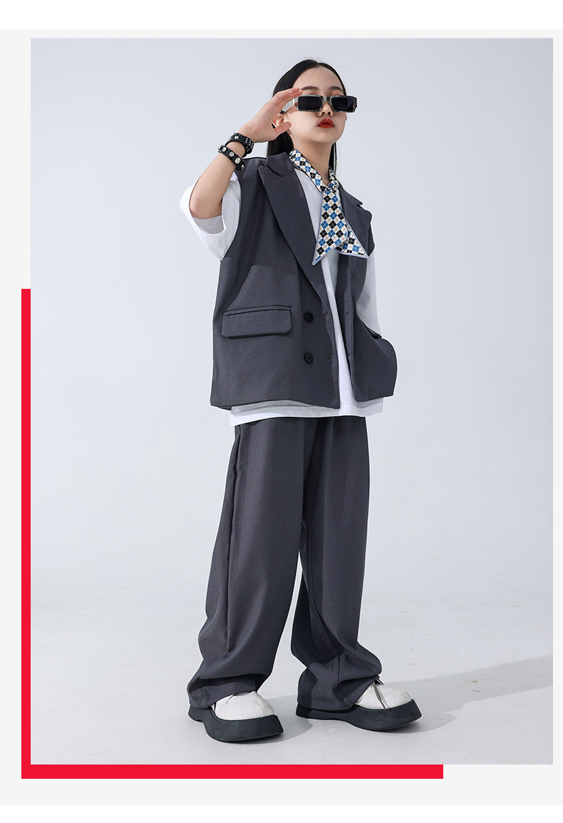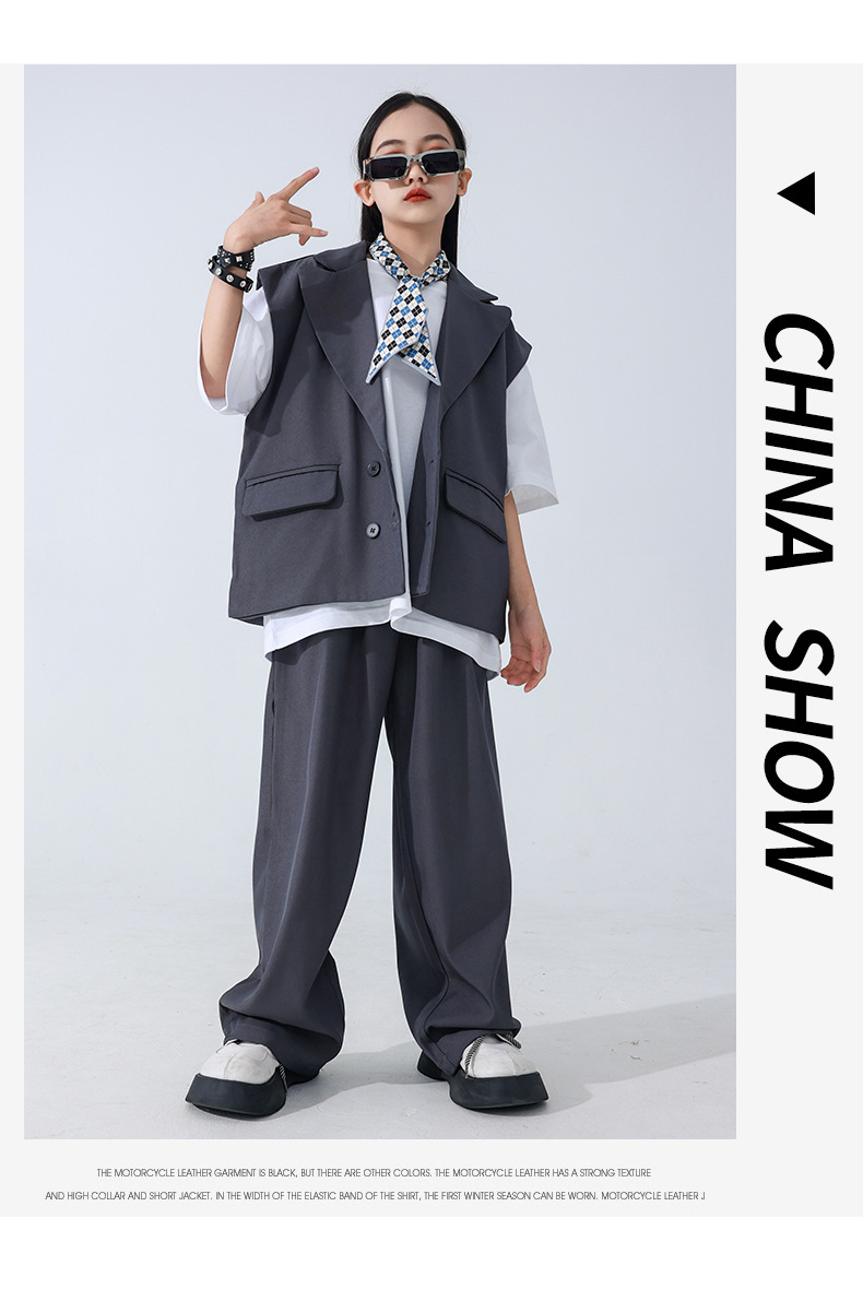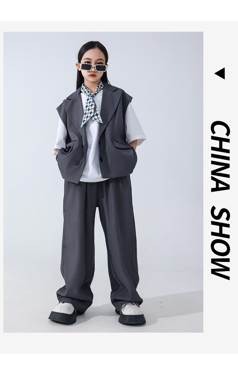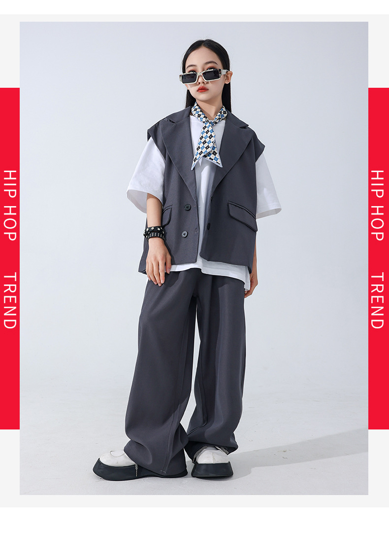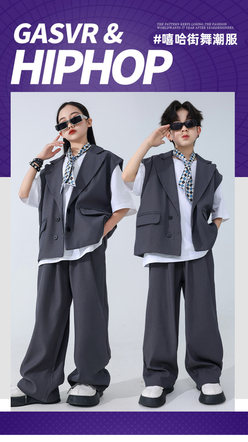 소년 소녀를위한 어린이 힙합 힙합 세트 조끼 세트 어린이 유행 패션 의상스토어 가기