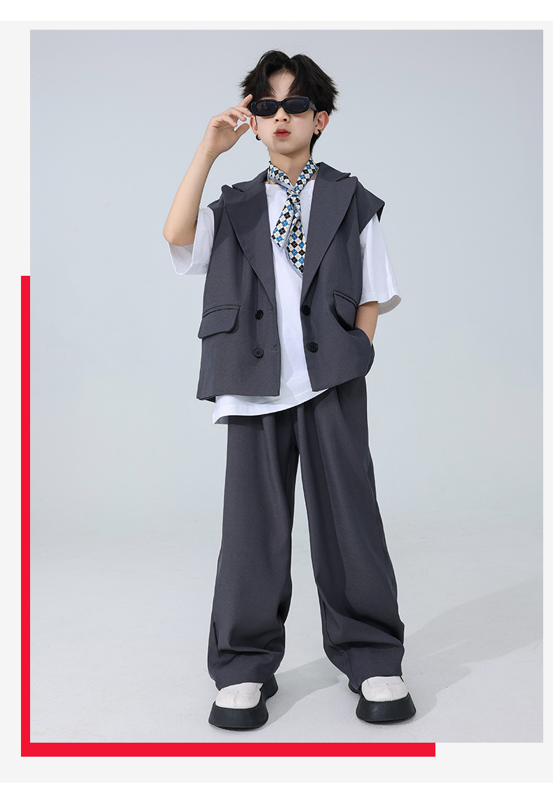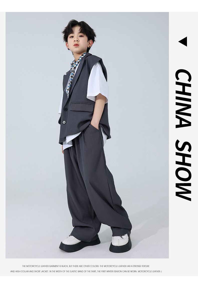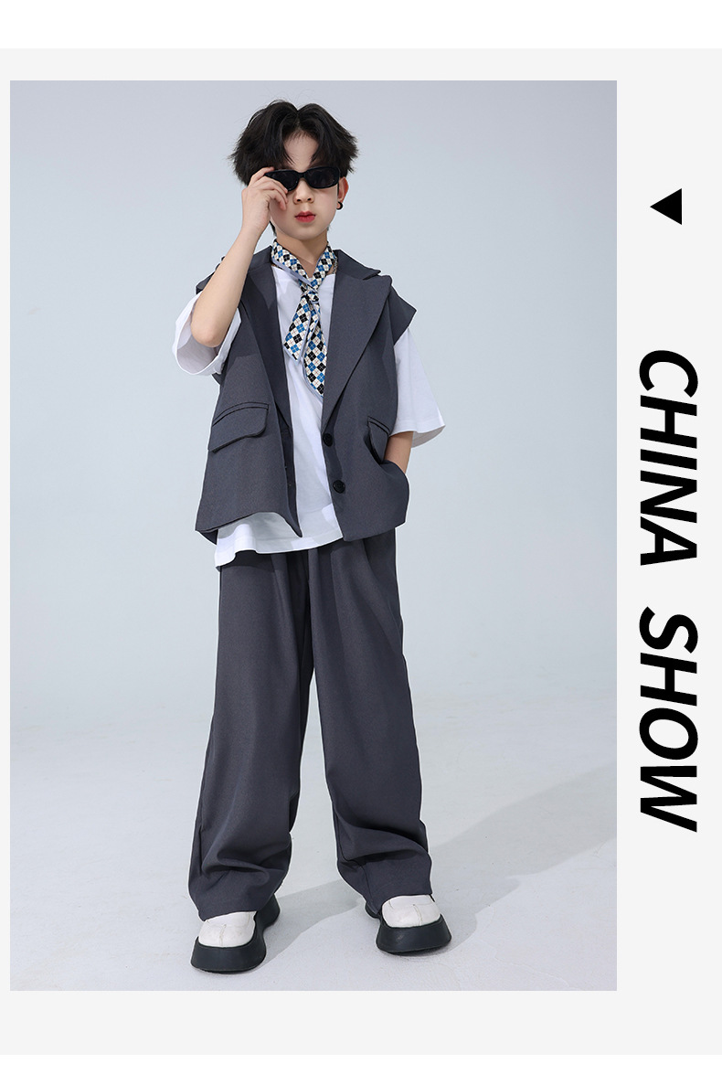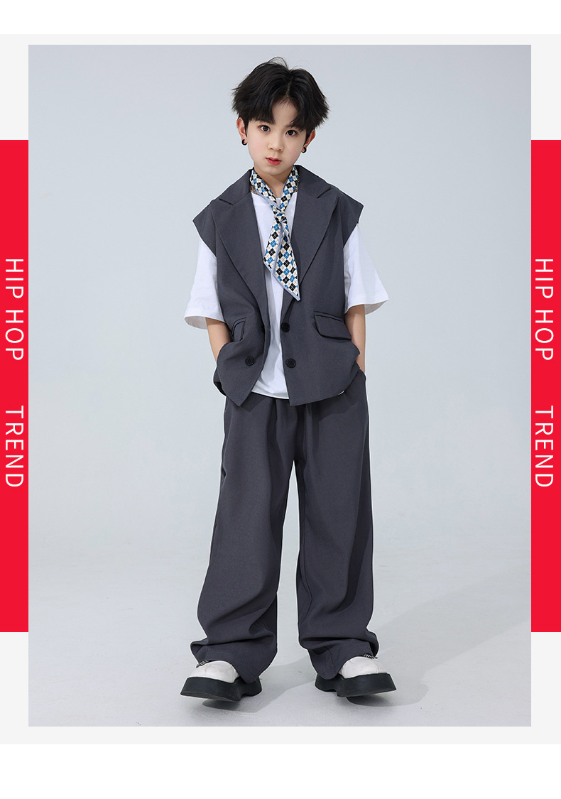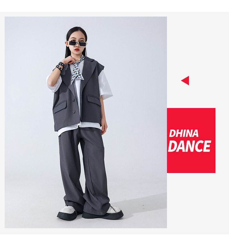 소년 소녀를위한 어린이 힙합 힙합 세트 조끼 세트 어린이 유행 패션 의상스토어 가기