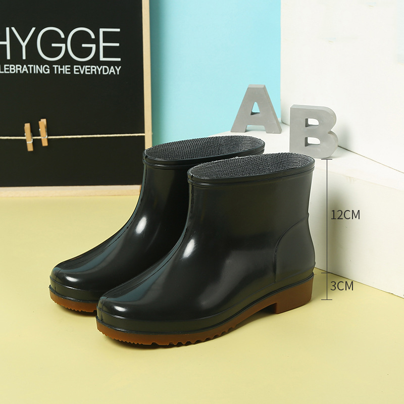 남성용 높은 부츠형 레인슈즈, 면 안감, 미끄럼 방지, 두꺼운 중간 길이의 알칼리성 레인부츠, 건설 현장 안전화, 작업용 고무신 도매