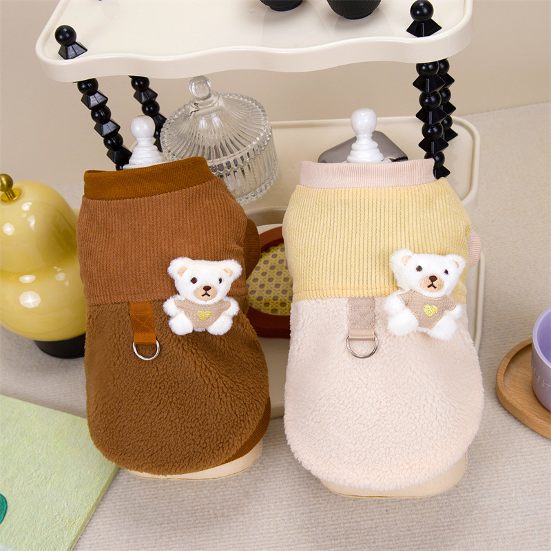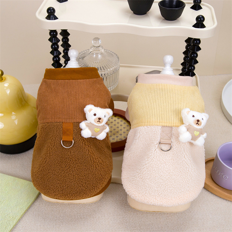 24 가을과 겨울 새로운 개 코듀로이 바느질면 패딩 옷 테디 베어 작은 개 고양이 애완 동물 옷 공장 재고