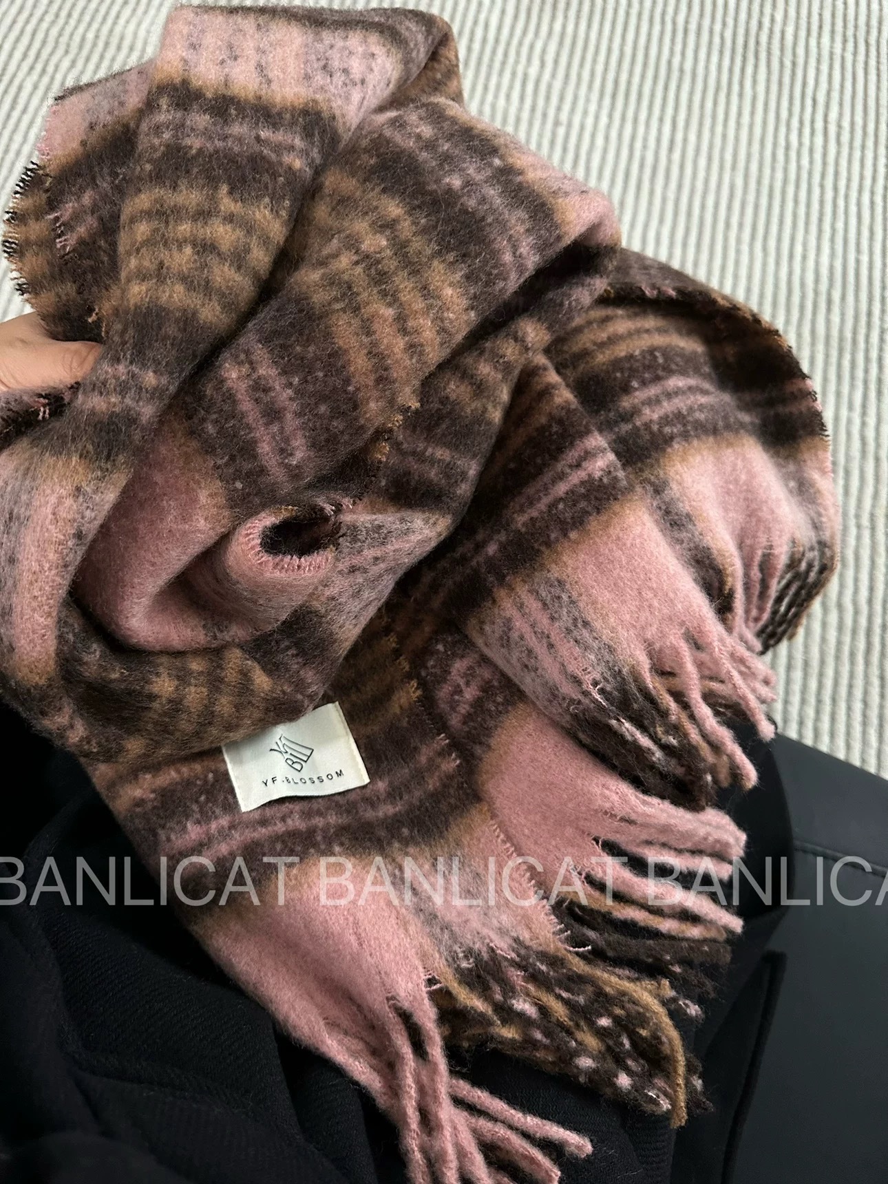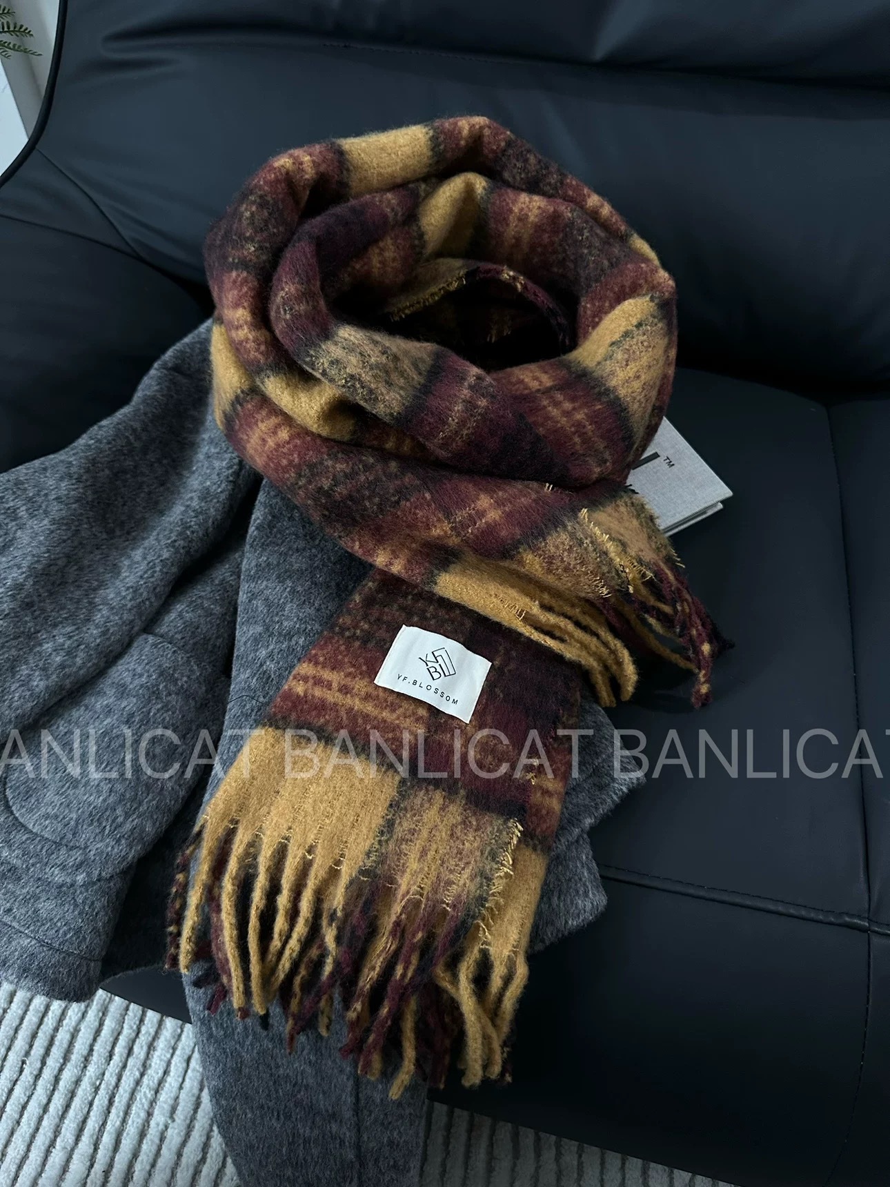 새로운 Maillard Plaid 스카프 여성의 가을 및 겨울 Ins 스카프 레트로 캐시미어 학생 두꺼운 스카프 제조 업체