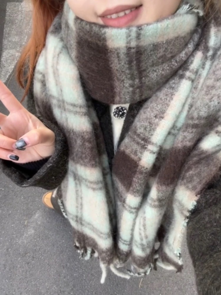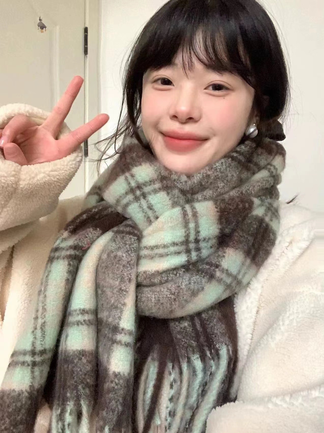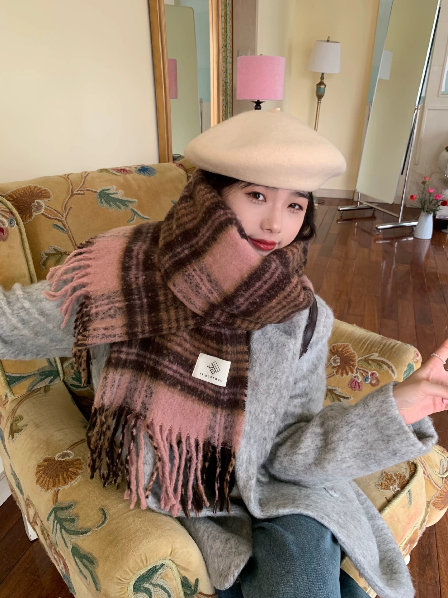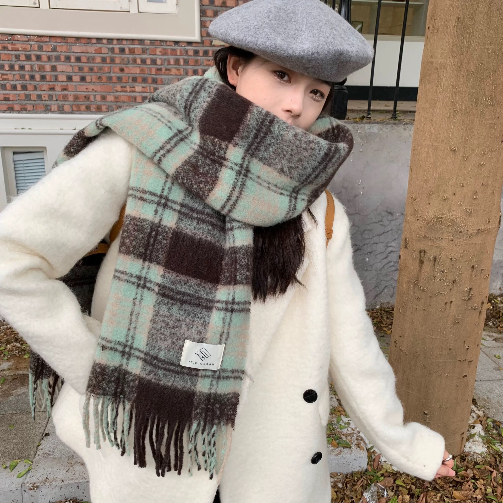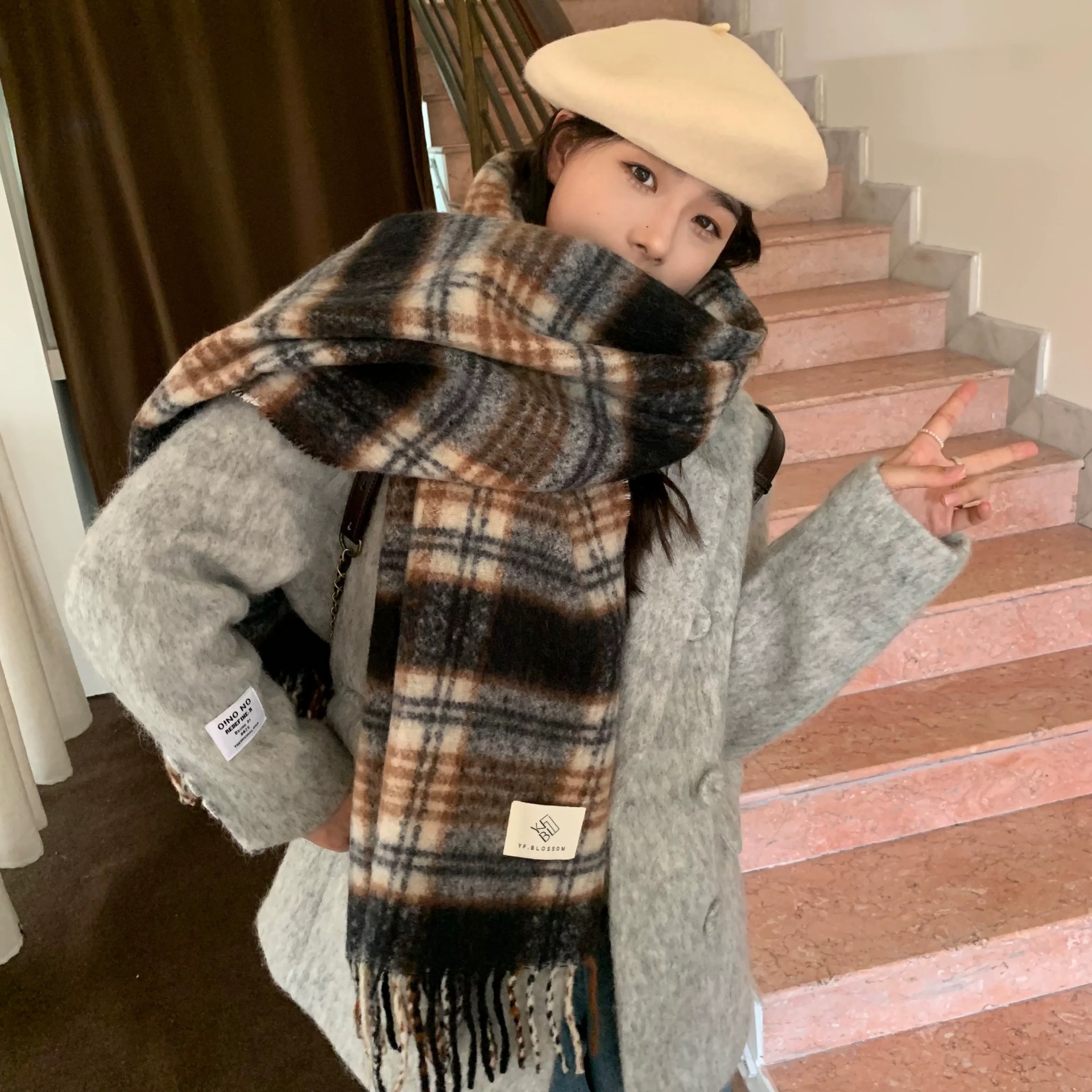 새로운 Maillard Plaid 스카프 여성의 가을 및 겨울 Ins 스카프 레트로 캐시미어 학생 두꺼운 스카프 제조 업체스토어 가기