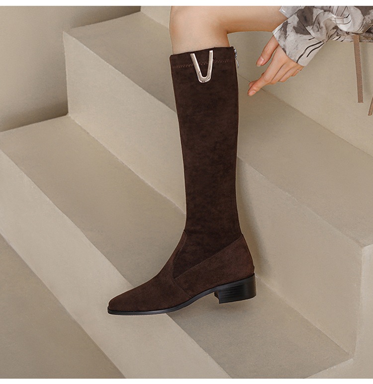 32-43 스웨이드 거친 뒤꿈치 높은 부츠 여성의 가을 새롭지 만 무릎 여성용 부츠 긴 얇은 부츠 낮은 발 뒤꿈치 대형 부츠