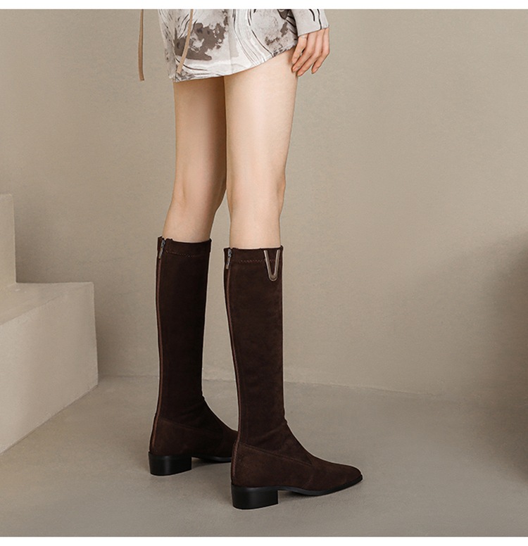 32-43 스웨이드 거친 뒤꿈치 높은 부츠 여성의 가을 새롭지 만 무릎 여성용 부츠 긴 얇은 부츠 낮은 발 뒤꿈치 대형 부츠스토어 가기