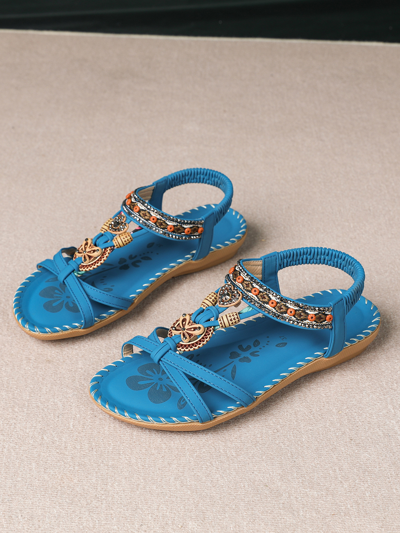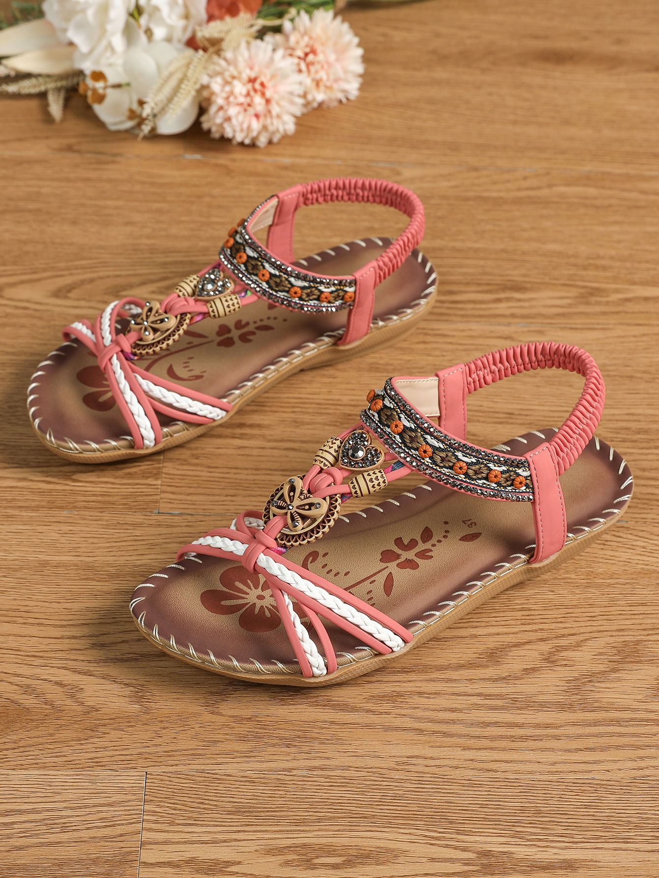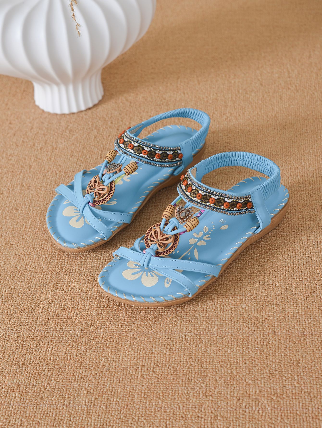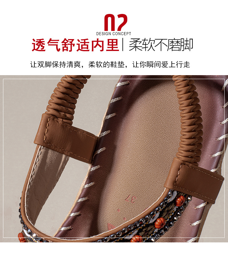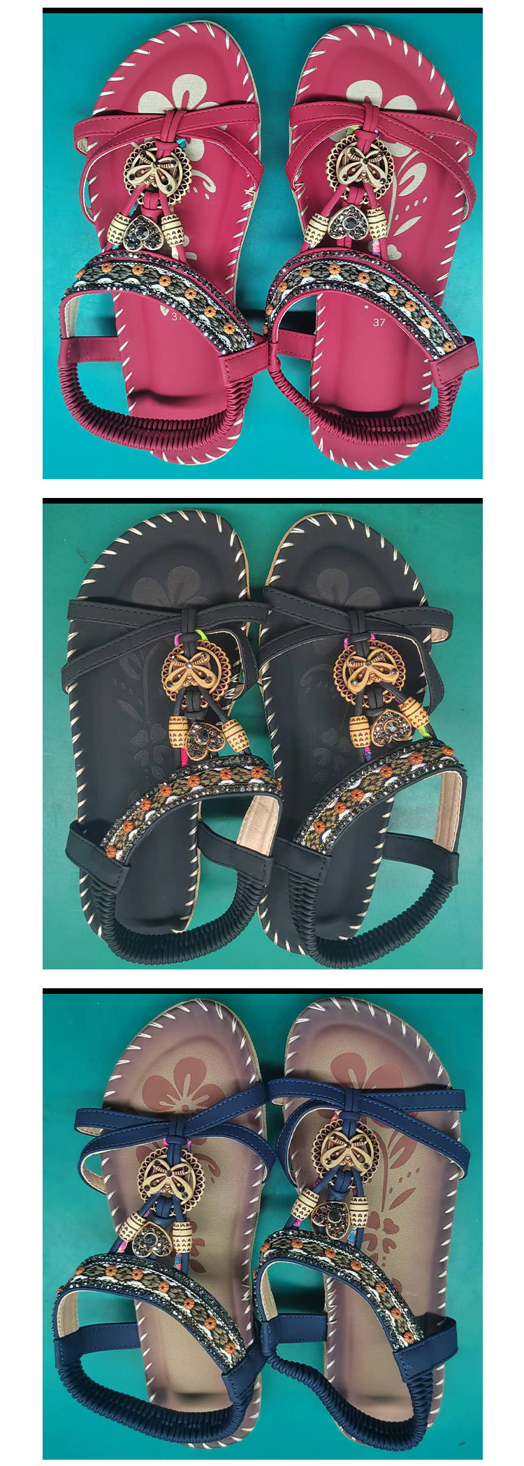 2025년 신상 리본 여성 플랫 슈즈 수제 비즈 장식 라인스톤 샌들 야외용 비치 맥퀸 화이트 슈즈 여성용스토어 가기