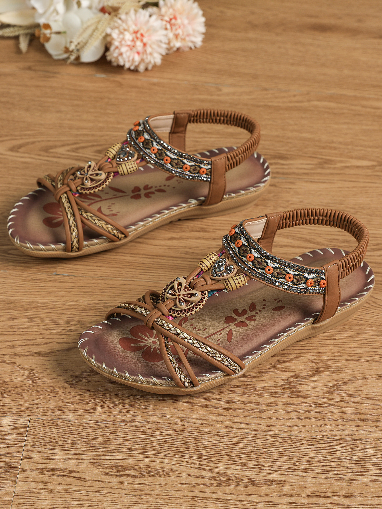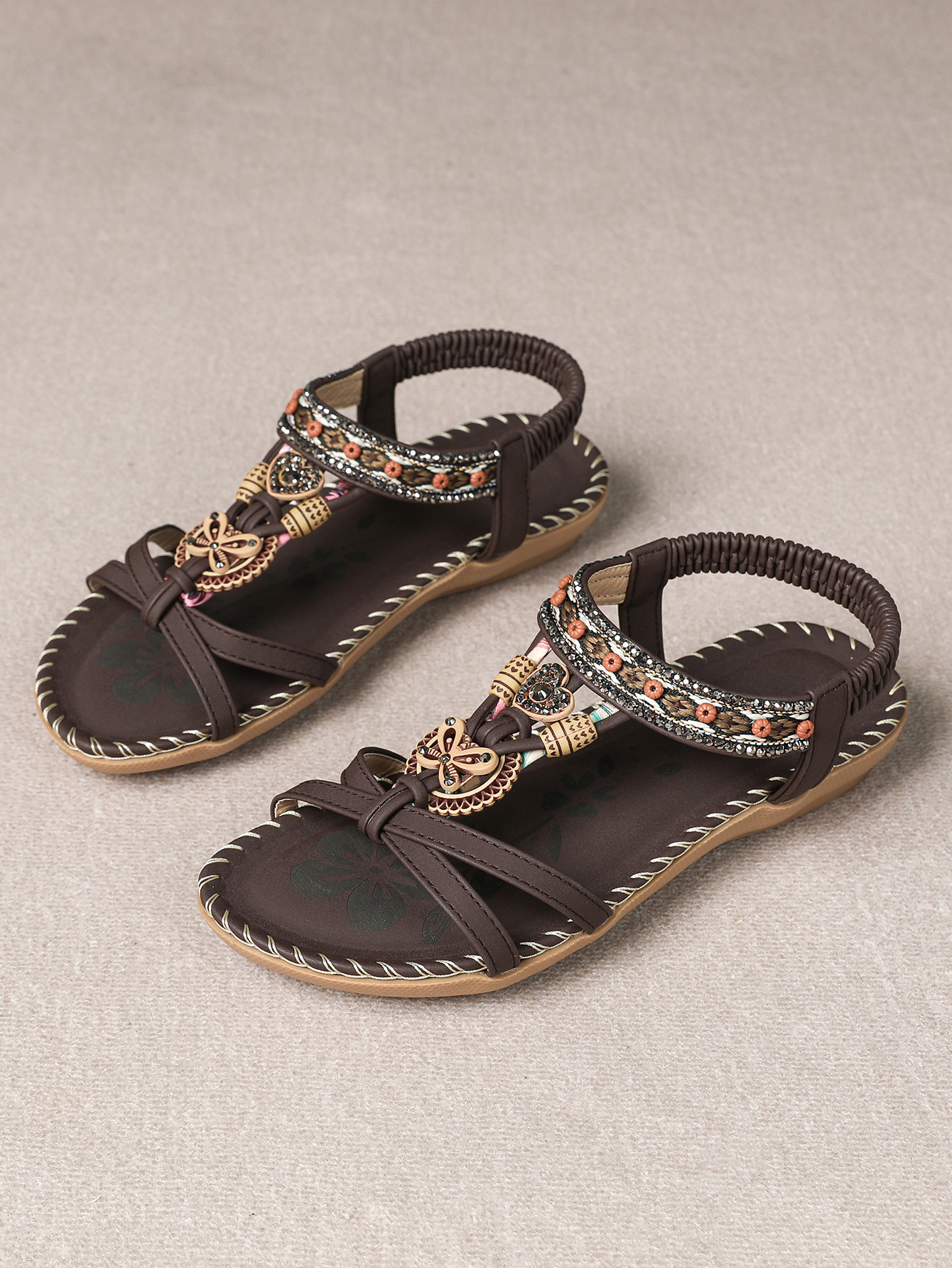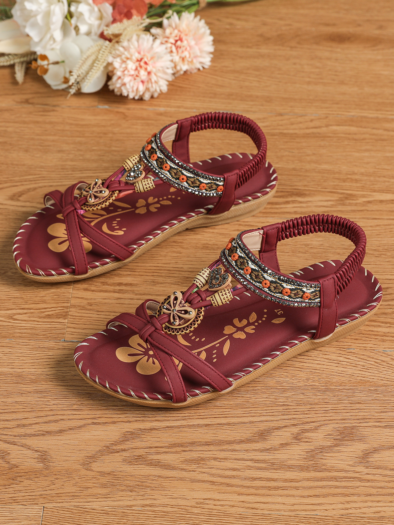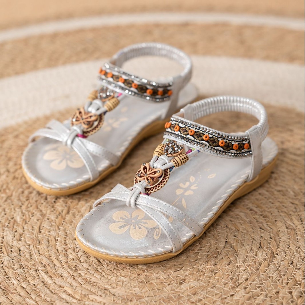 2025년 신상 리본 여성 플랫 슈즈 수제 비즈 장식 라인스톤 샌들 야외용 비치 맥퀸 화이트 슈즈 여성용스토어 가기