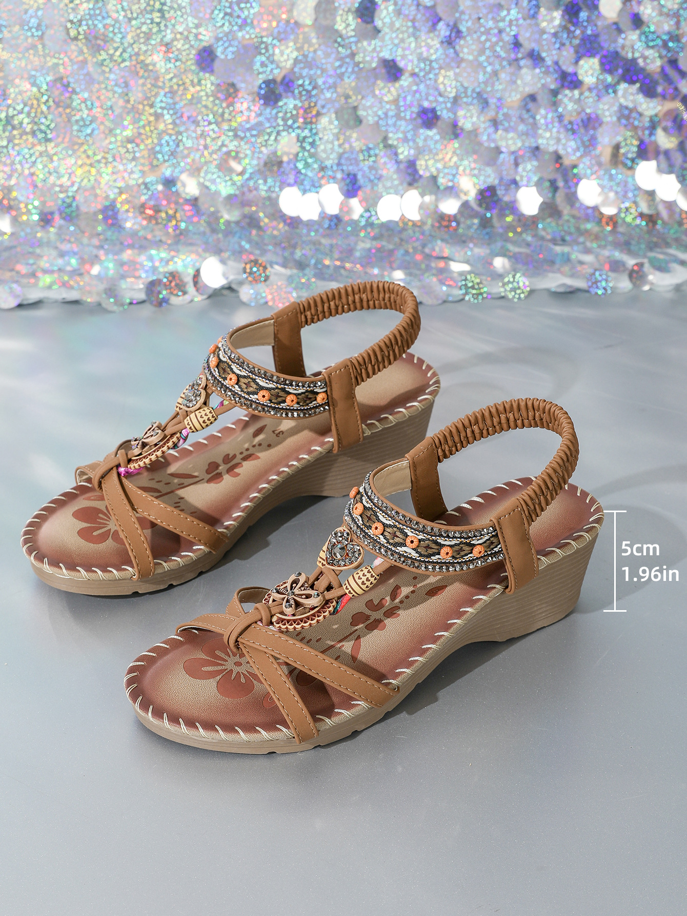 2025년 신상 리본 여성 플랫 슈즈 수제 비즈 장식 라인스톤 샌들 야외용 비치 맥퀸 화이트 슈즈 여성용