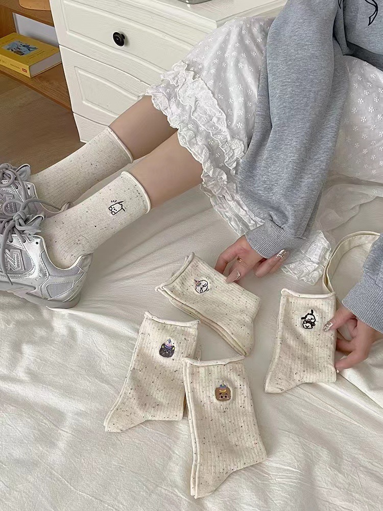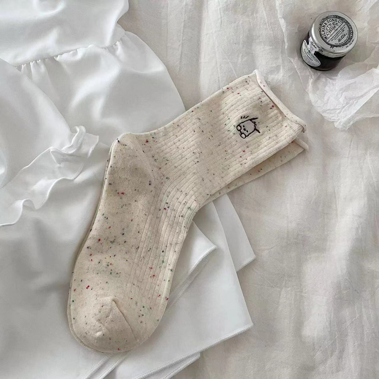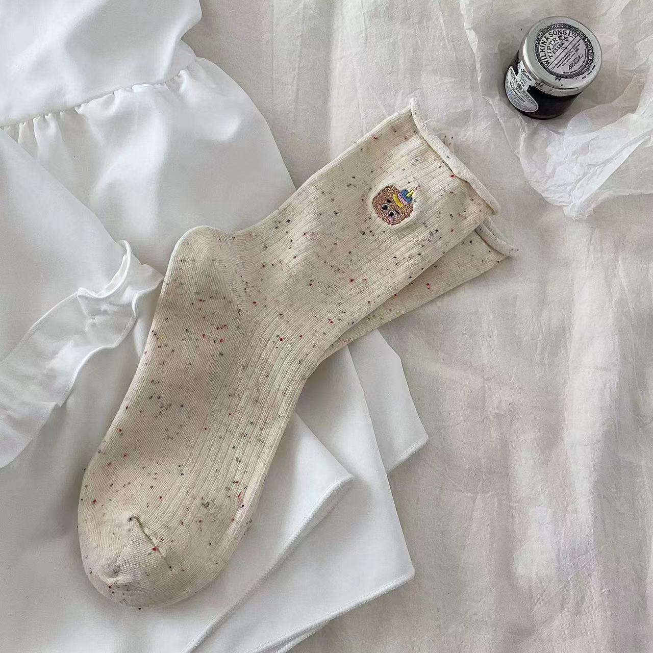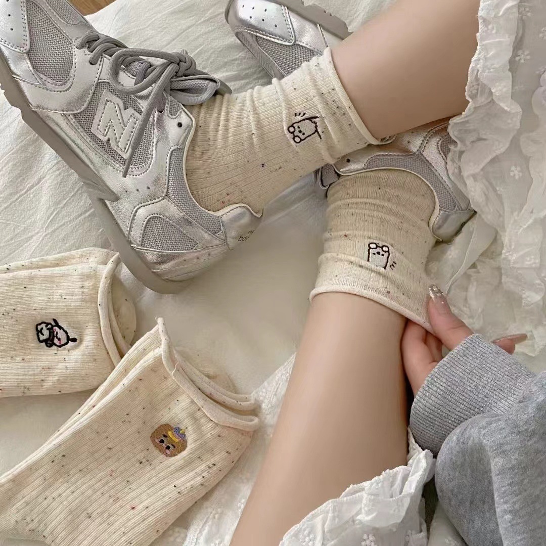 양말 여성의 가을과 겨울 순면 포인트 원사 만화 자수 강아지 양말 간단한 귀여운 느슨한 중간 더미 양말스토어 가기