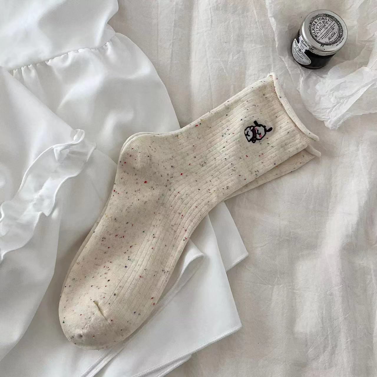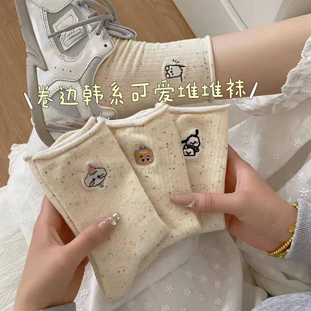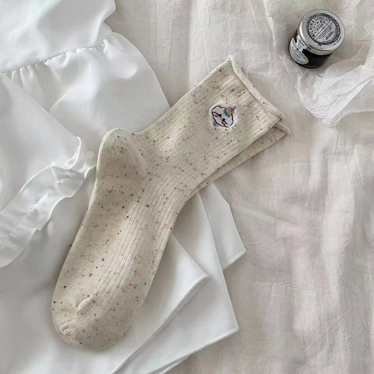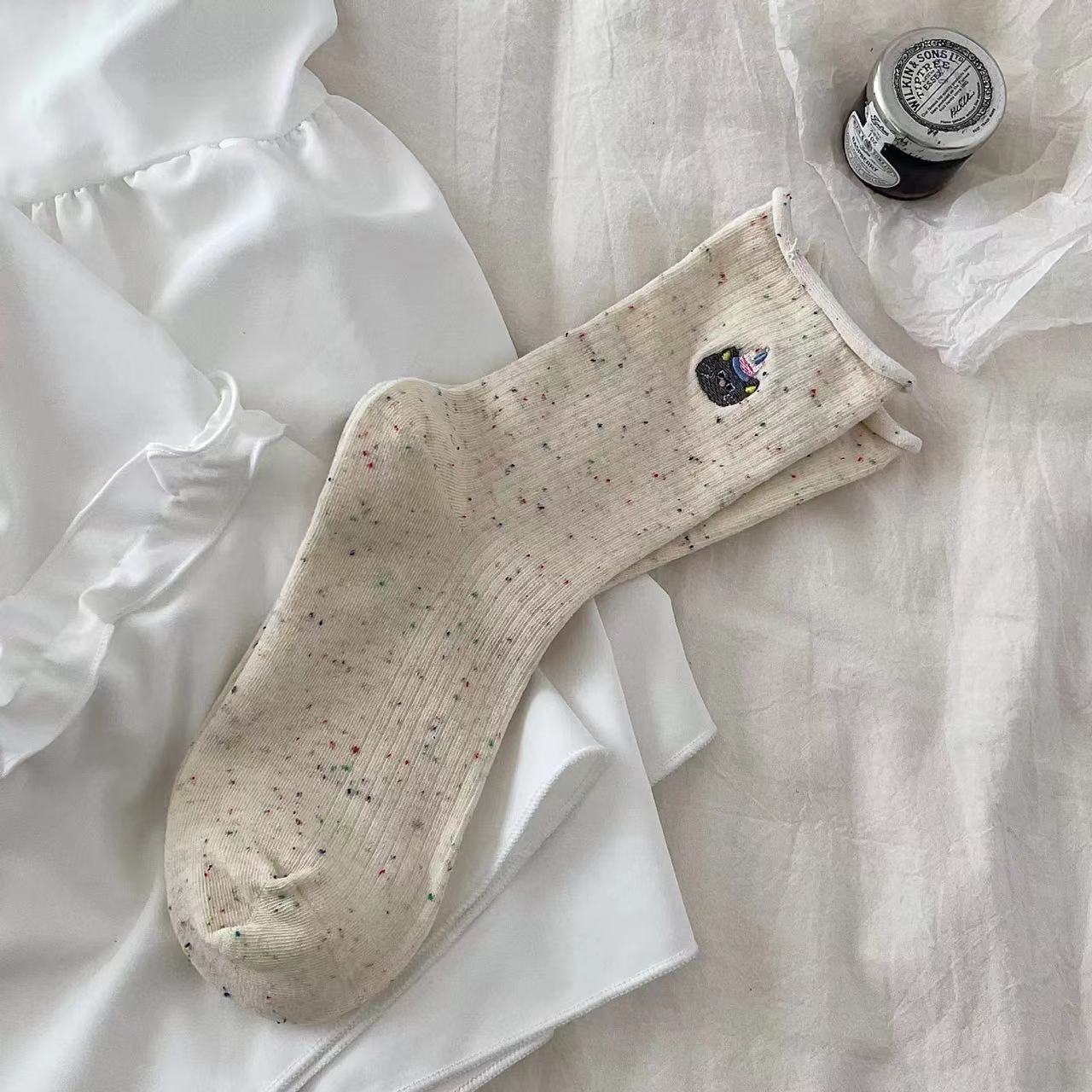 양말 여성의 가을과 겨울 순면 포인트 원사 만화 자수 강아지 양말 간단한 귀여운 느슨한 중간 더미 양말스토어 가기