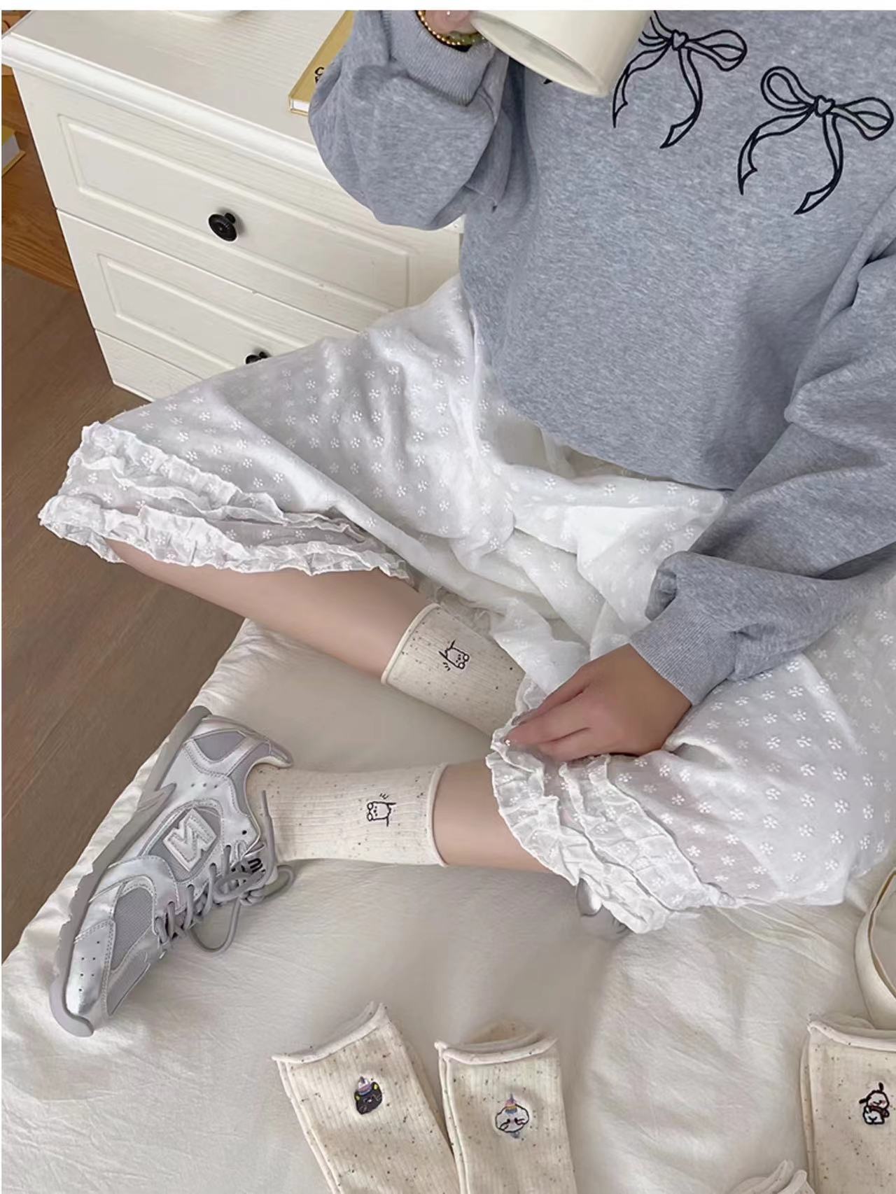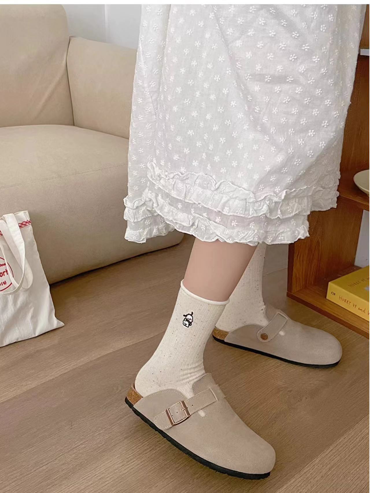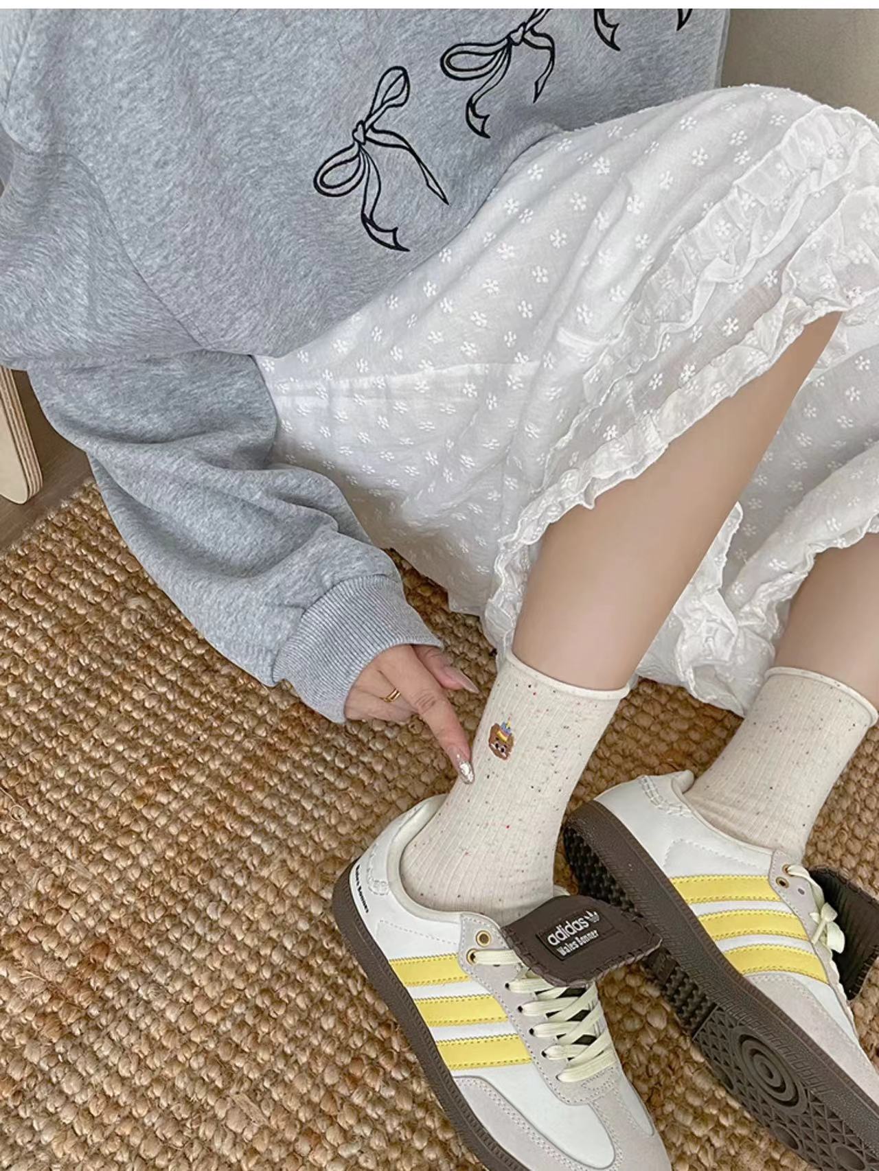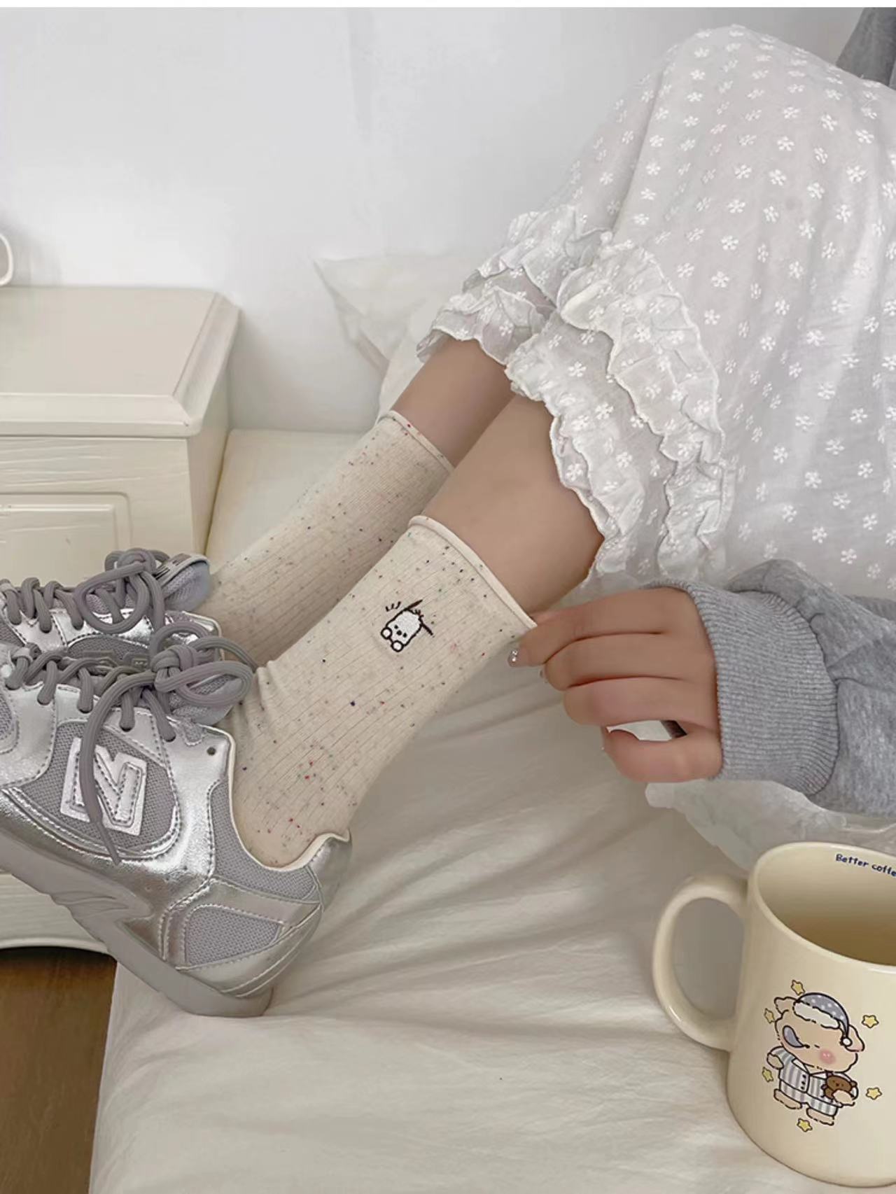 양말 여성의 가을과 겨울 순면 포인트 원사 만화 자수 강아지 양말 간단한 귀여운 느슨한 중간 더미 양말스토어 가기