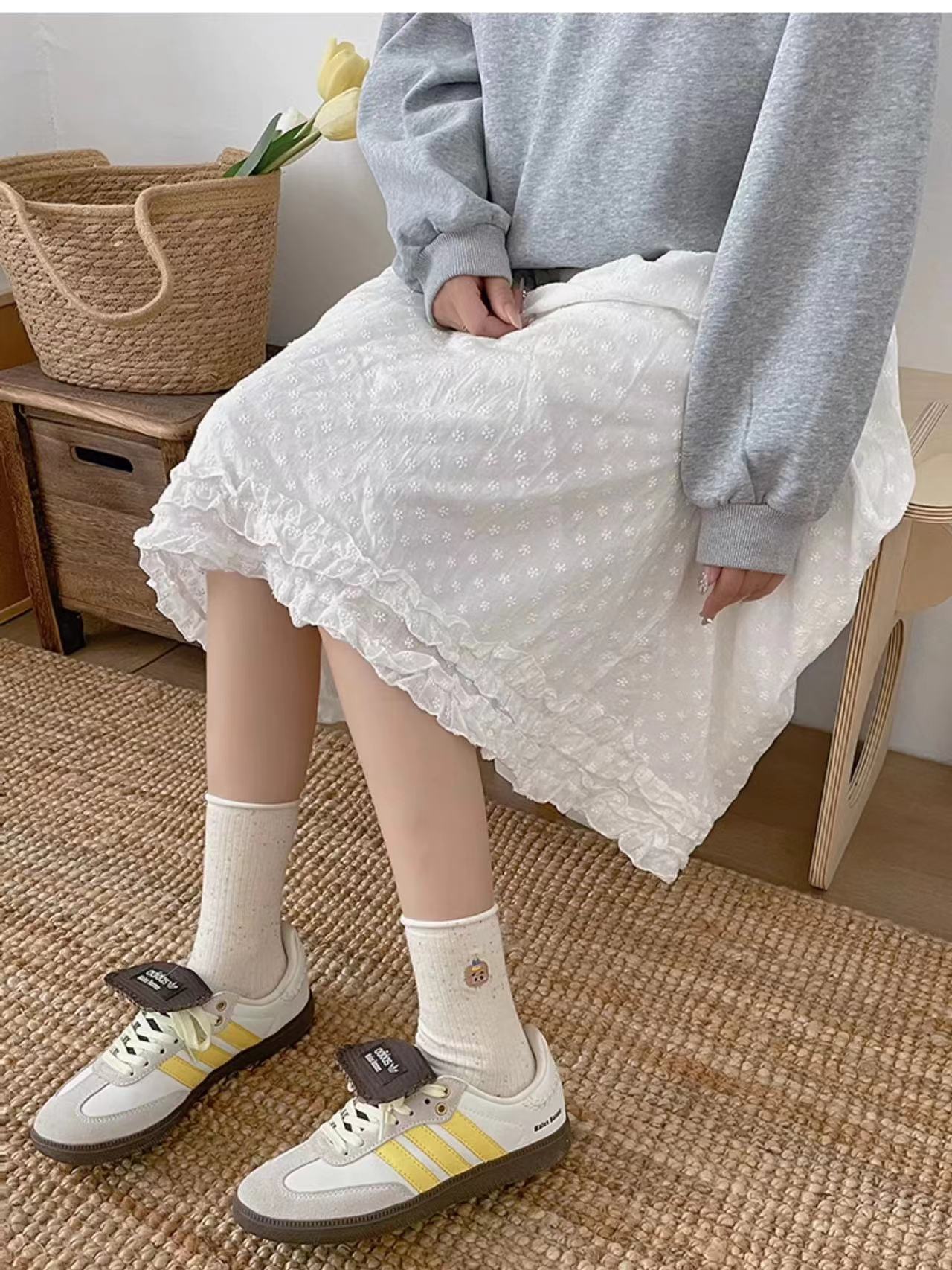 양말 여성의 가을과 겨울 순면 포인트 원사 만화 자수 강아지 양말 간단한 귀여운 느슨한 중간 더미 양말
