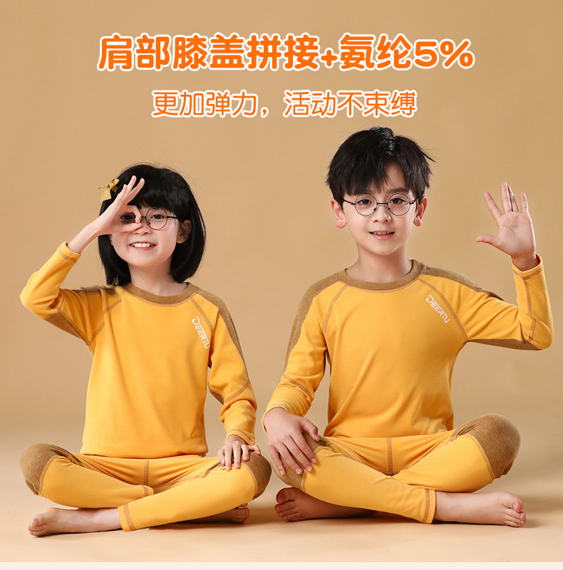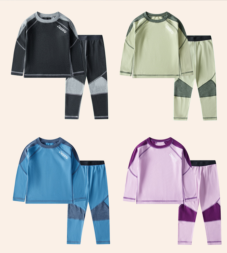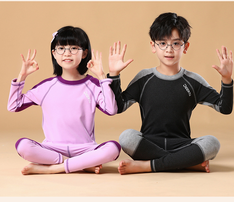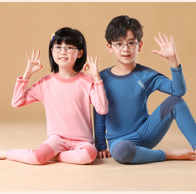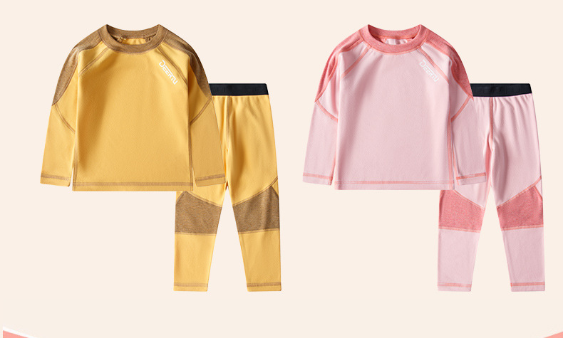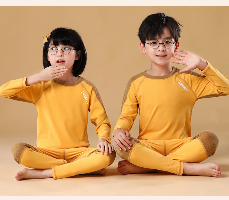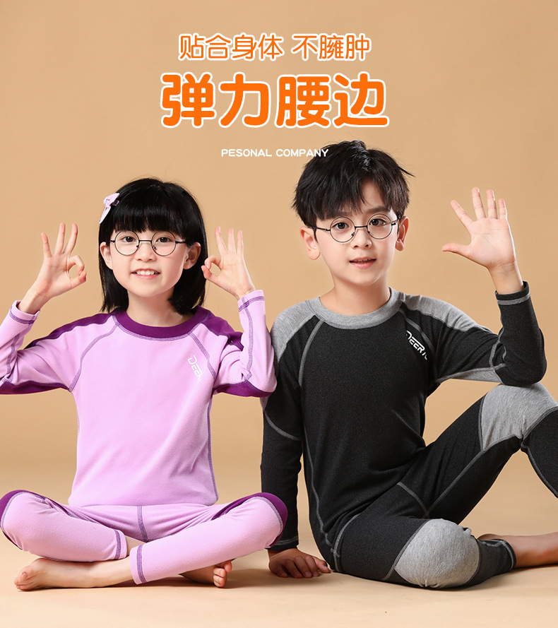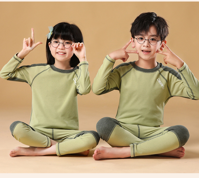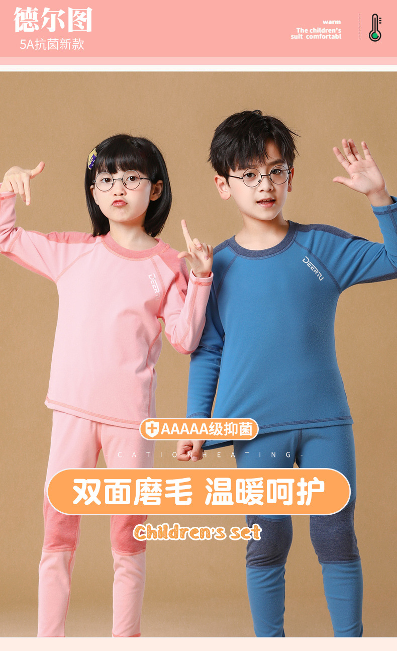 가을과 겨울 새로운 아이들의 원활한 따뜻한 항균 양면 샌딩 속옷 세트 소년 소녀 캔디 컬러 홈 의류