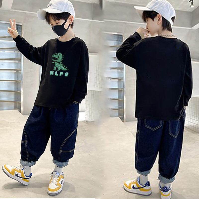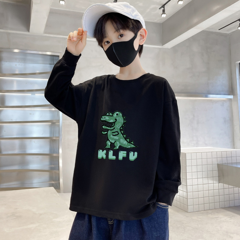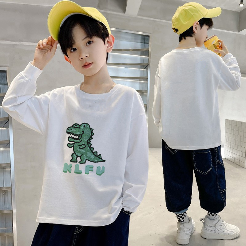 220g 순면 무거운 무게 아동복 소년 티셔츠 긴 소매 가을 어린이 큰 소년 코트 반소매 바닥 셔츠