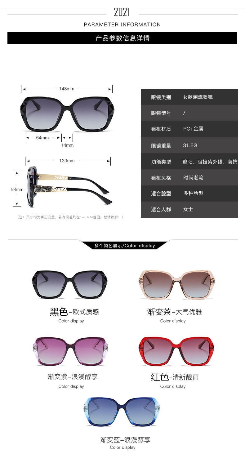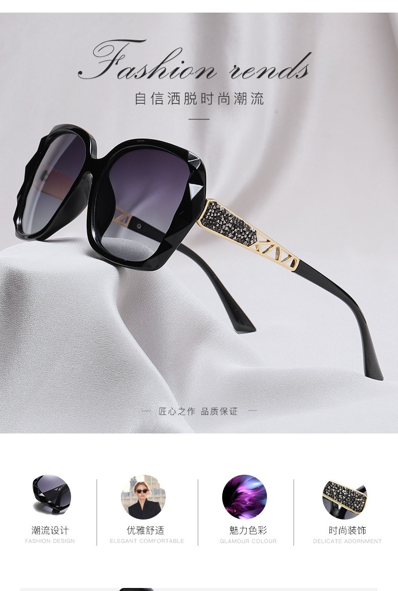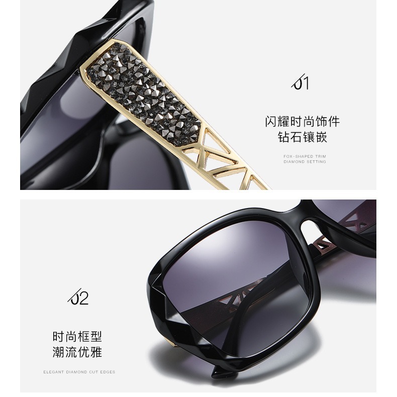 2026년 신형 다이아몬드 장식 고급 여성용 편광 선글라스, 패셔너블한 대형 프레임 선글라스, 운전용 차양 안경, 여성용 선글라스
