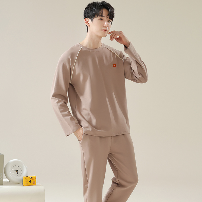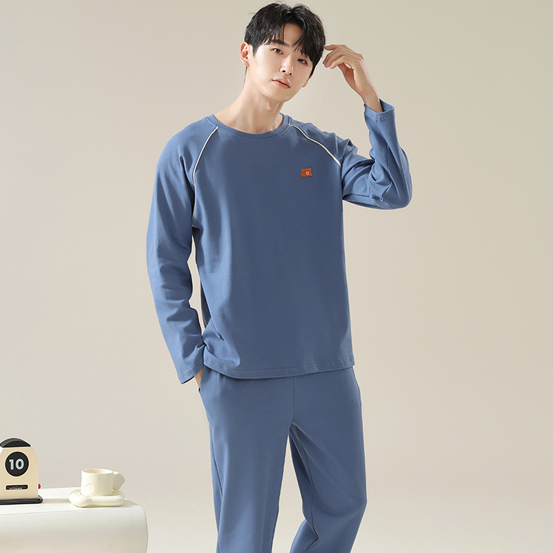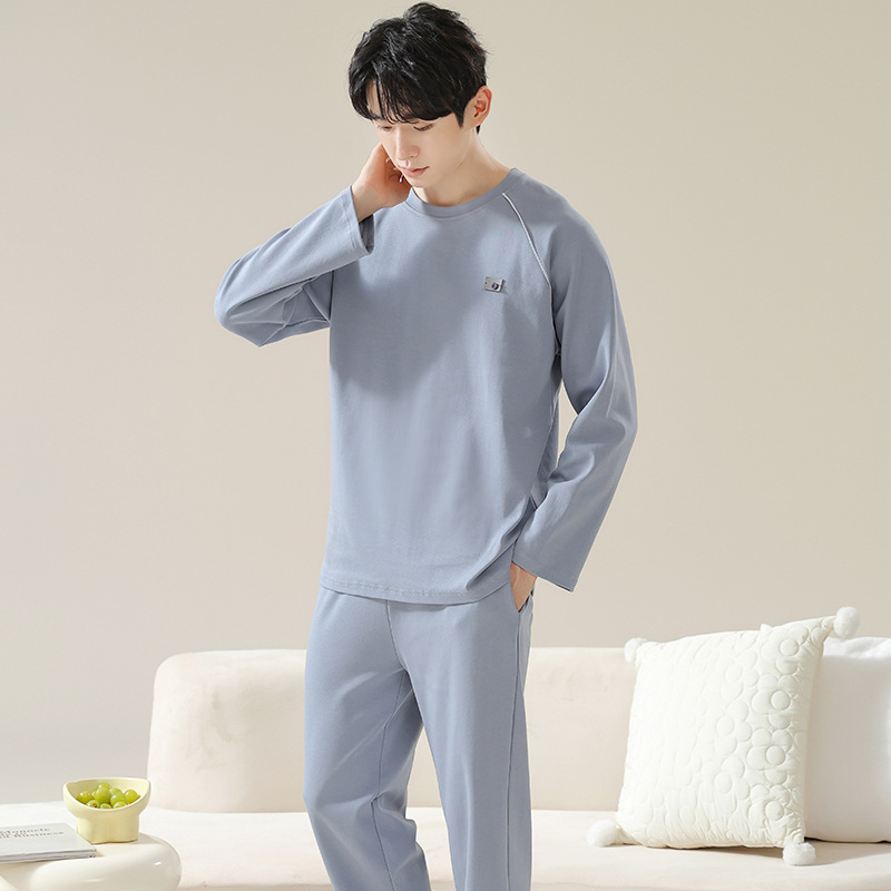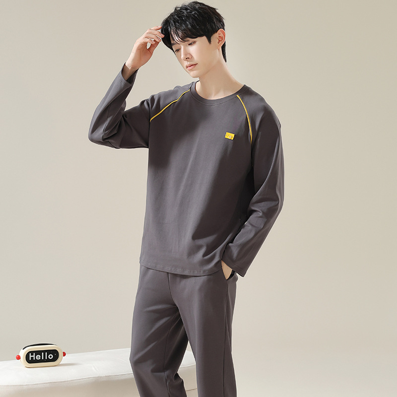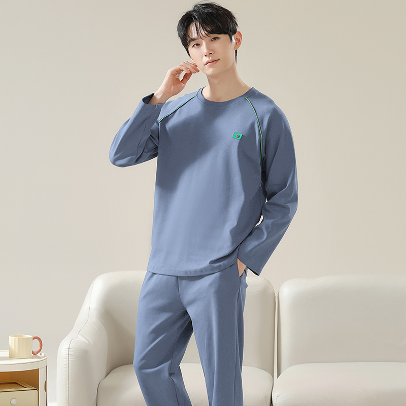 남성용 잠옷 봄 가을 100% 순면 긴팔 긴바지 2025 신상 남성 캐주얼 빅사이즈 외출복 겸용 홈웨어스토어 가기