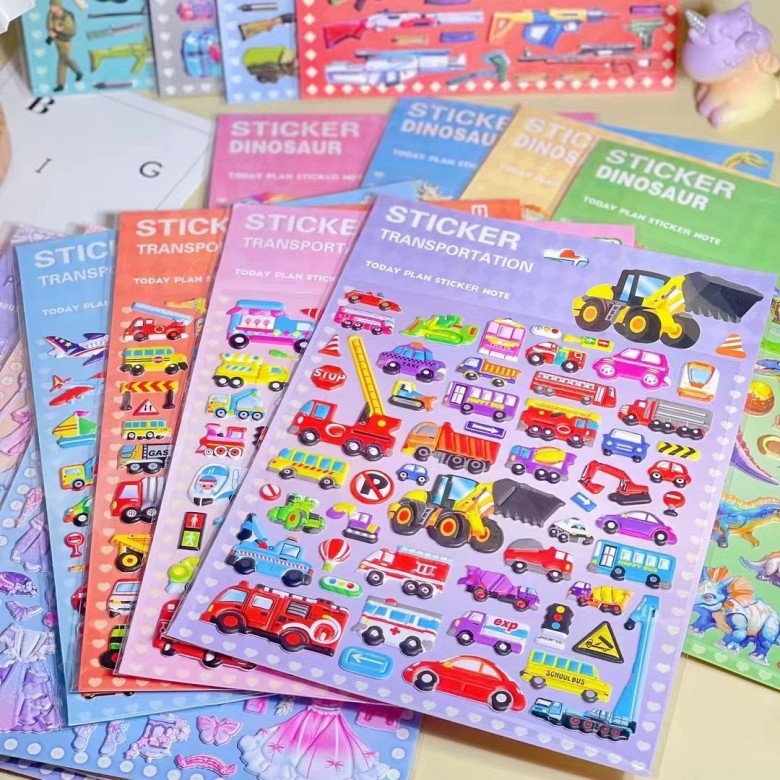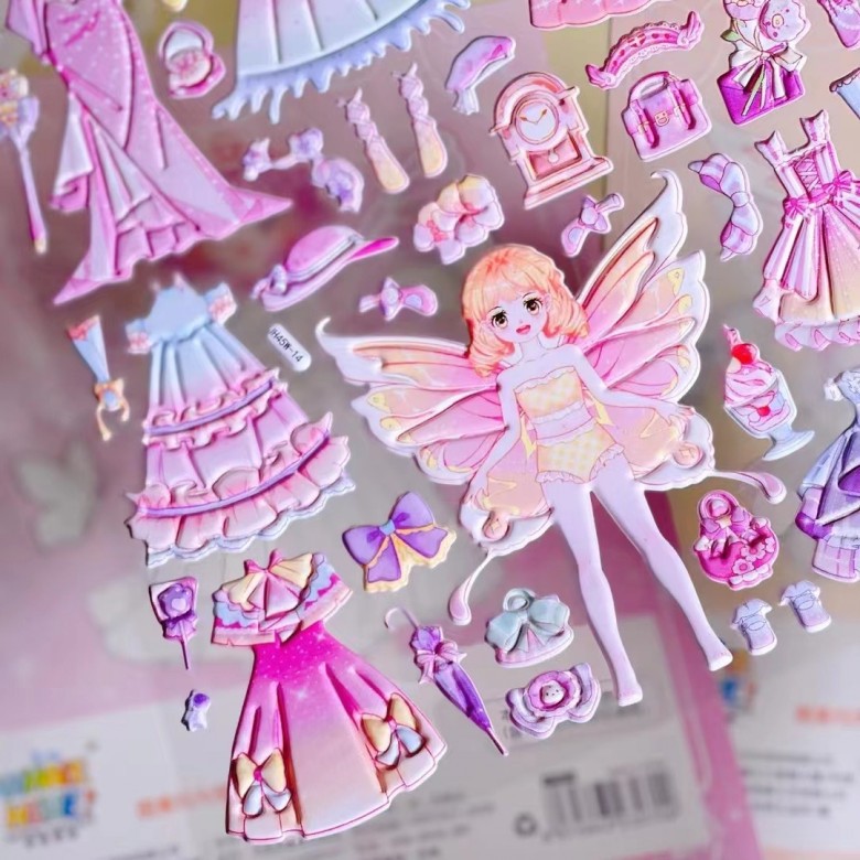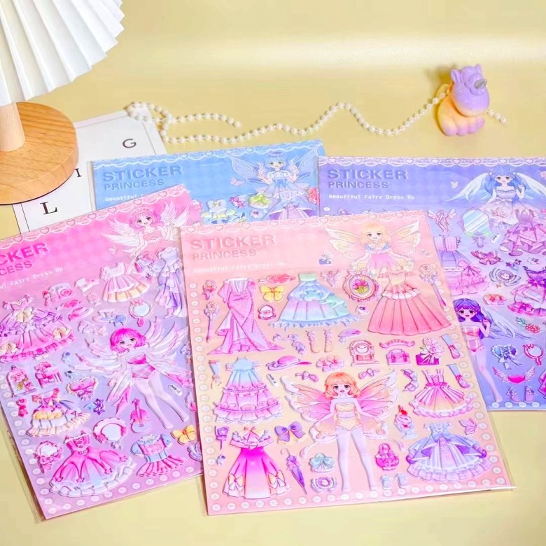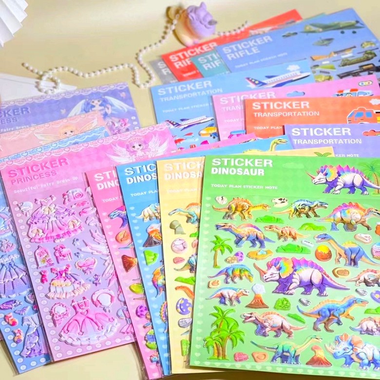 어린이 만화 공주 원피스 공룡 동물 입체 거품 스티커 스티커 3D 소녀 아기 보너스 붙여 넣기
