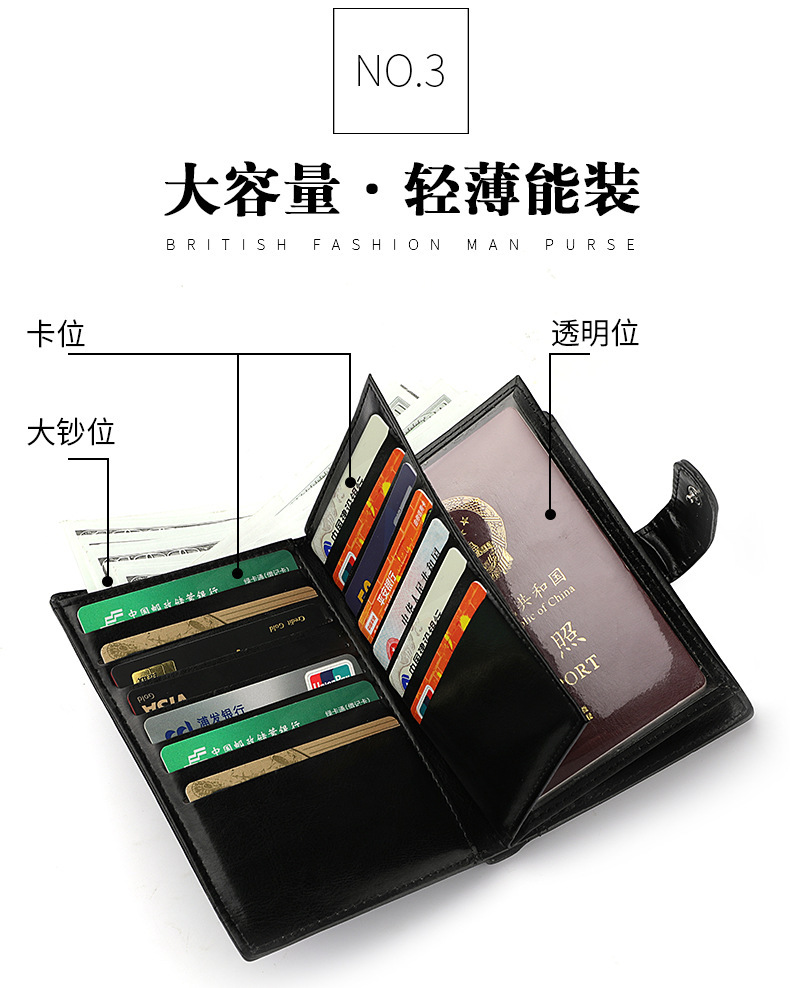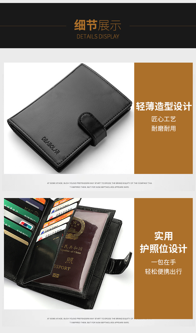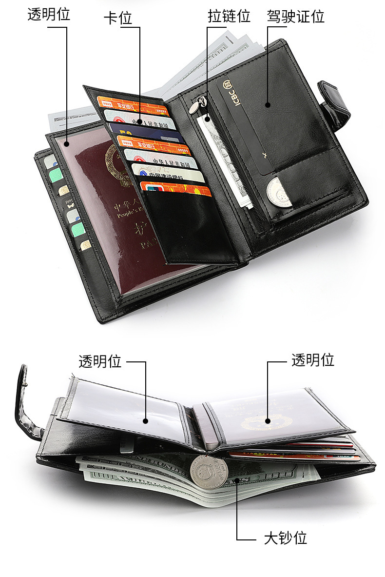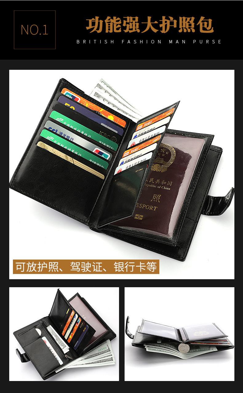 남성 지갑 국경 새 대용량 운전 면허증 카드 지갑 다기능 여권 동전 지갑 재고 도매스토어 가기