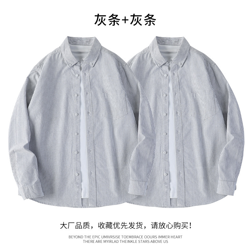 아메리칸 스타일 레트로 블루와 화이트 스트라이프 클래식 셔츠 긴 소매 남성 봄과 가을 느슨한 캐주얼 작업 셔츠 얇은 재킷스토어 가기
