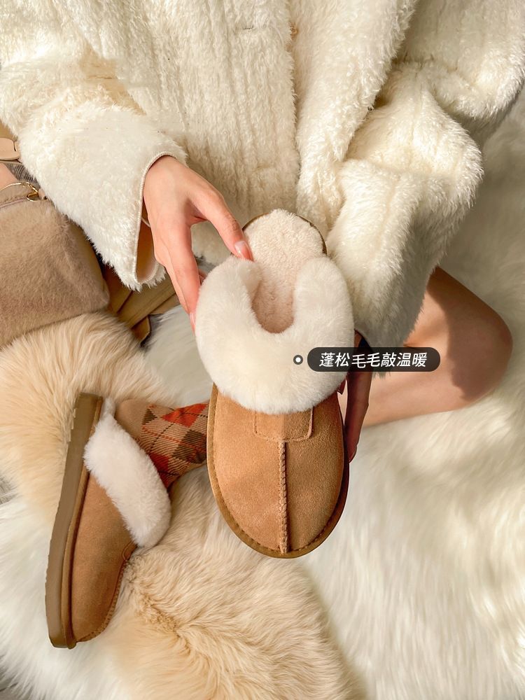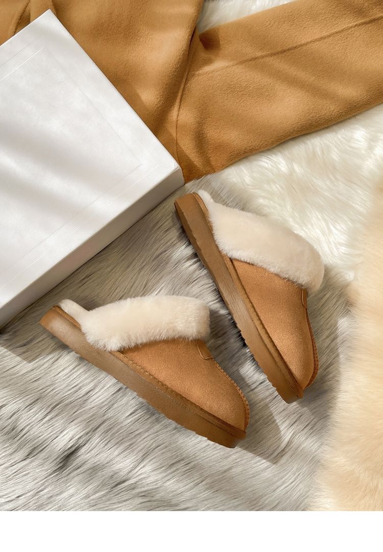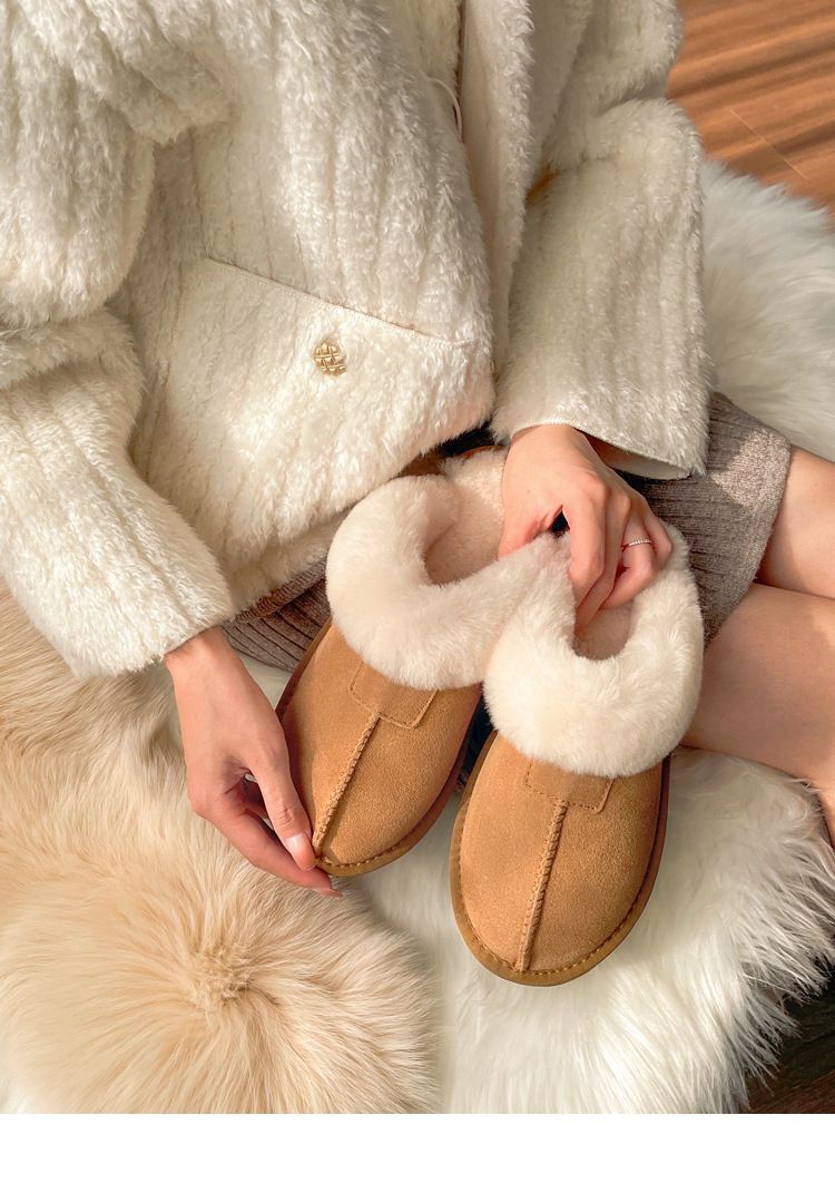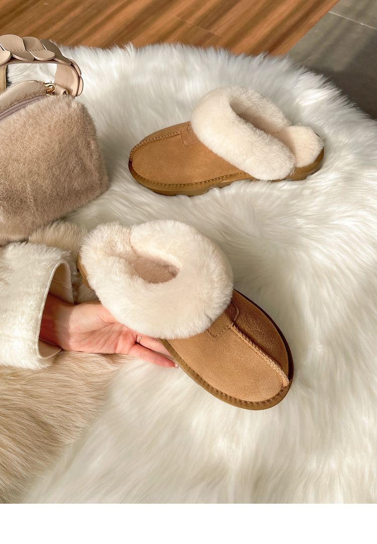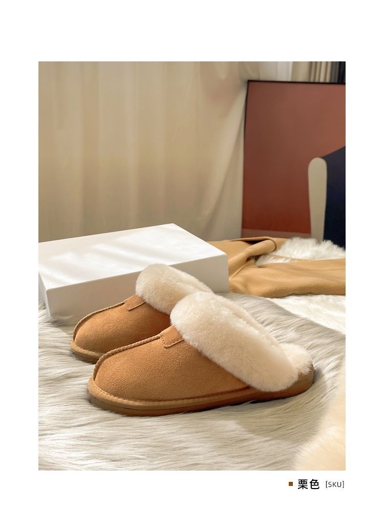 여성용 털 슬리퍼 2025년 신상 겨울용 앞코가 덮인 반슬리퍼 면화 신발 플러스 벨벳 두꺼운 밑창 가죽과 모피 일체형 스노우 부츠스토어 가기