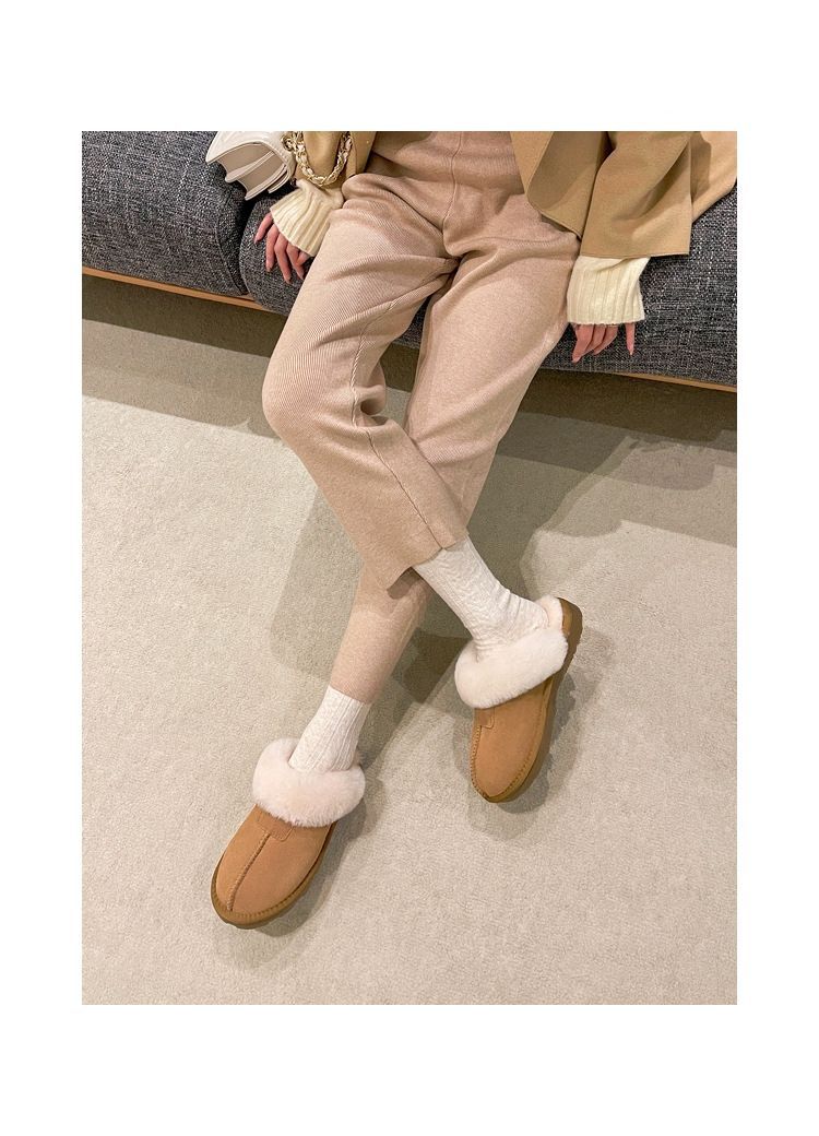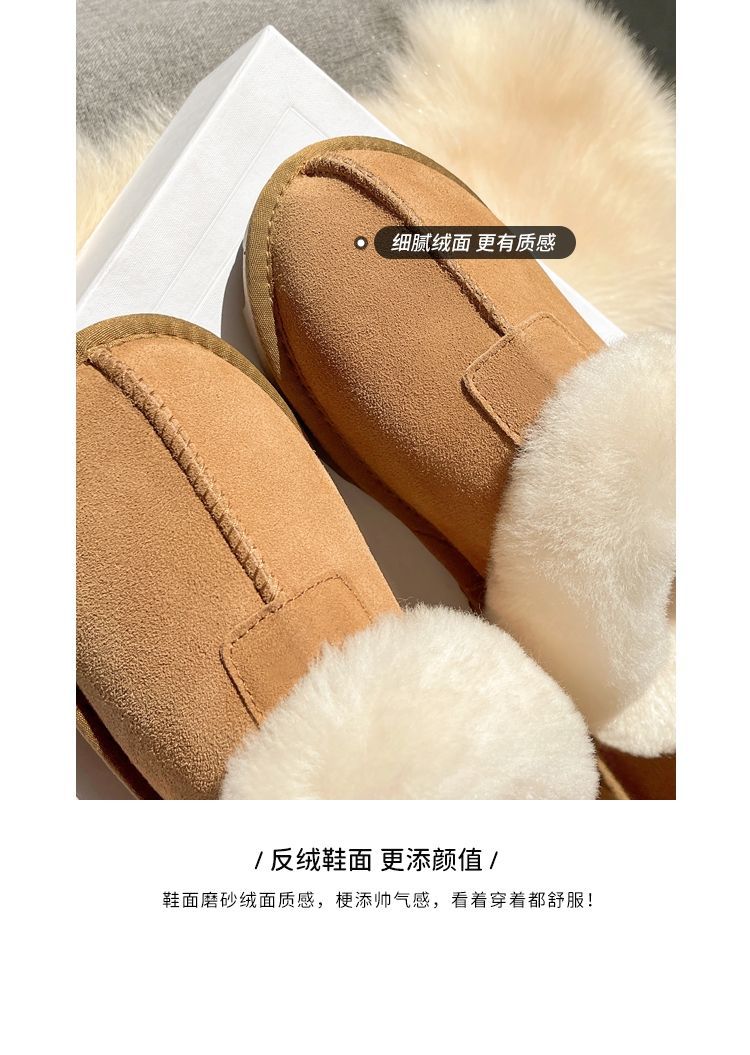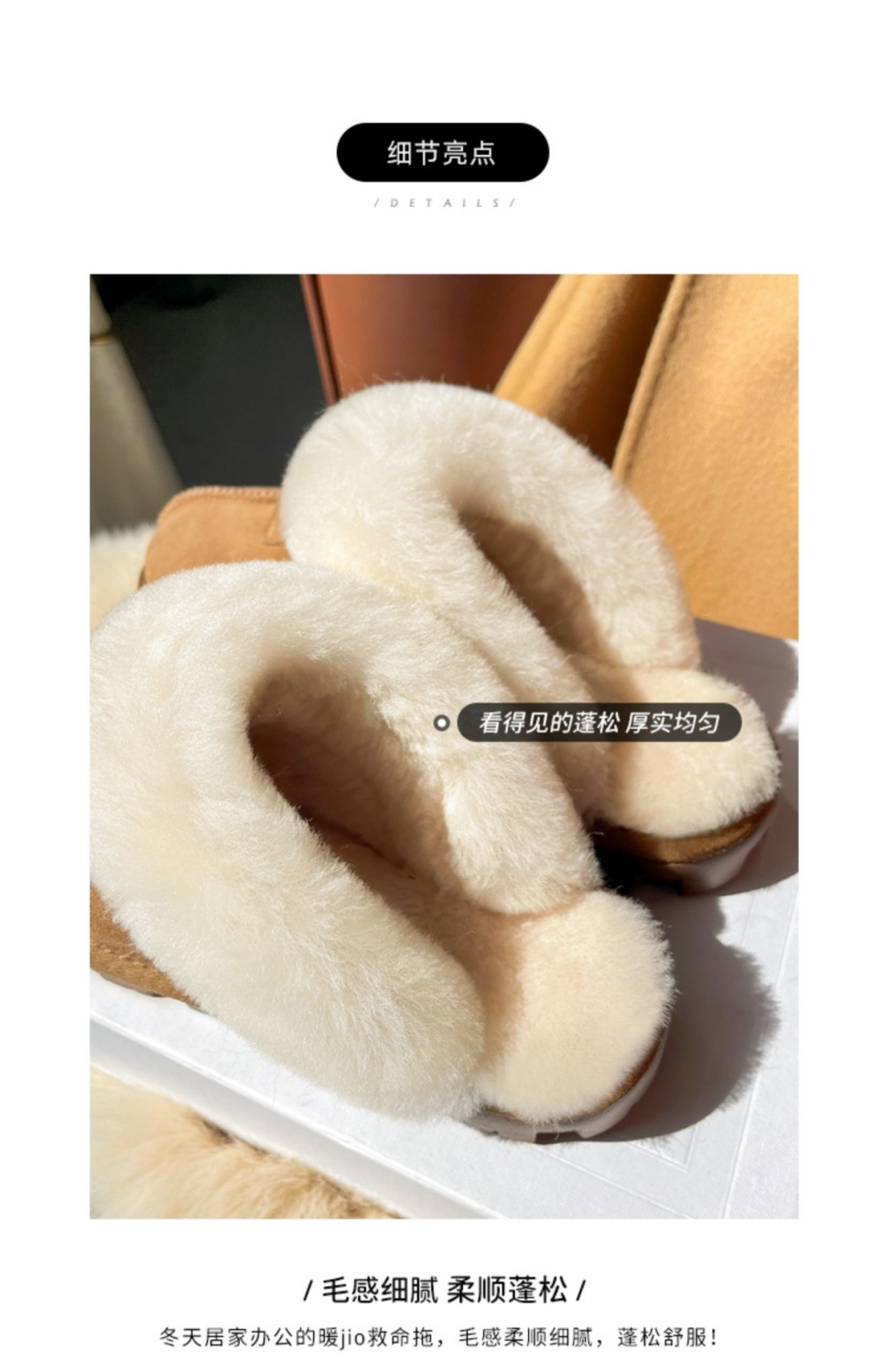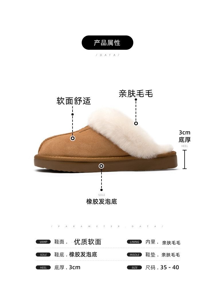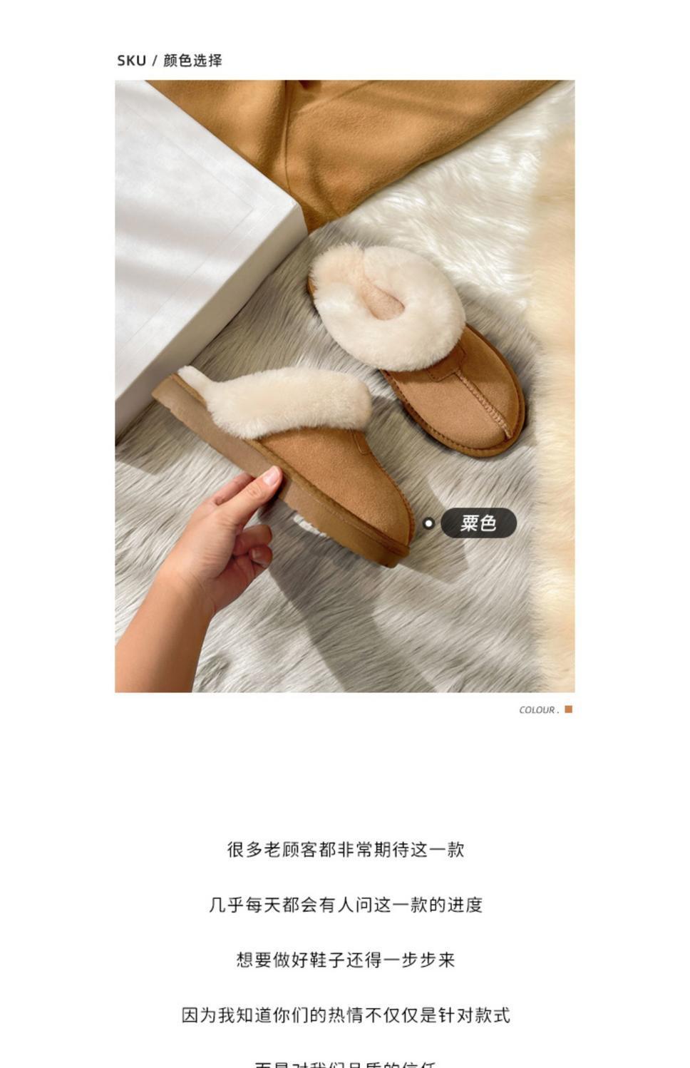 여성용 털 슬리퍼 2025년 신상 겨울용 앞코가 덮인 반슬리퍼 면화 신발 플러스 벨벳 두꺼운 밑창 가죽과 모피 일체형 스노우 부츠스토어 가기