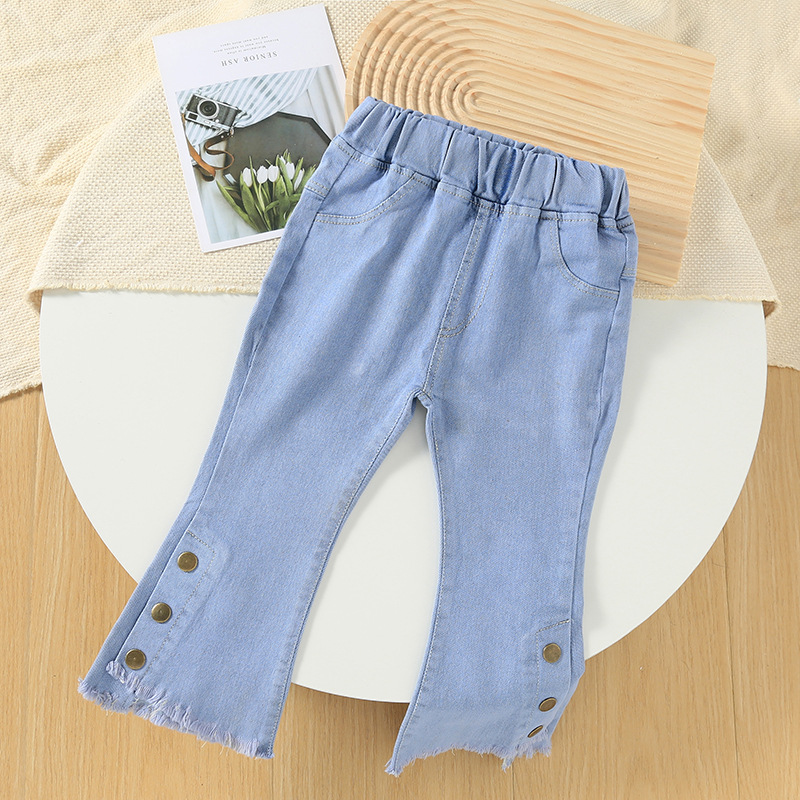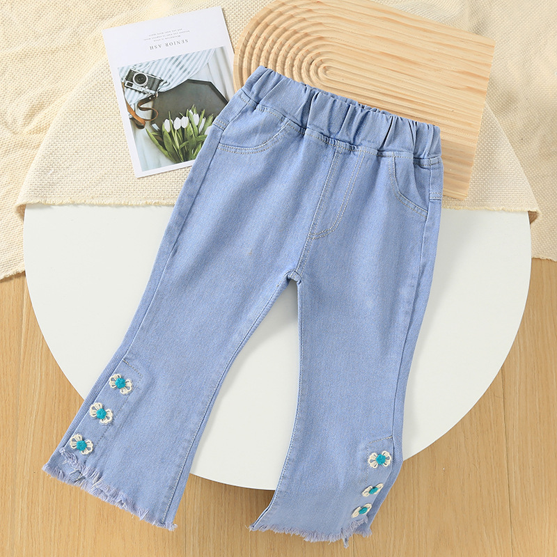 소녀 청바지 2024 년 새 어린이 한국식 봄 꽃 바지 아기 소녀 가을 바지스토어 가기