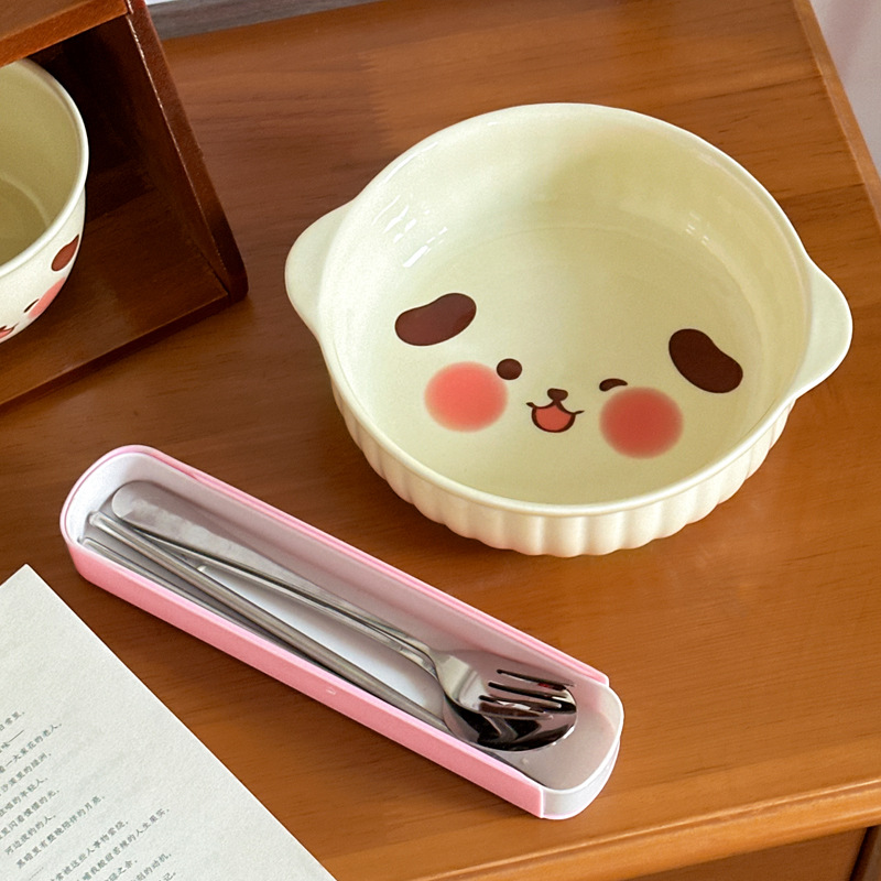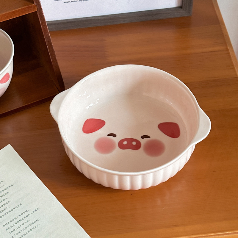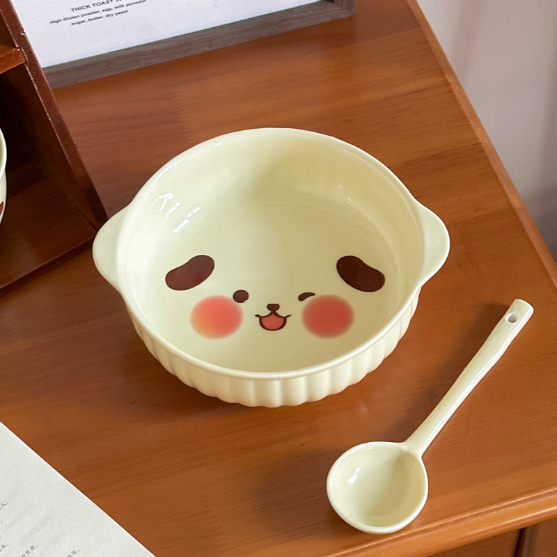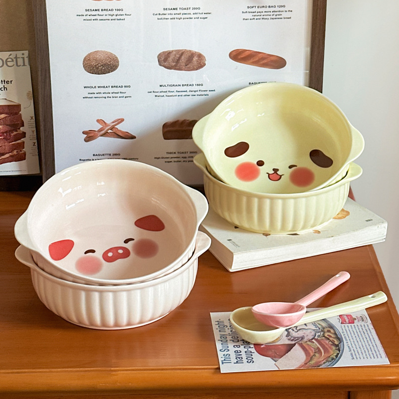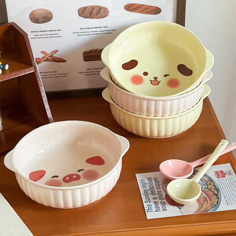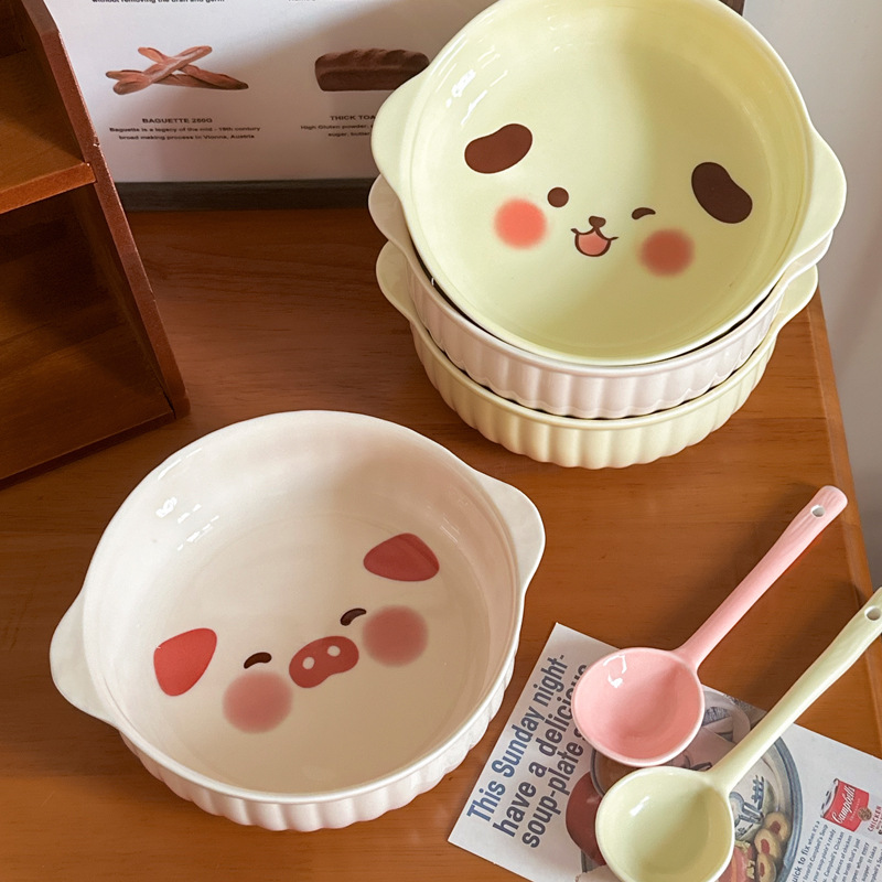 귀여운 크림 스타일 세라믹 식기 가정용 바이노럴 국수 그릇 수프 그릇 전자 레인지 베이킹 보울 오븐 특수 구운 밥 그릇