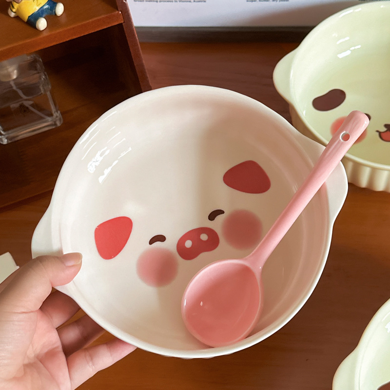 • 7.5inch 쌍귀 베이킹 볼 - 핑크 돼지 + 스푼