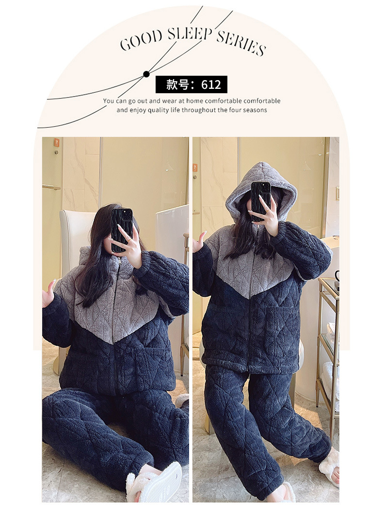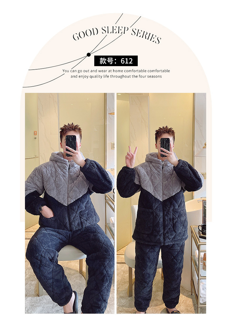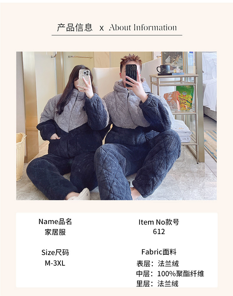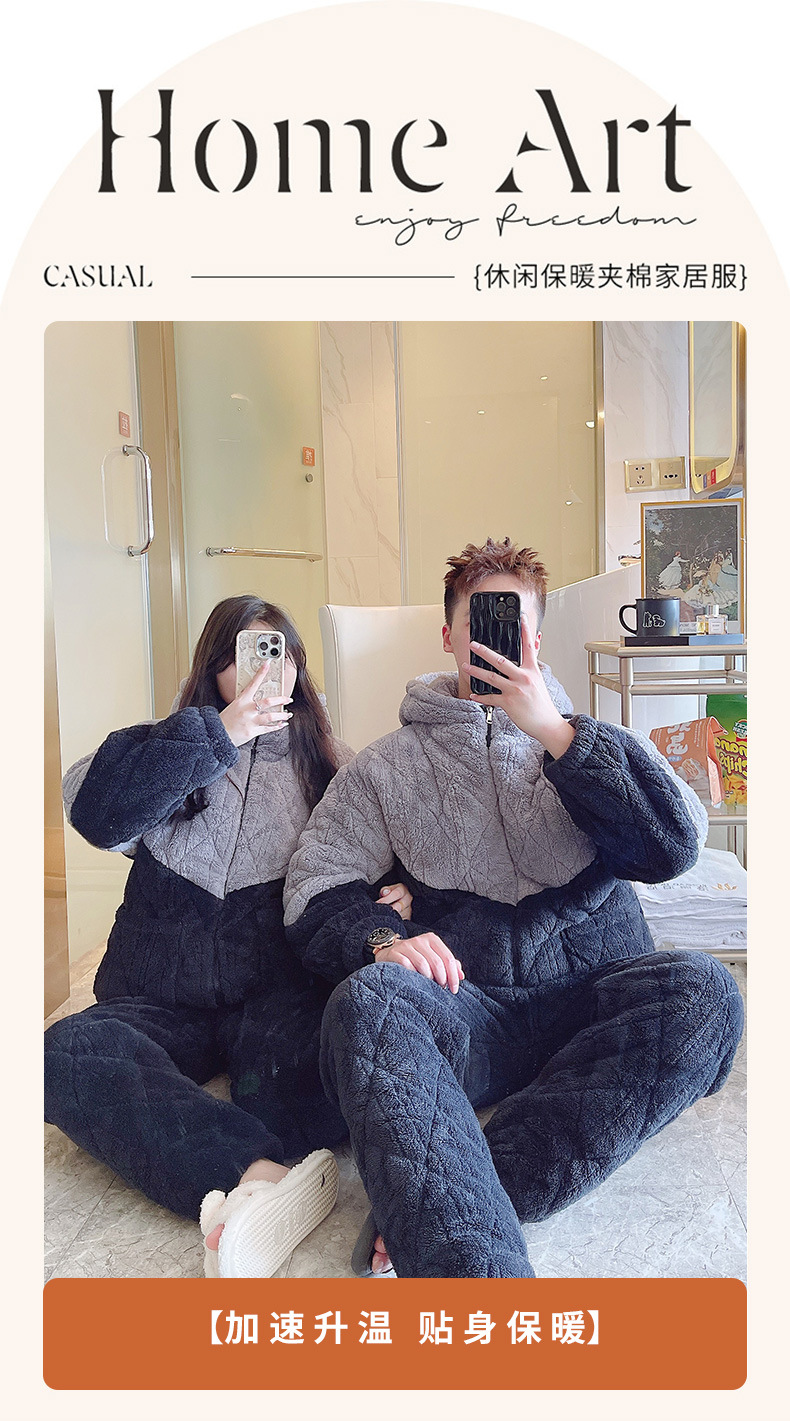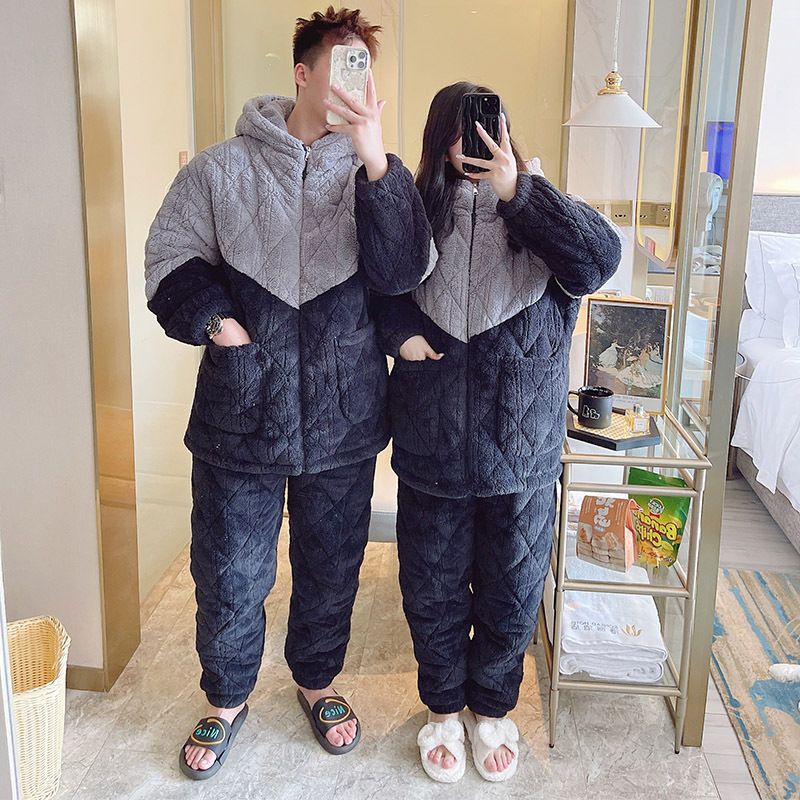 간단한 커플 젊고 중년 잠옷 남자와 여자의 산호 양털 가을과 겨울 3 층 퀼트 홈 옷 겨울 착용스토어 가기
