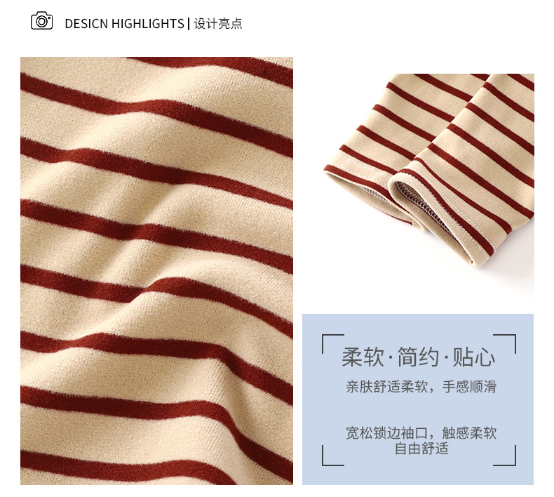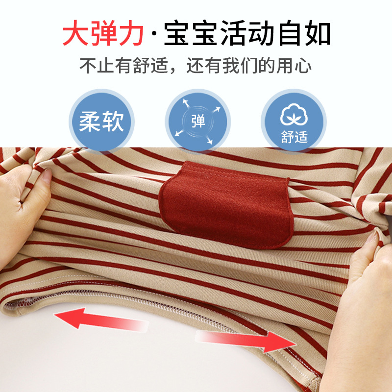 엄선된 남녀공용 아동용 독일산 벨벳 베이스 레이어, 클래식 스트라이프 긴팔 봄, 가을 베이비 따뜻한 가을 옷 싱글 피스스토어 가기