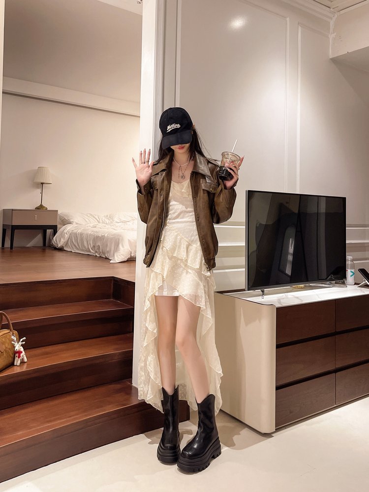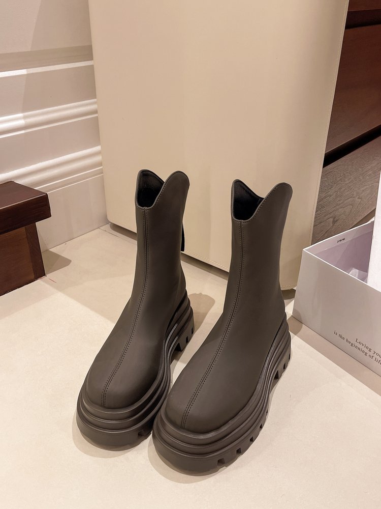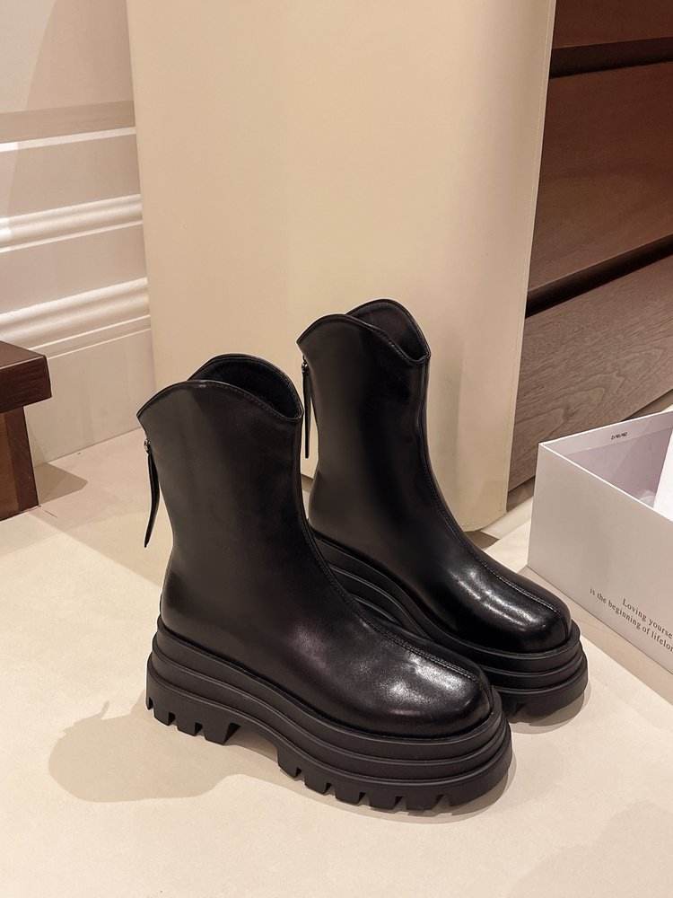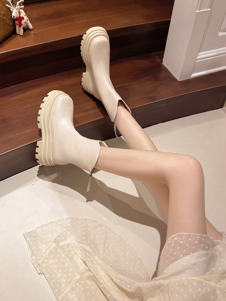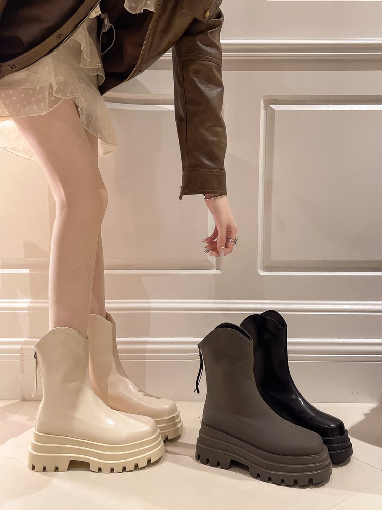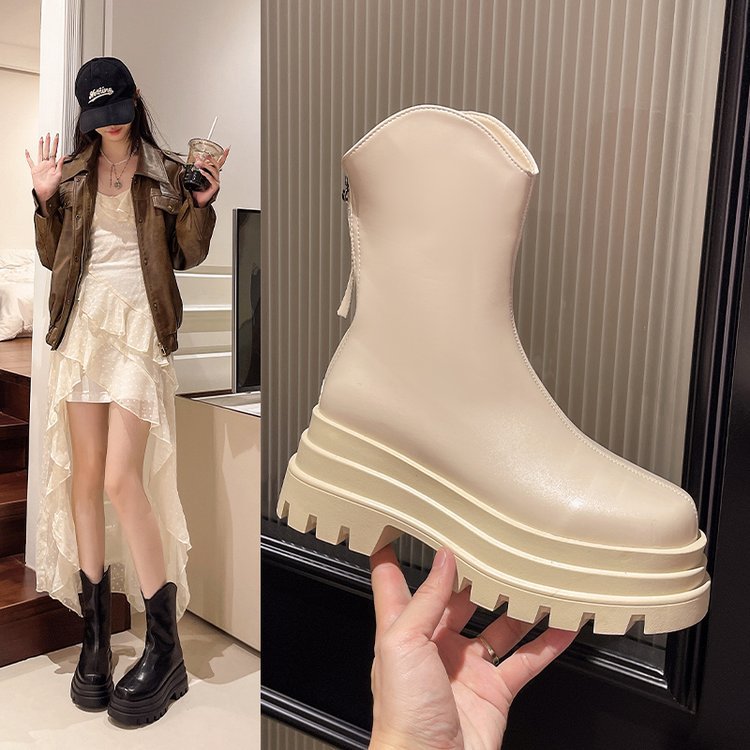 영국 스타일 두꺼운 바닥 마틴 부츠 여성의 2024 새로운 가을 및 겨울 V-입 얇은 부츠 작은 하이힐 지퍼 부츠스토어 가기