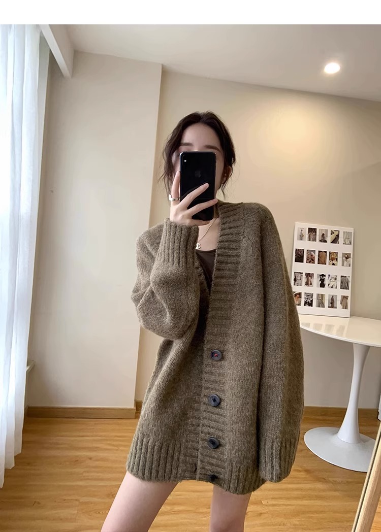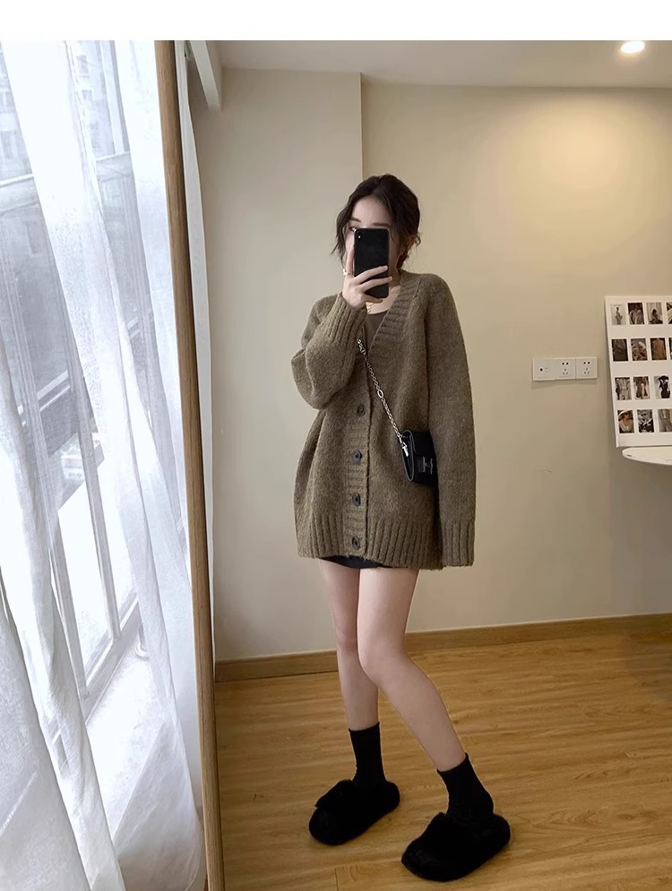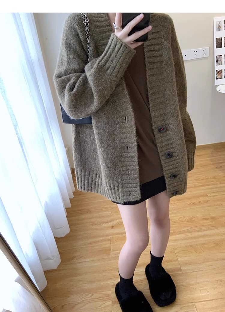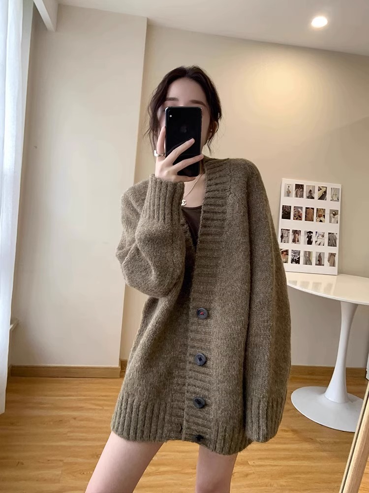 일본과 한국 스타일 더 게으른 스타일 레트로 니트웨어 가을과 겨울 두꺼운 최고 스웨터 코트 여성 카디건 느슨한 중간 길이의 여성스토어 가기