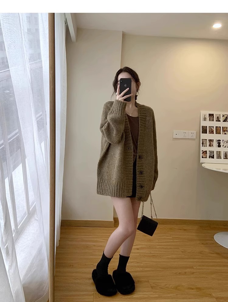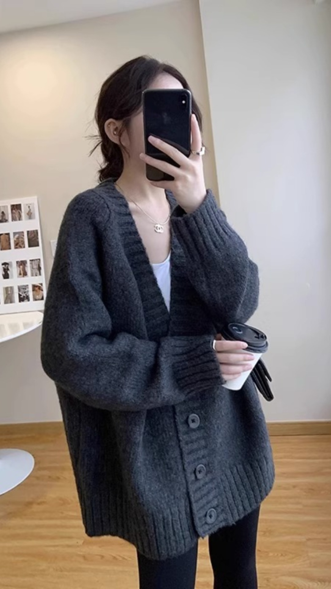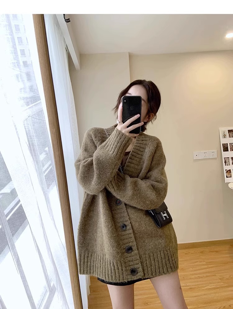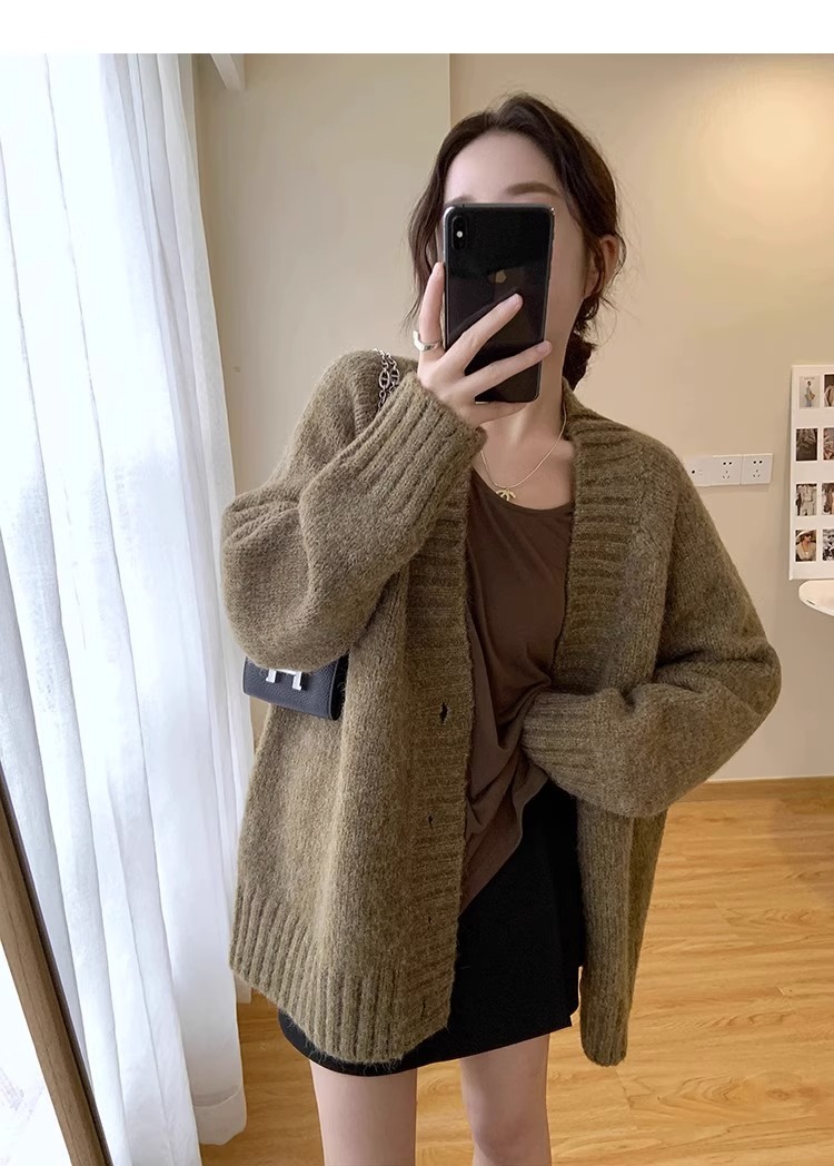 일본과 한국 스타일 더 게으른 스타일 레트로 니트웨어 가을과 겨울 두꺼운 최고 스웨터 코트 여성 카디건 느슨한 중간 길이의 여성스토어 가기