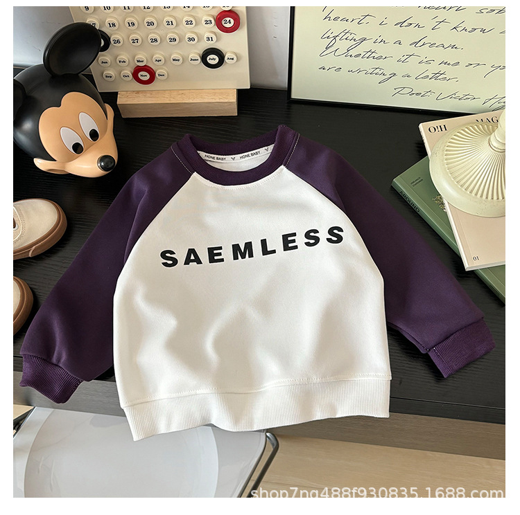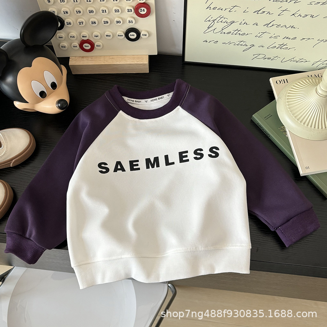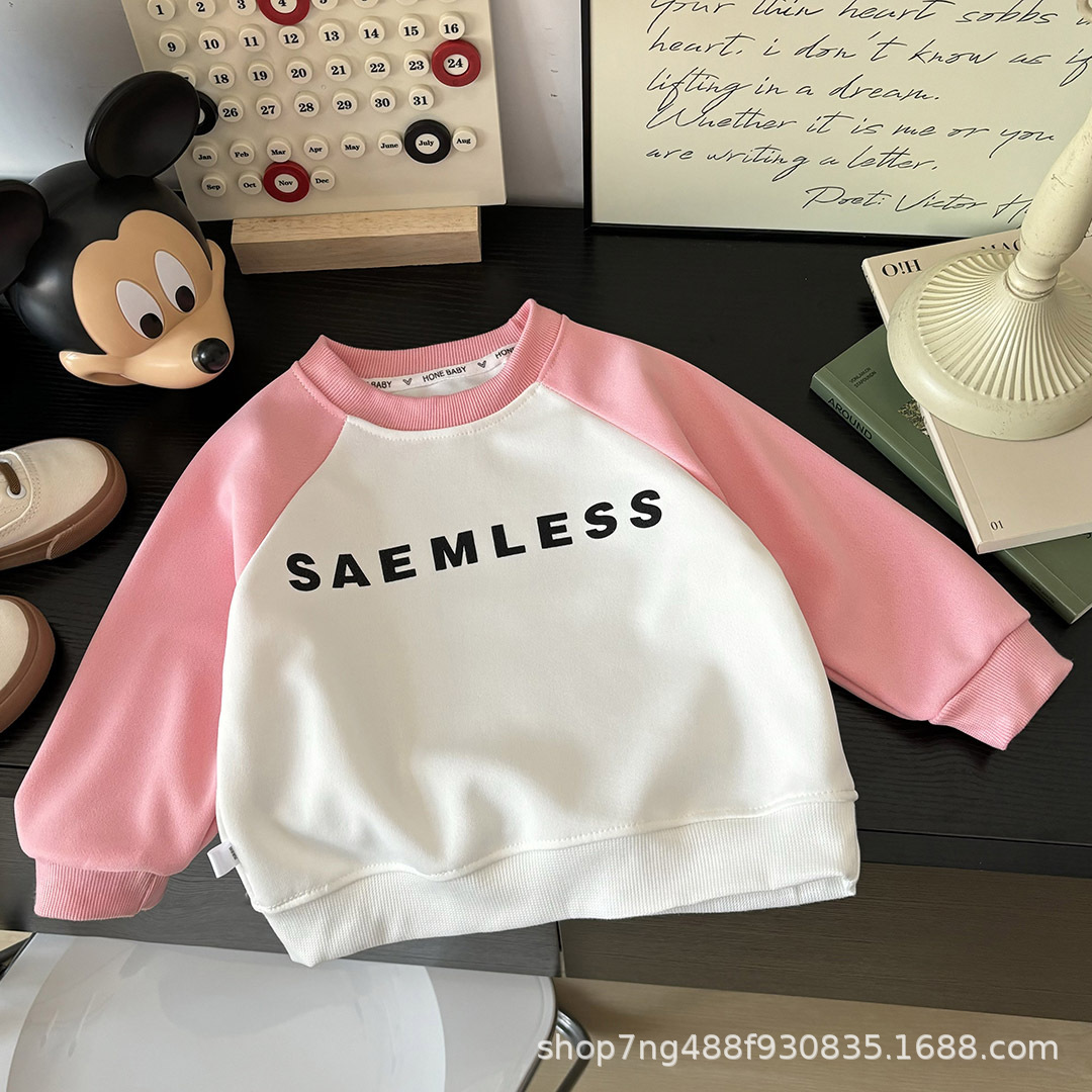 남학생 긴팔 신식 스웨트 셔츠 여아 크루 넥 스타일라인 봄 · 가을 어린이 캐주얼 베이비 탑 중 · 대형 어린이스토어 가기