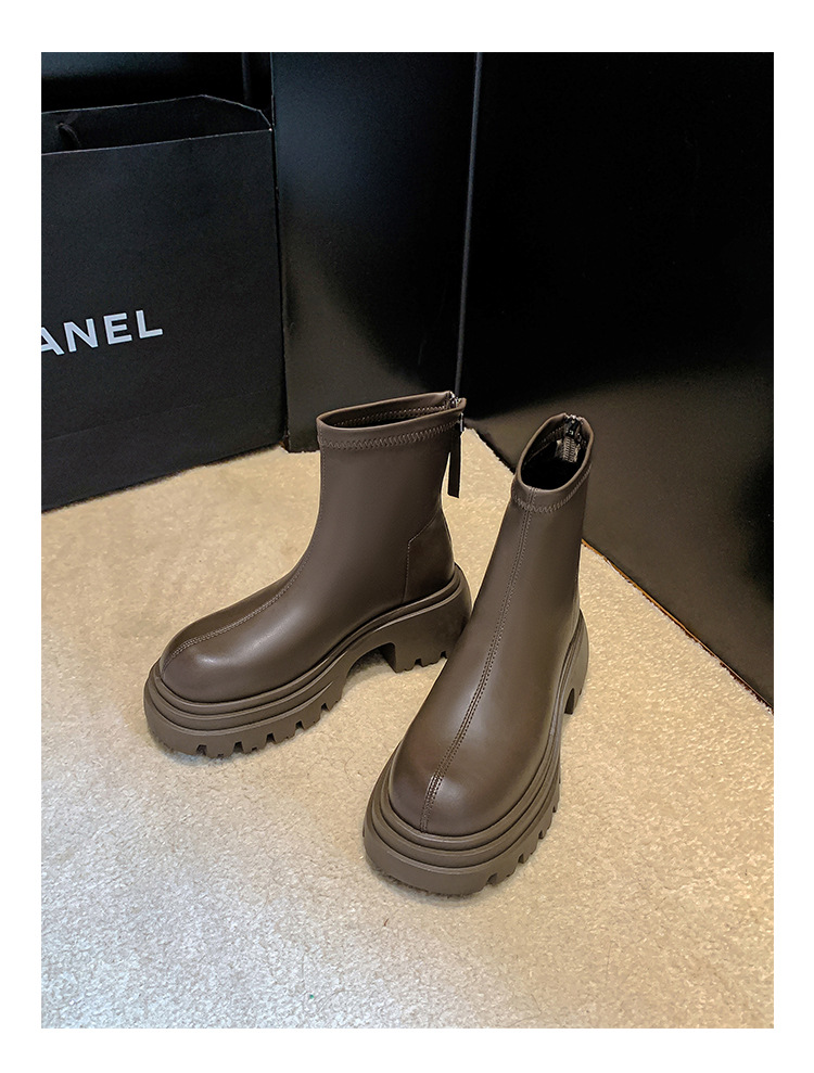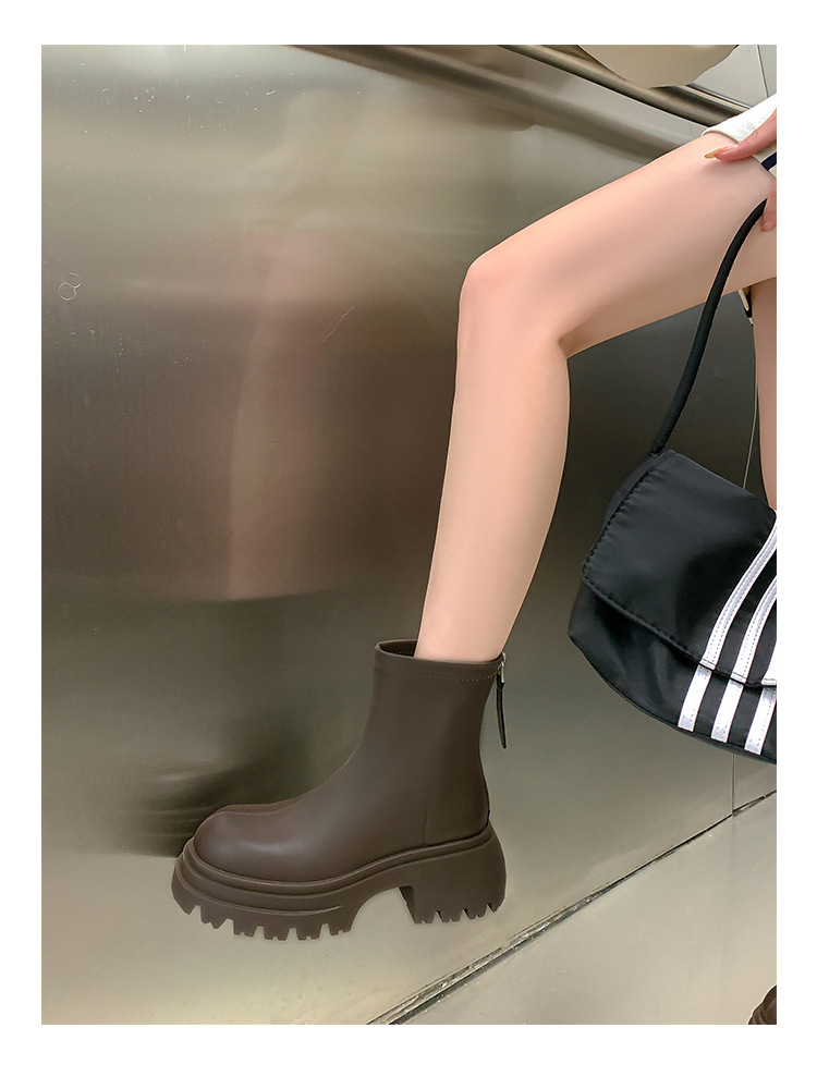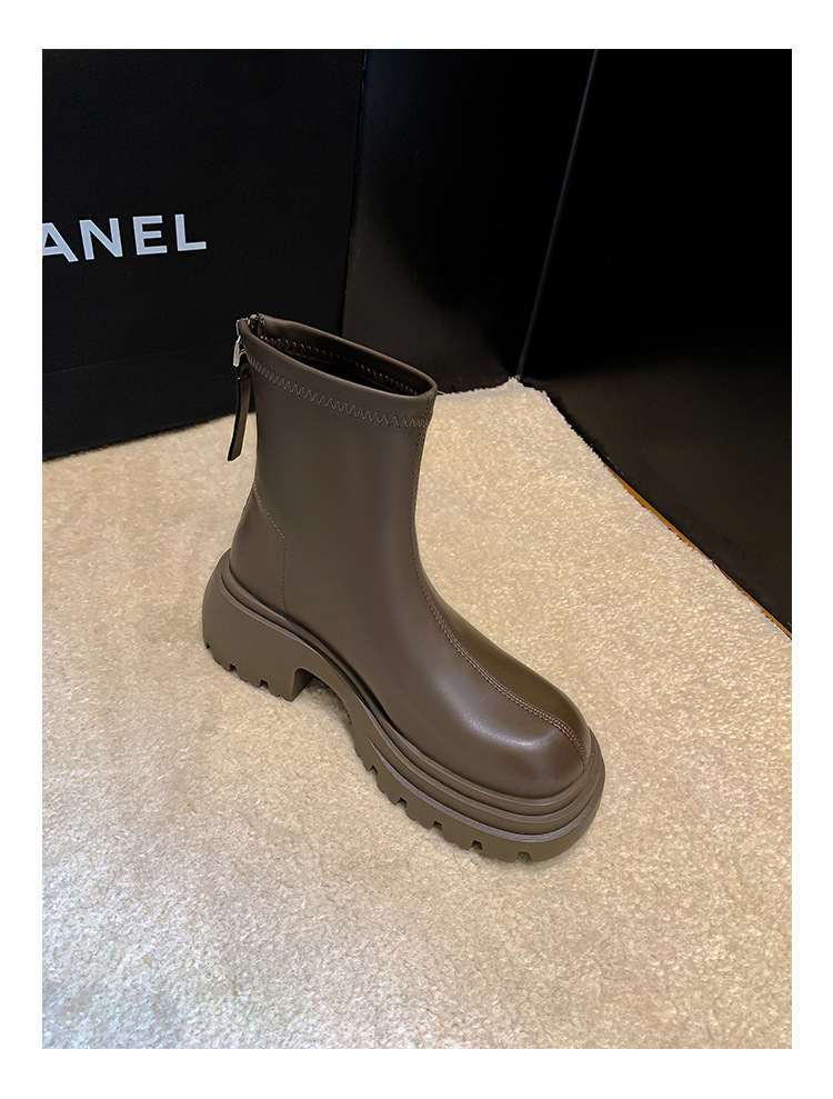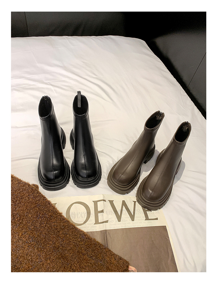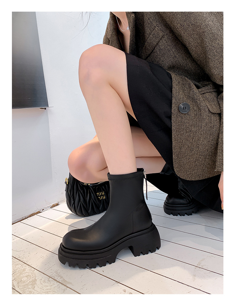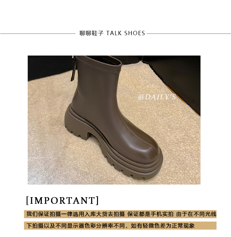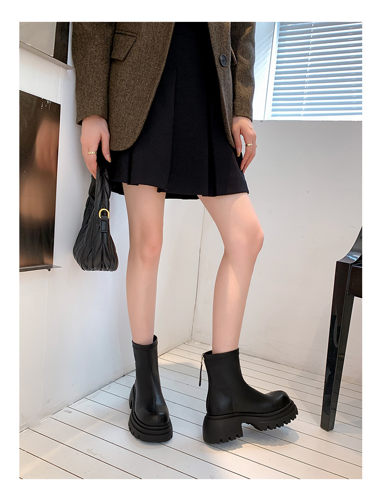 스타라이트 스퀘어 정품 가죽 블랙 두꺼운 바닥 마틴 부츠 여성의 2024 새로운 스키니 부츠 하이힐 쇼트 부츠 작은 발목 부츠스토어 가기