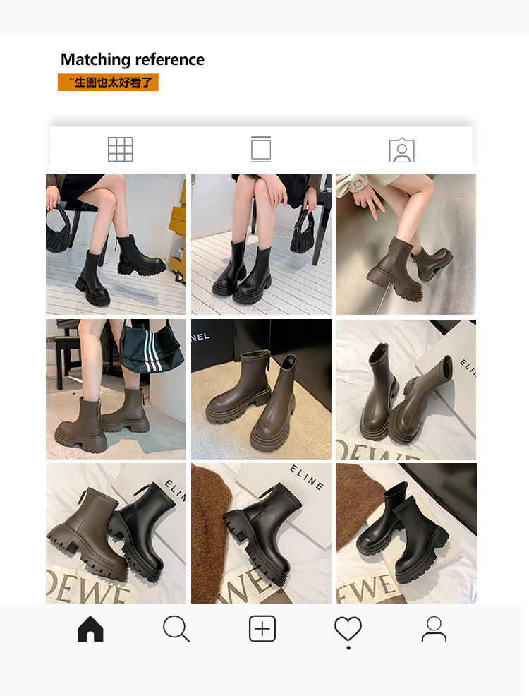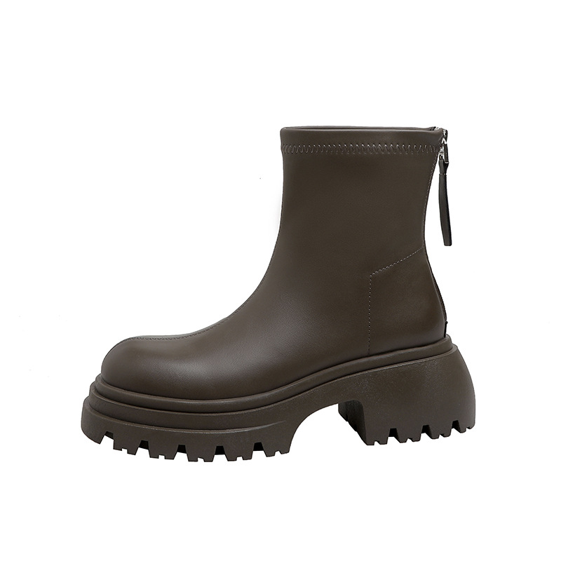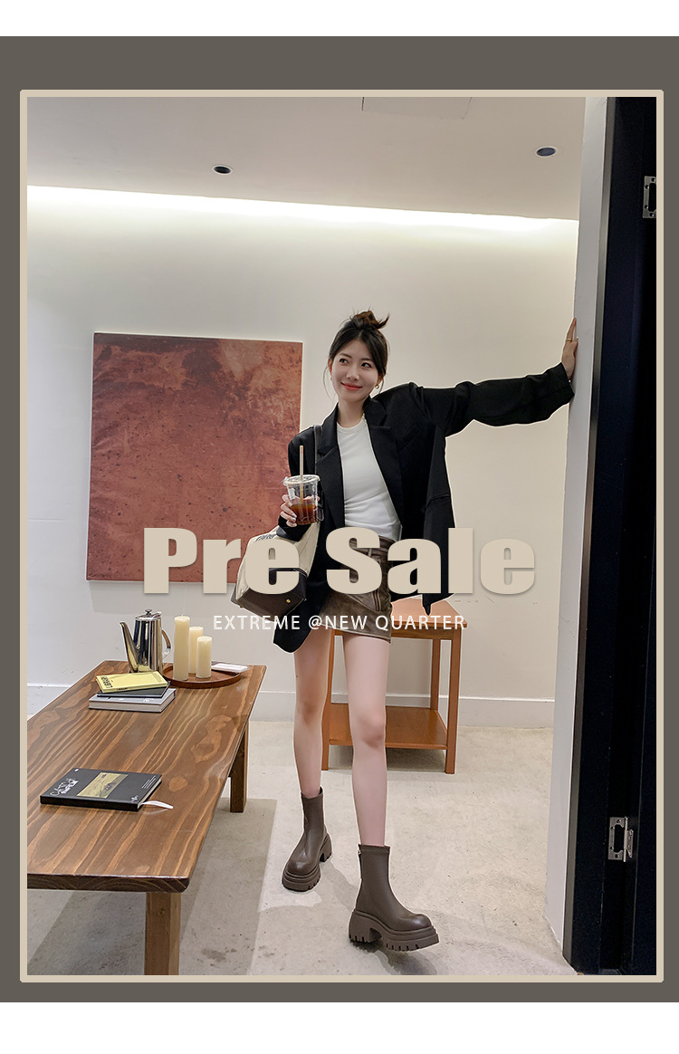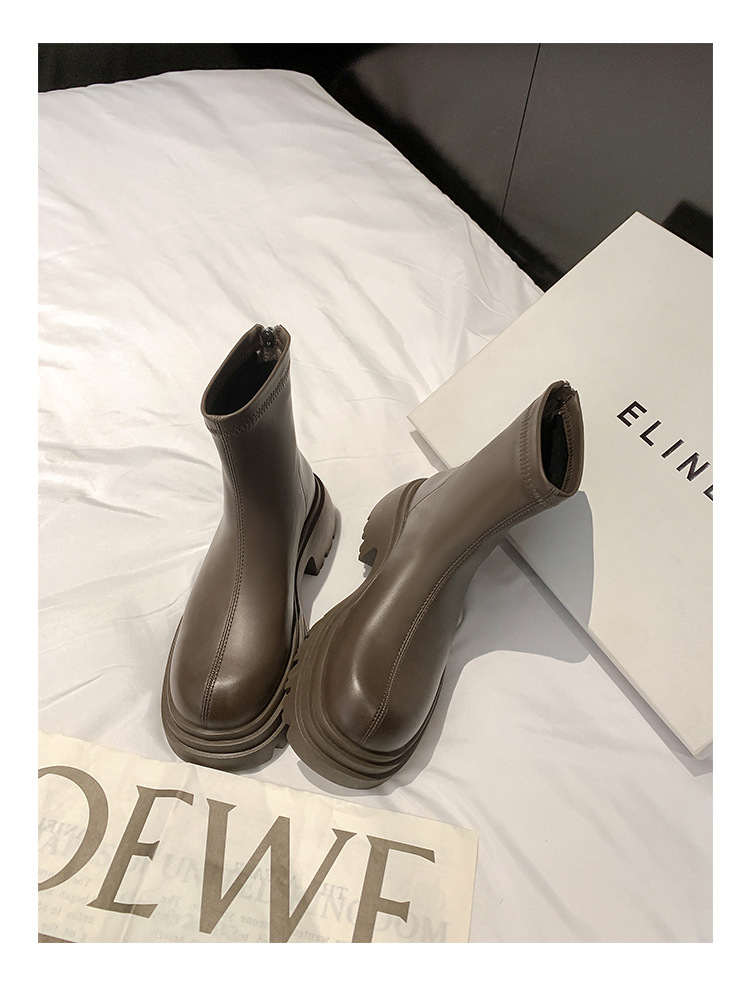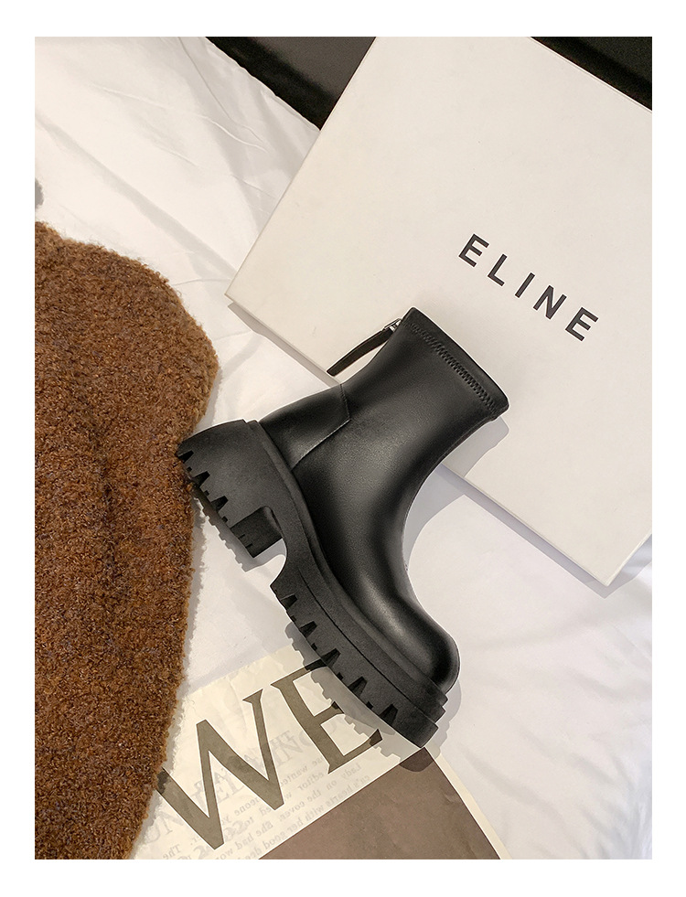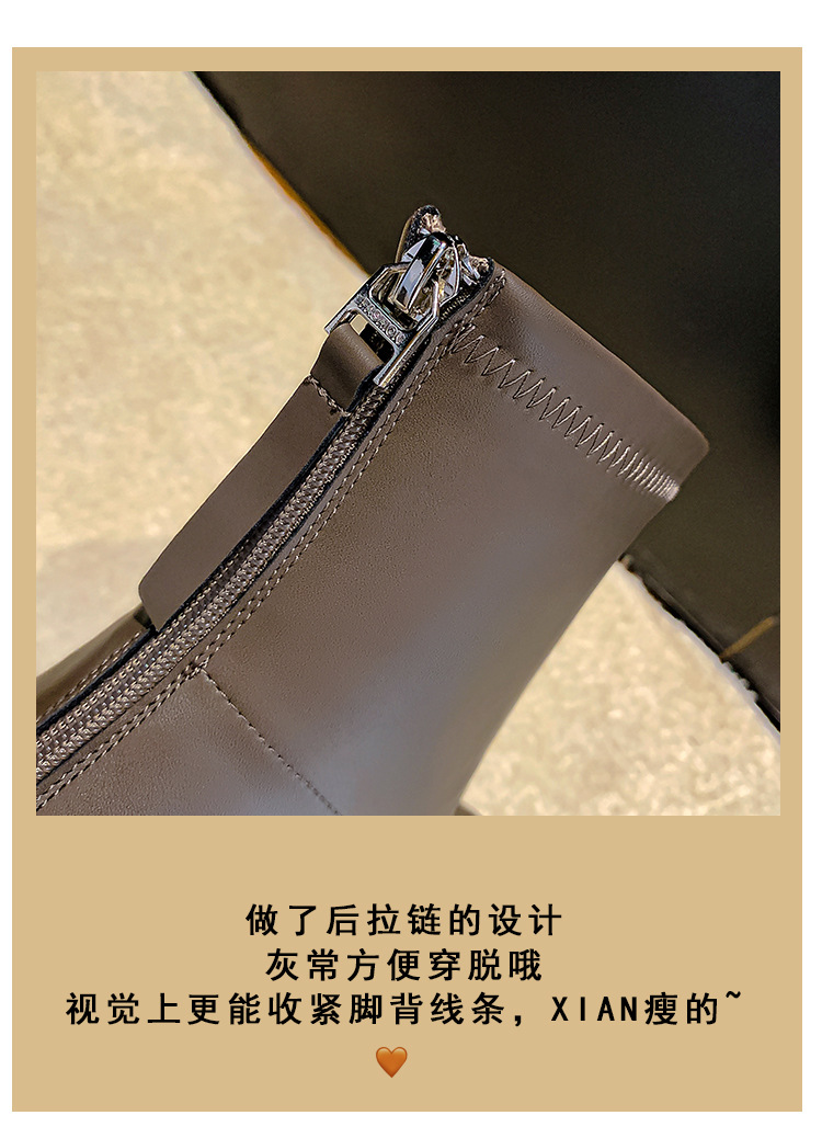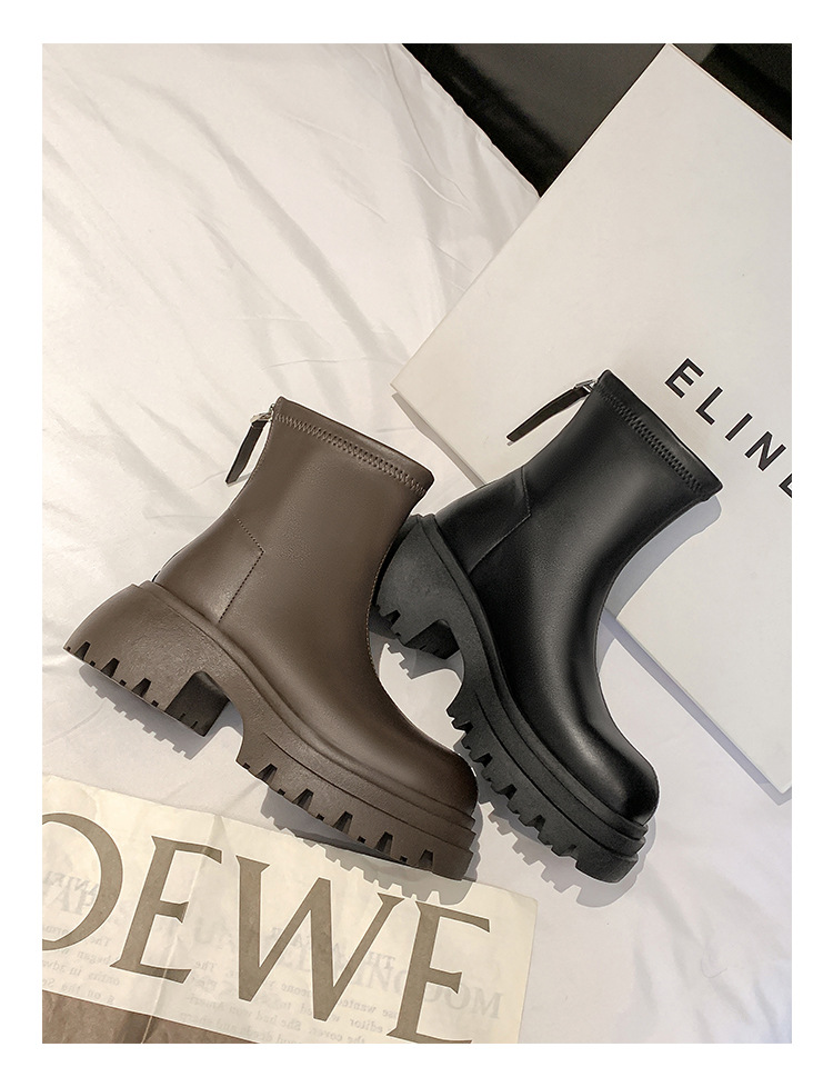 스타라이트 스퀘어 정품 가죽 블랙 두꺼운 바닥 마틴 부츠 여성의 2024 새로운 스키니 부츠 하이힐 쇼트 부츠 작은 발목 부츠스토어 가기