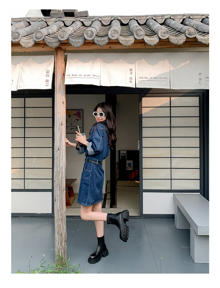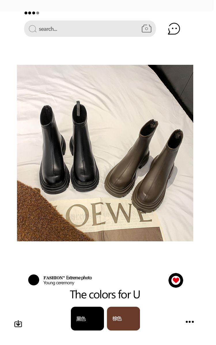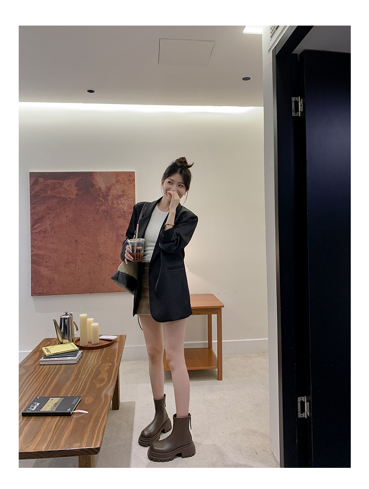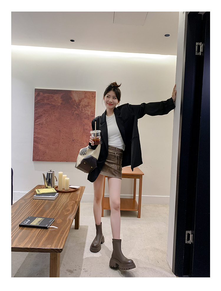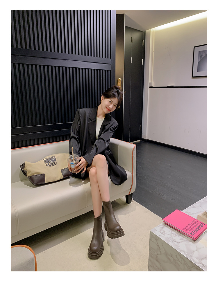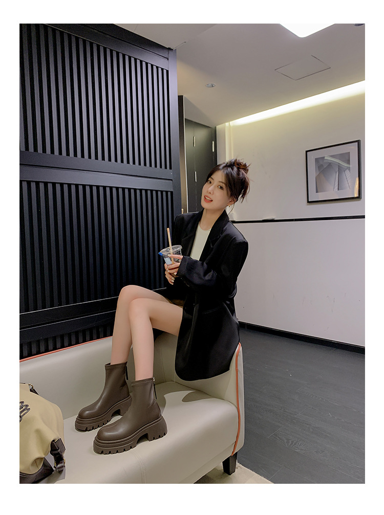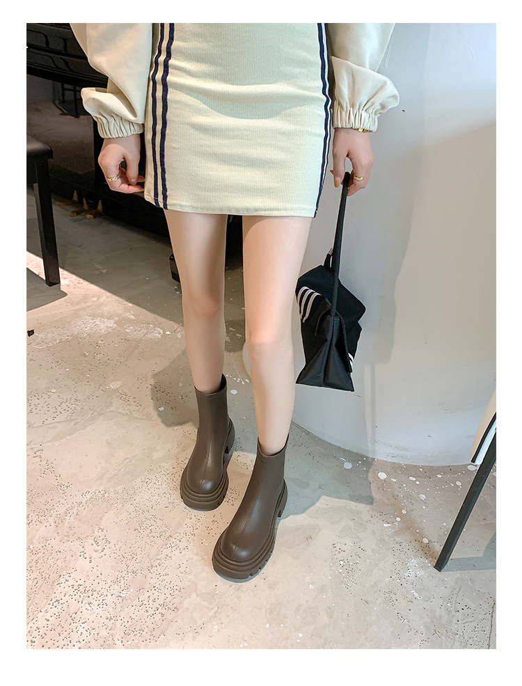 스타라이트 스퀘어 정품 가죽 블랙 두꺼운 바닥 마틴 부츠 여성의 2024 새로운 스키니 부츠 하이힐 쇼트 부츠 작은 발목 부츠스토어 가기