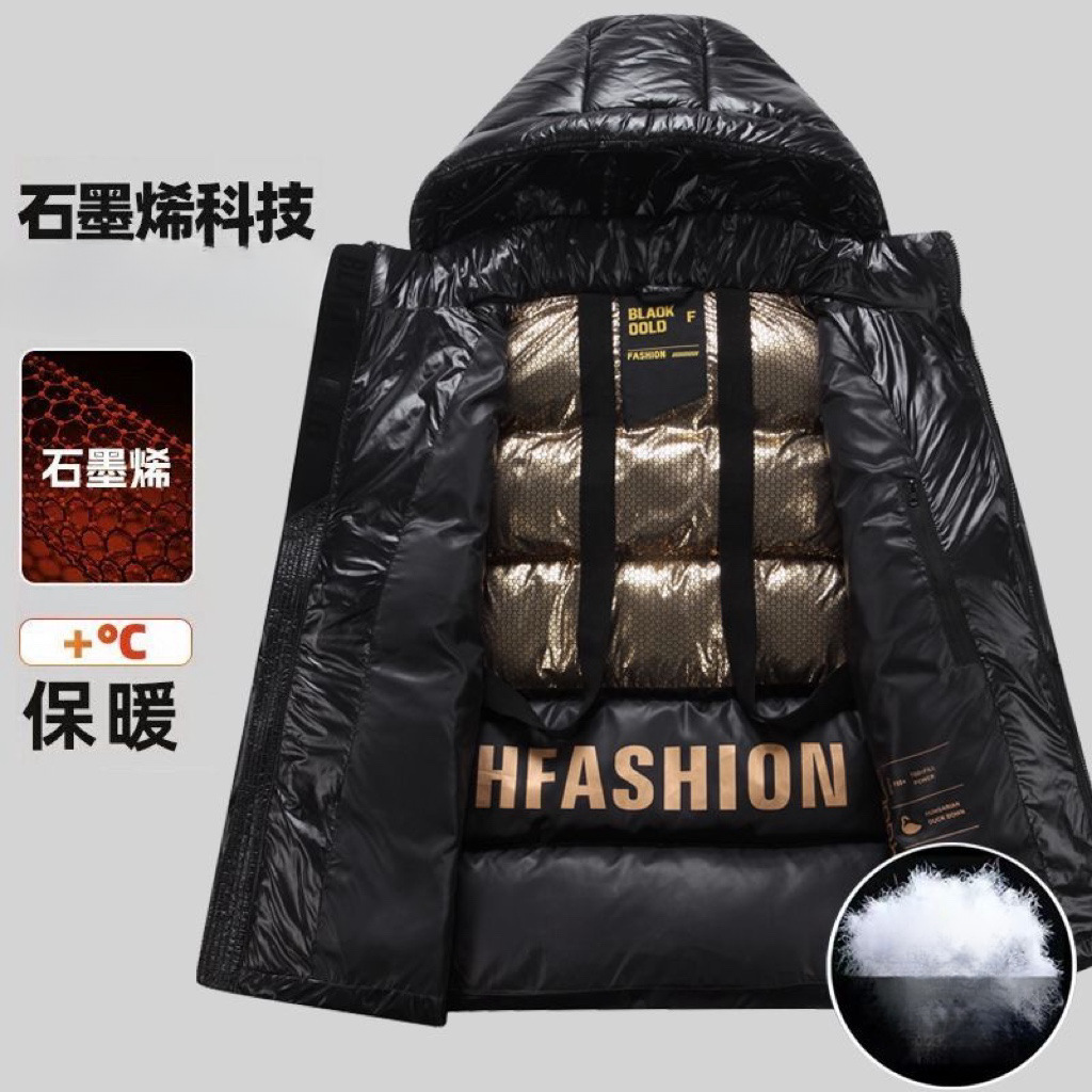 2024 남성용 새 면 패딩 재킷, 노워시 커플, 두꺼운 방한 트렌디 그래핀 블랙 골드 남성용 후드 재킷스토어 가기
