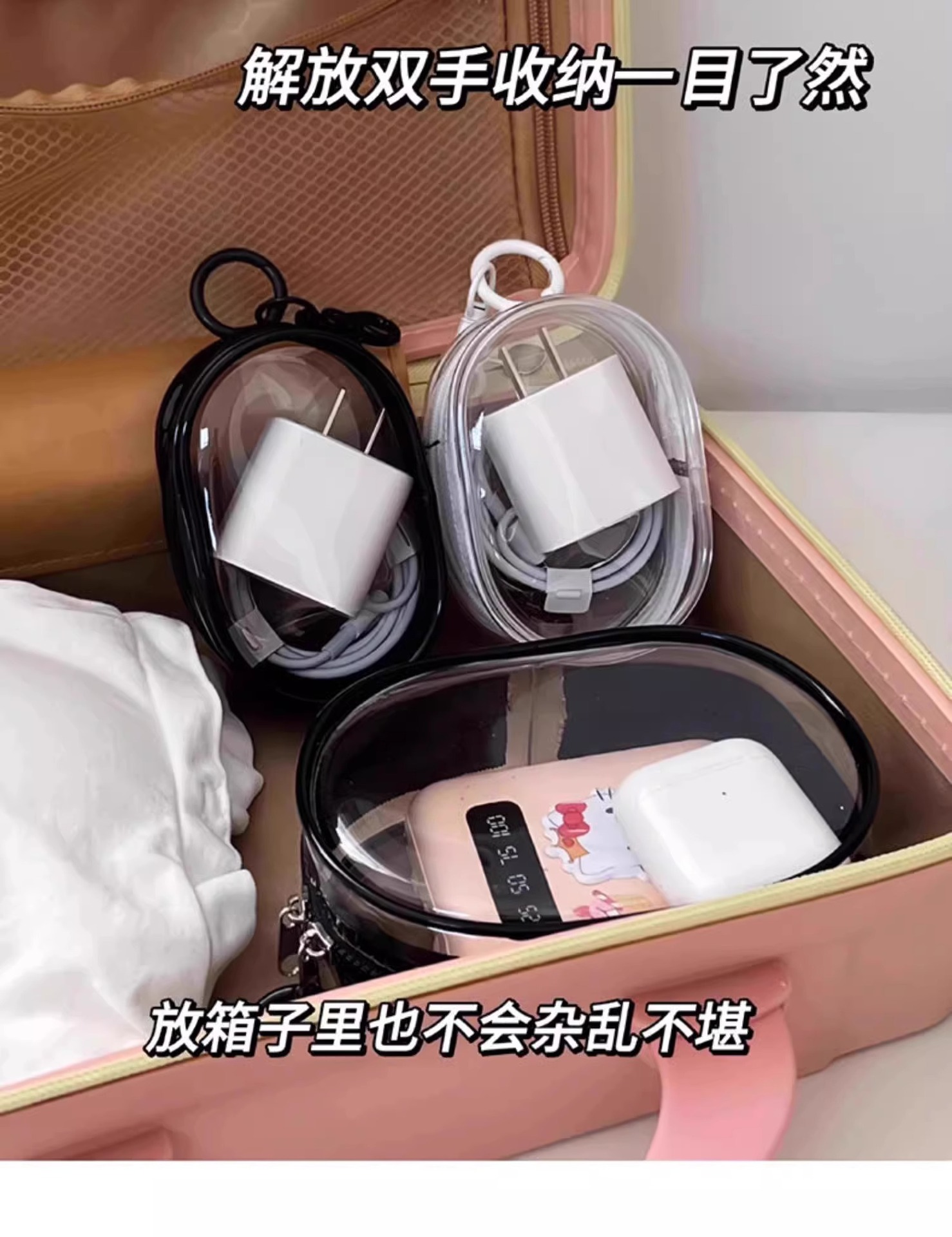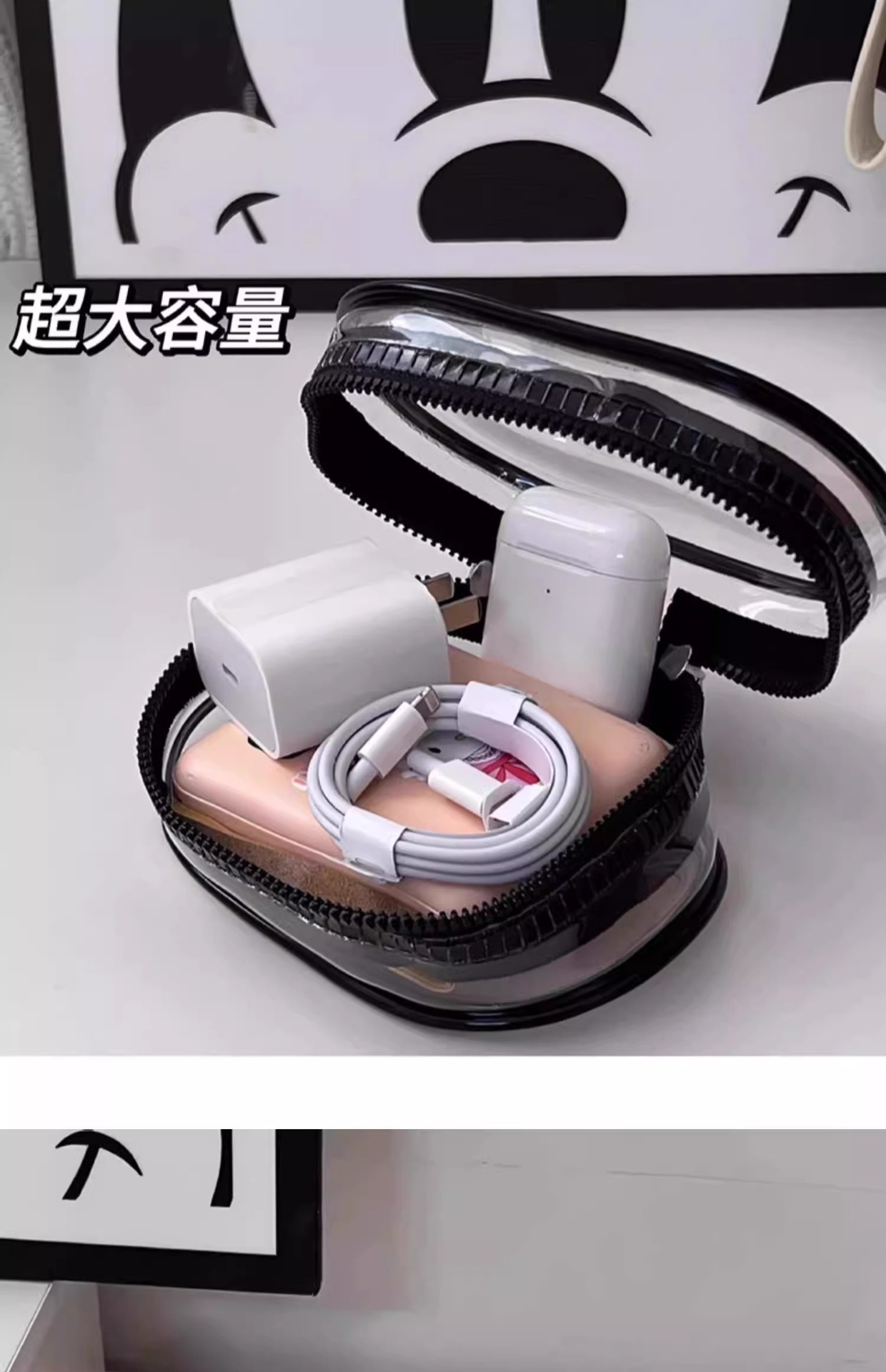 투명한 데이터 케이블 충전기 저장 가방 여행 디지털 충전기 케이블 관리 가방 휴대용 데이터 케이블 가방