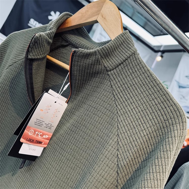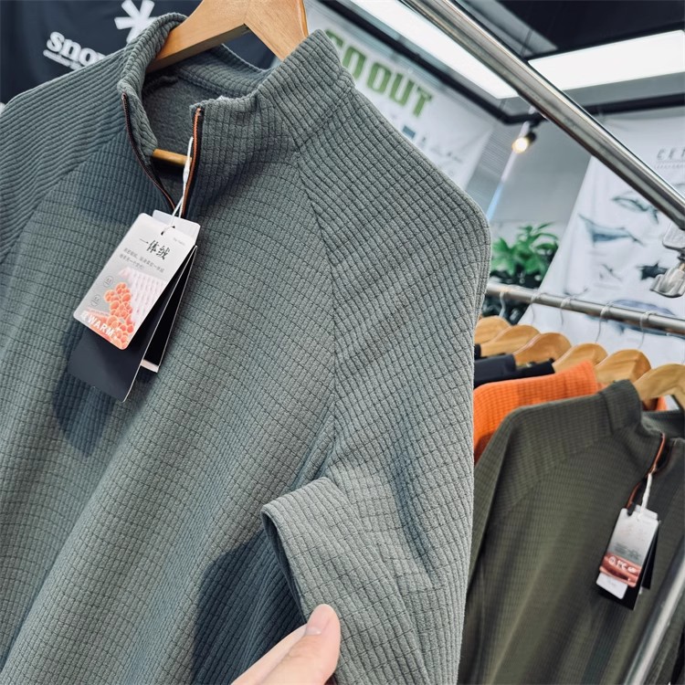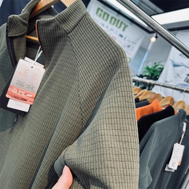 남성과 여성 야외 스포츠 스웨터 반 지퍼 양털을위한 한국 패브릭 와플 가을과 겨울 스탠드 칼라 긴 소매 탑스토어 가기