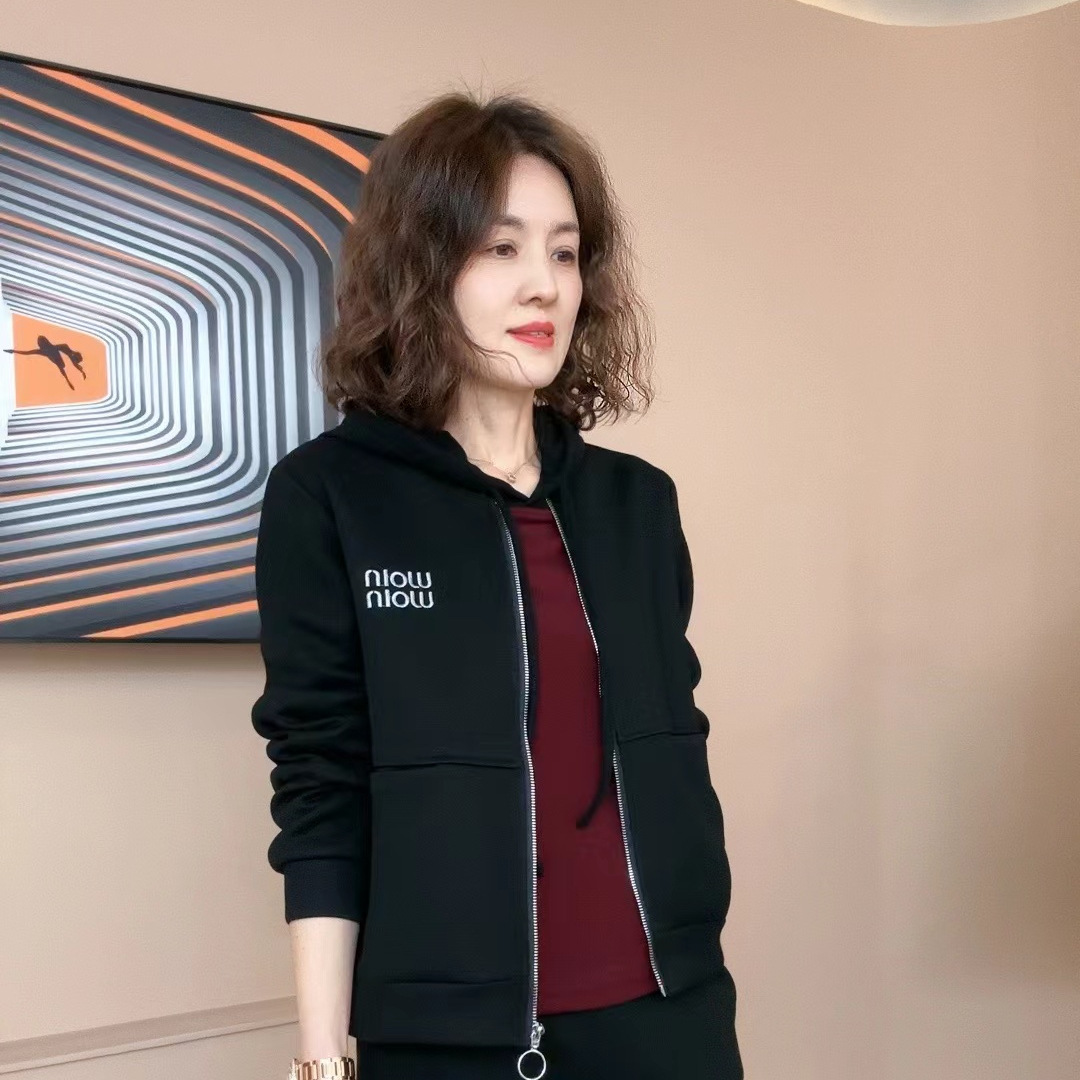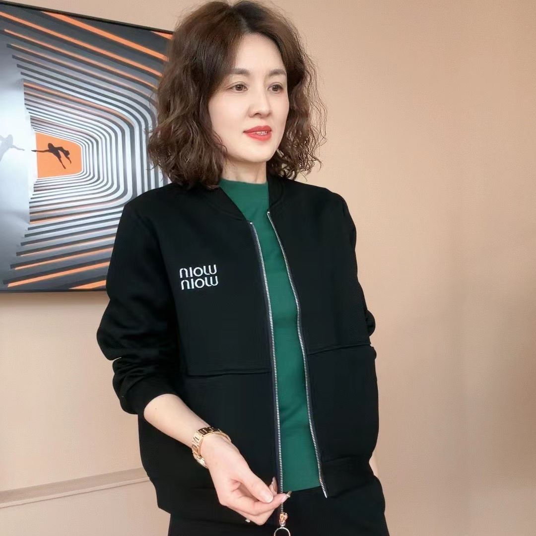중년 여성 의류 어머니 봄과 가을 코트 2024 새로운 패션 서양식 캐주얼 야구 세트 재킷 슬림 탑