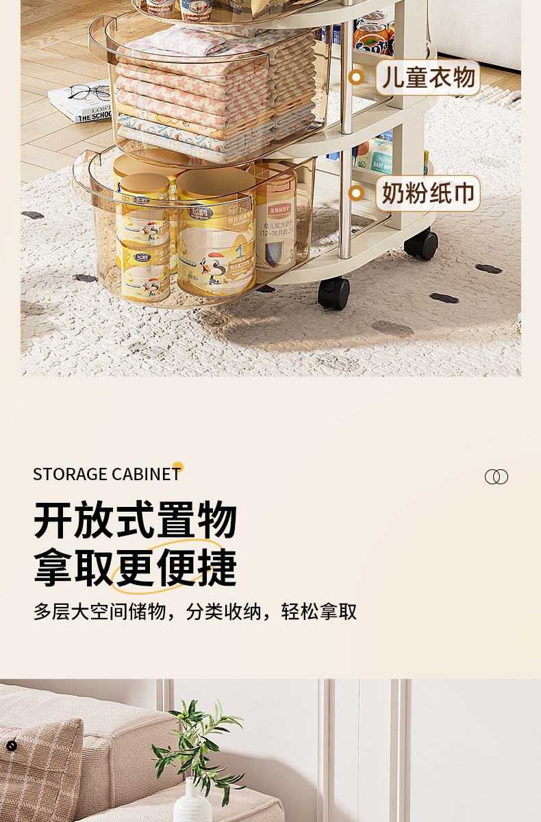 Younai 트롤리 보관함 침대 옆 스낵 화장품 바퀴 달린 보관함 주방 침실 모바일 보관 캐비닛