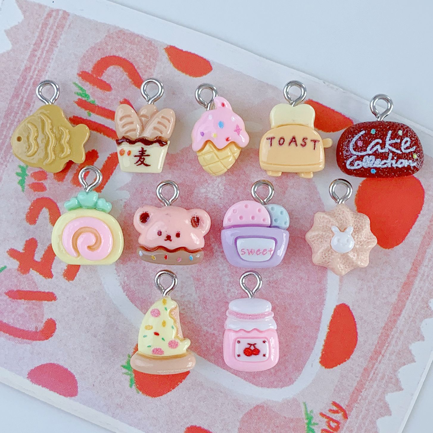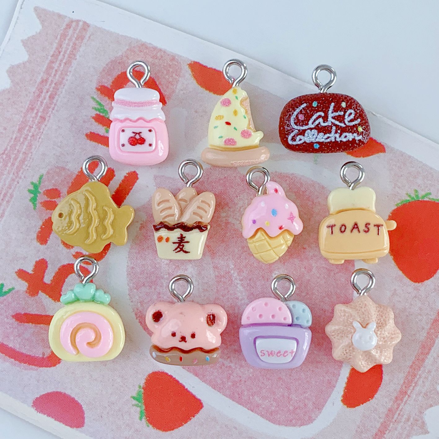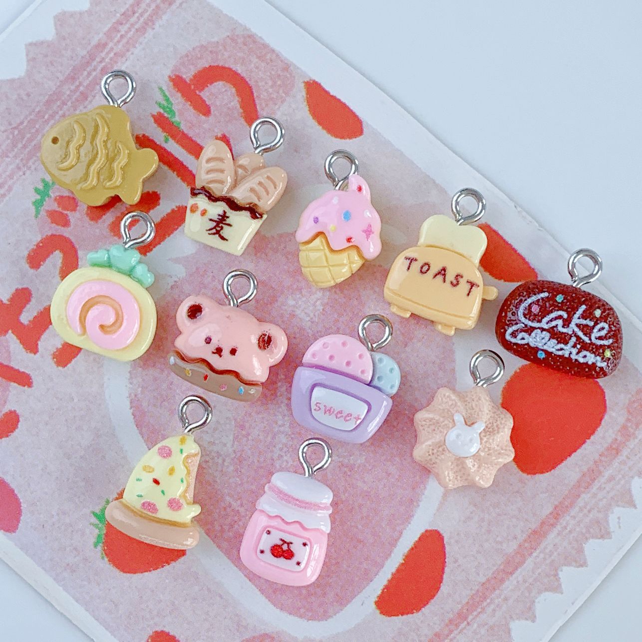 미니 스몰 사이즈 빵 케이크 비스킷 콘 우유 펜던트 DIY 수지 액세서리 펜던트 펜던트 키 체인 배치