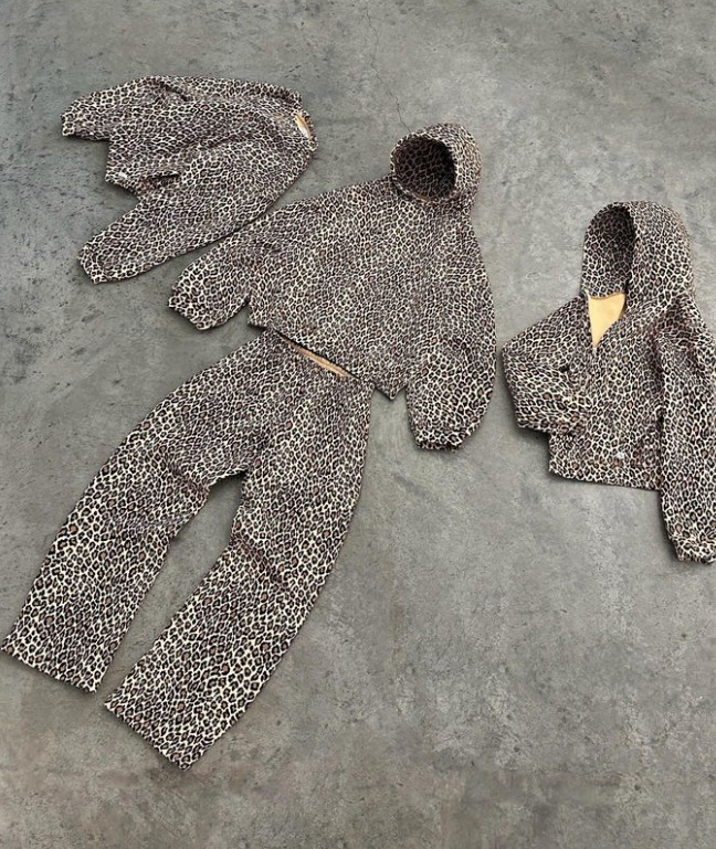 유럽과 미국의 국경 간 Y2K 레트로 레오파드 무늬 후드가 달린 스웨터 커플 Harajuku 스타일 힙합 지퍼 풀오버 스웨터