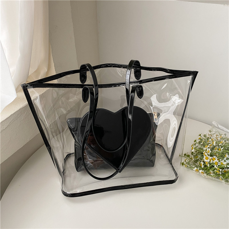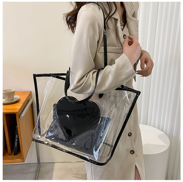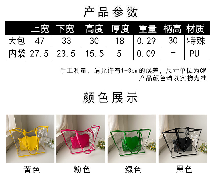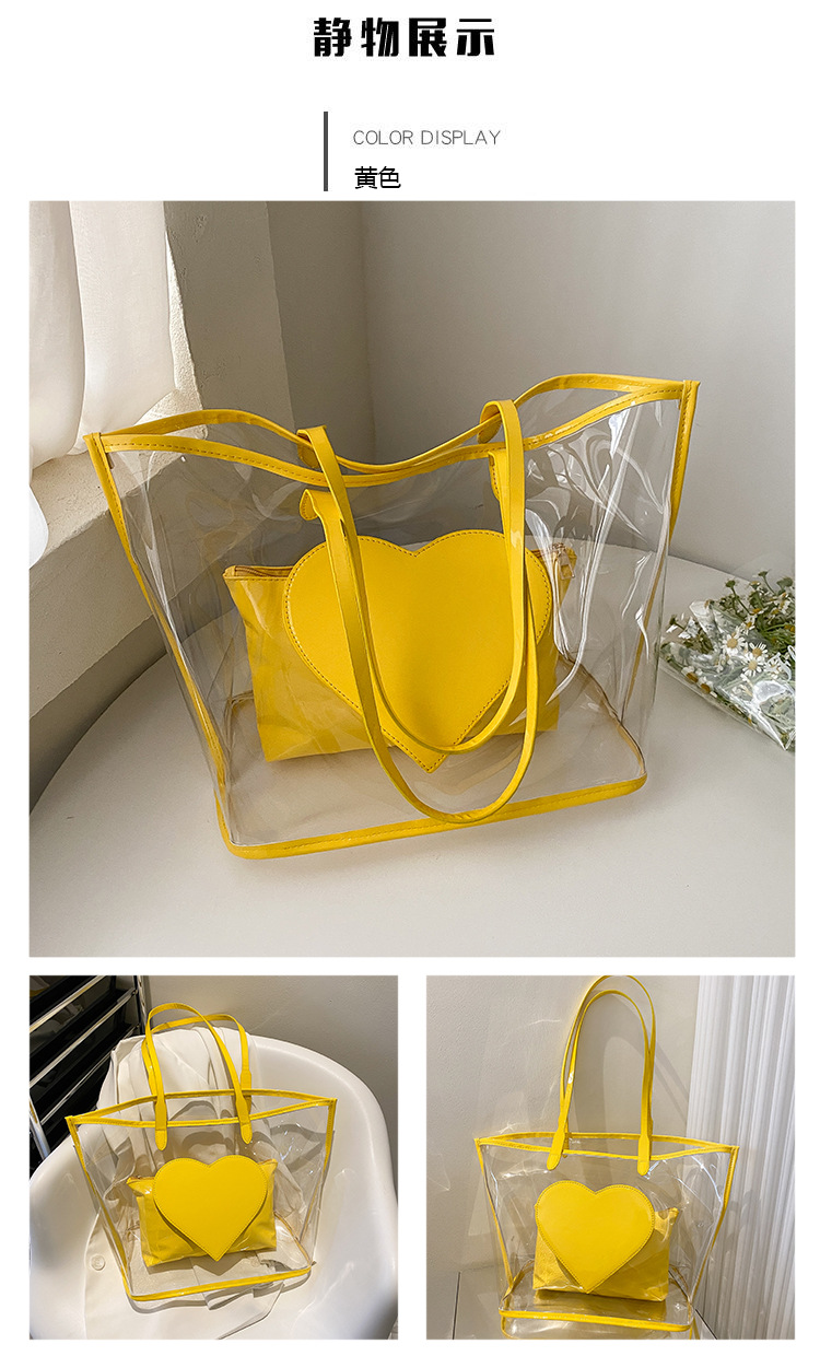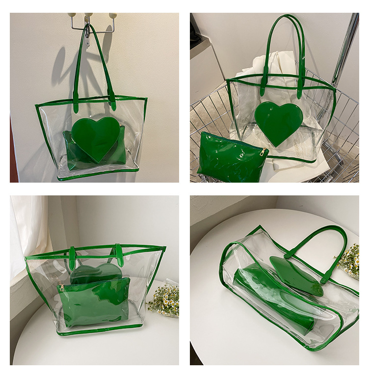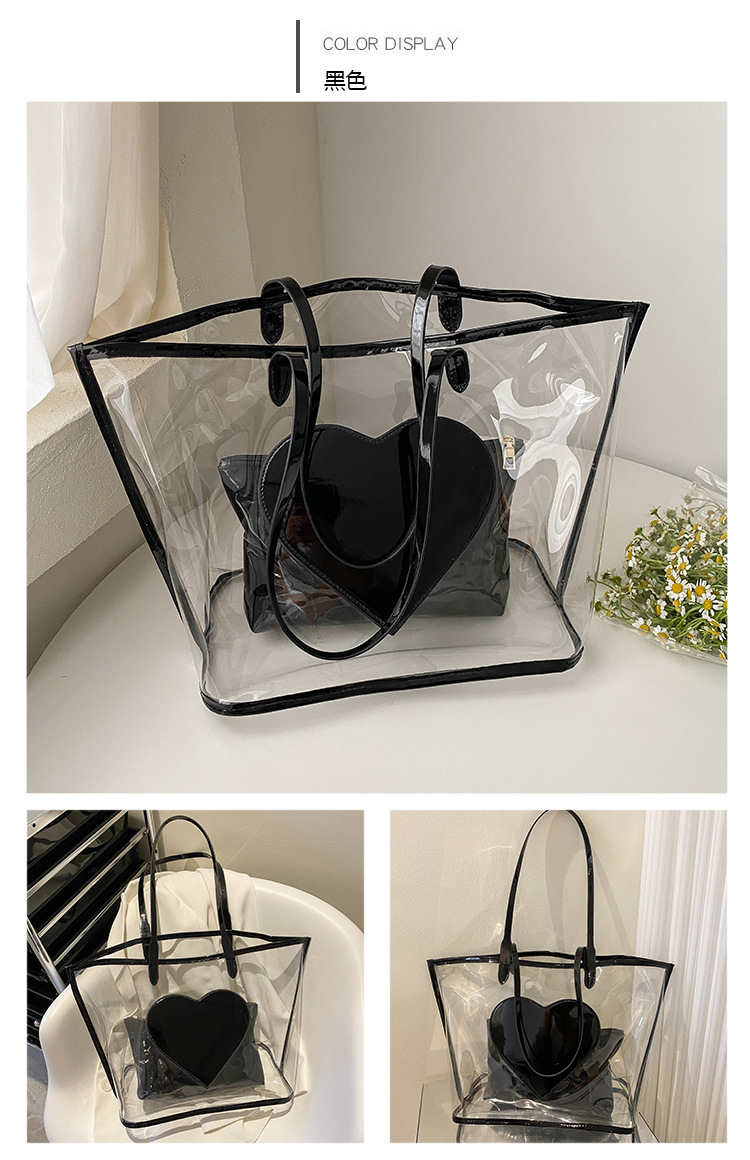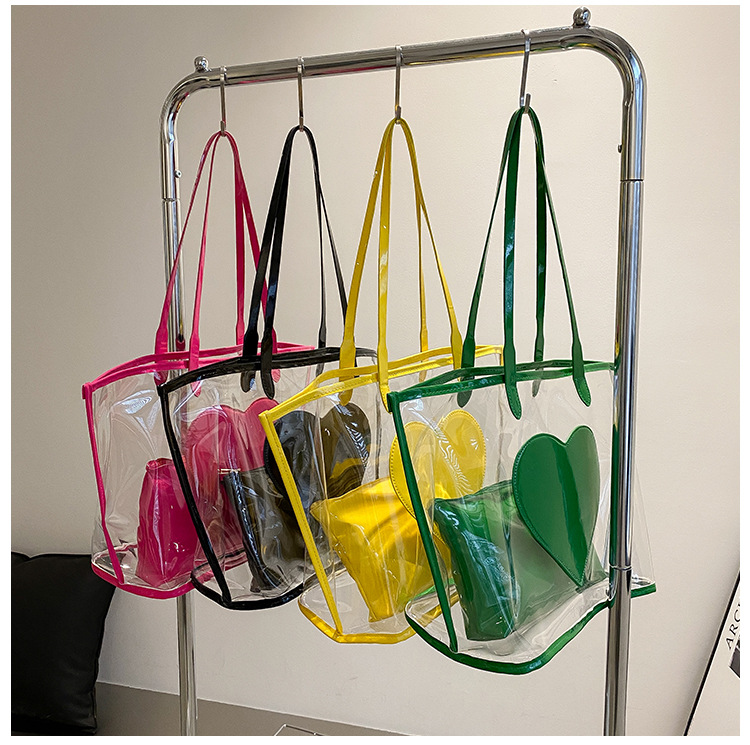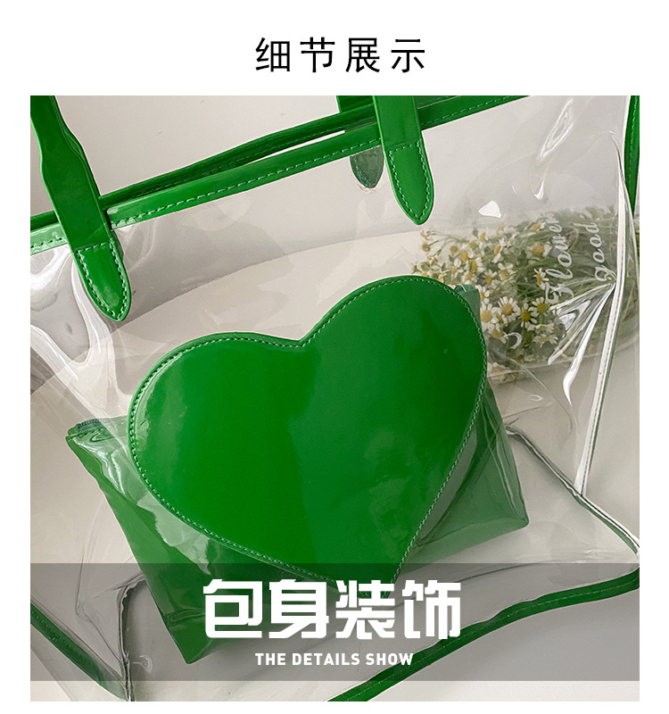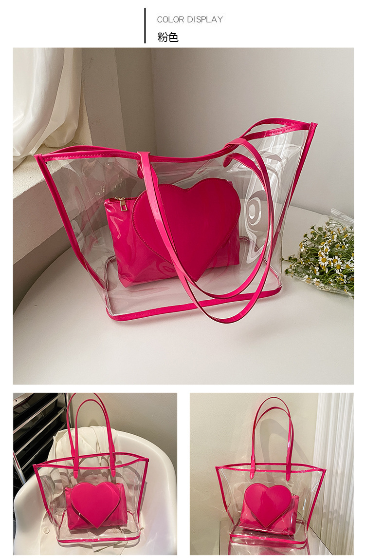 여름 새로운 대학생 클래스 스타일리스트 투명 젤리 어깨 핸드백 대용량 대비 색상 복숭아 심장 어머니 가방스토어 가기
