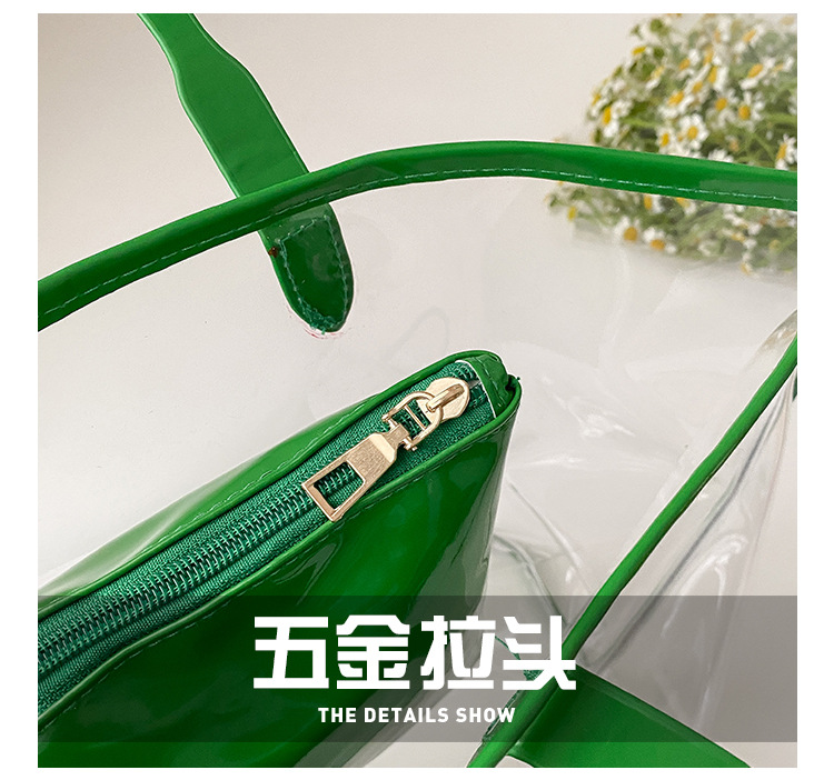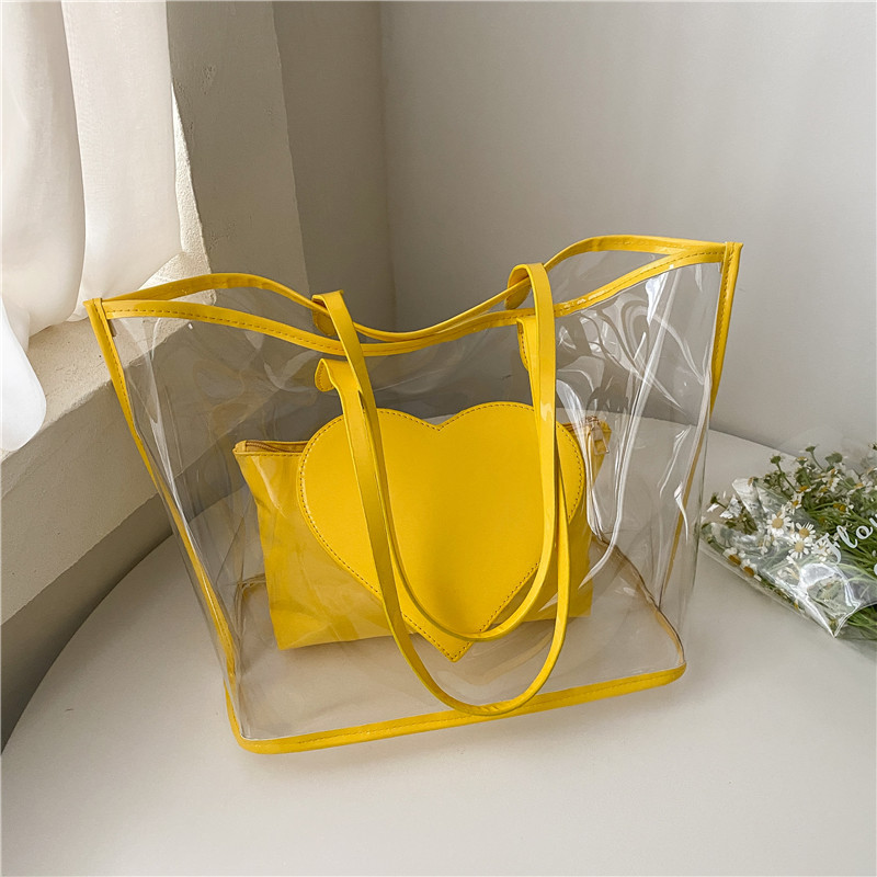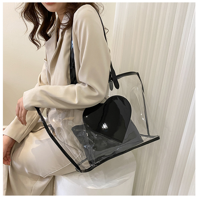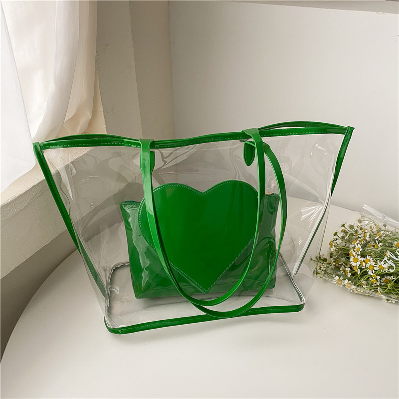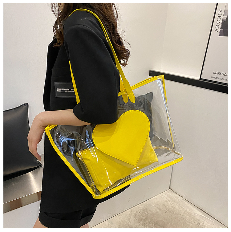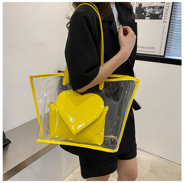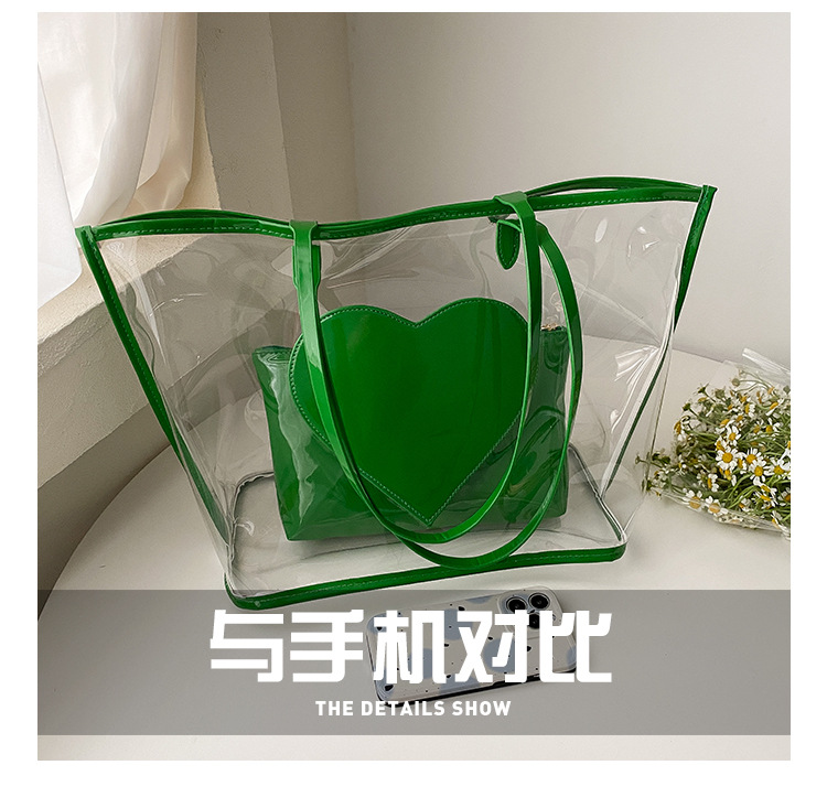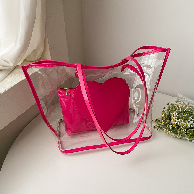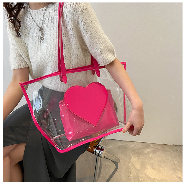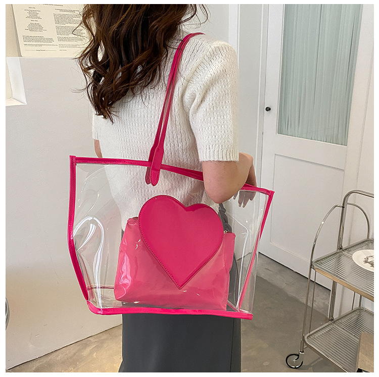 여름 새로운 대학생 클래스 스타일리스트 투명 젤리 어깨 핸드백 대용량 대비 색상 복숭아 심장 어머니 가방